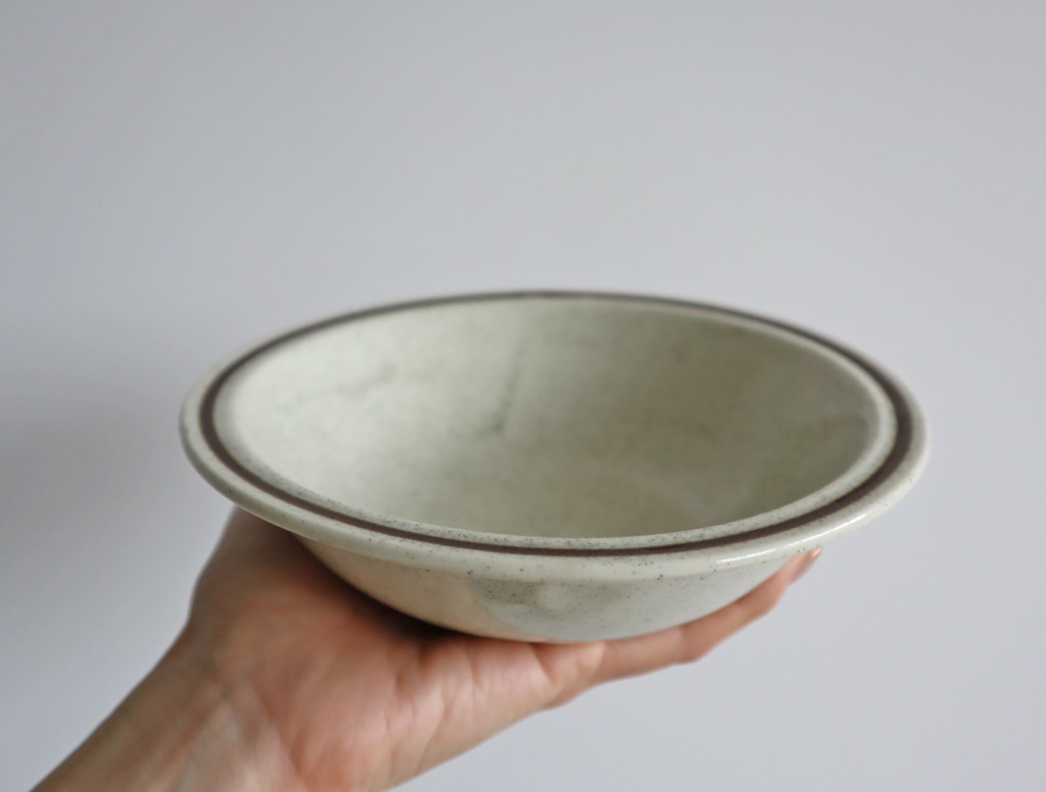 温かみのあるベージュの釉薬に、リムのブラウンが可愛らしいポイント。