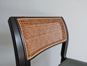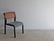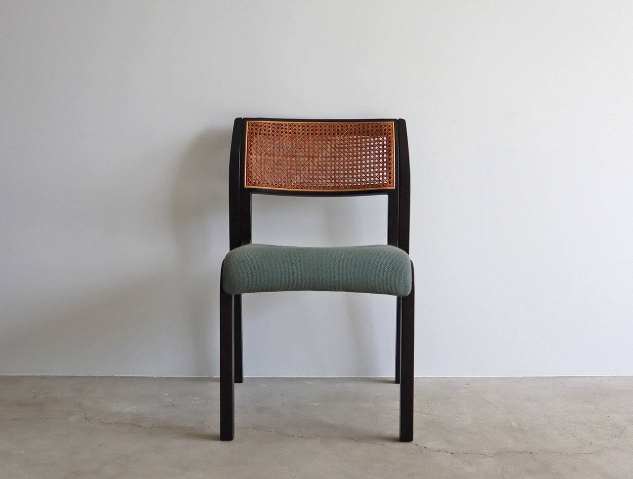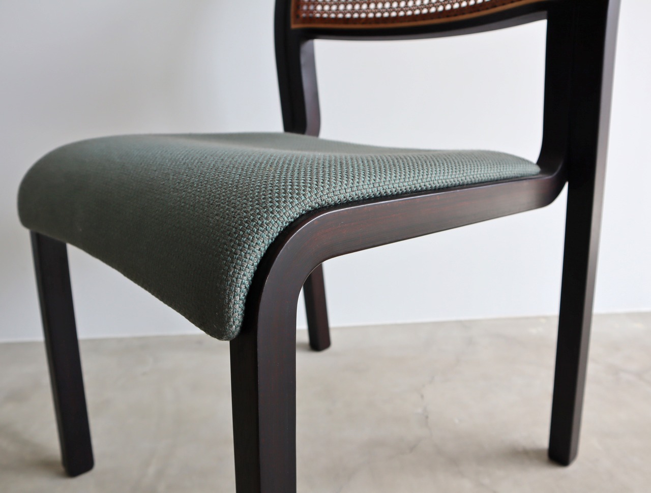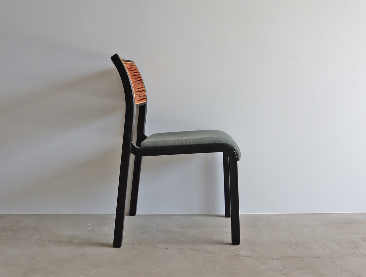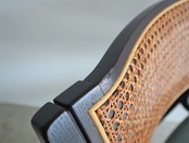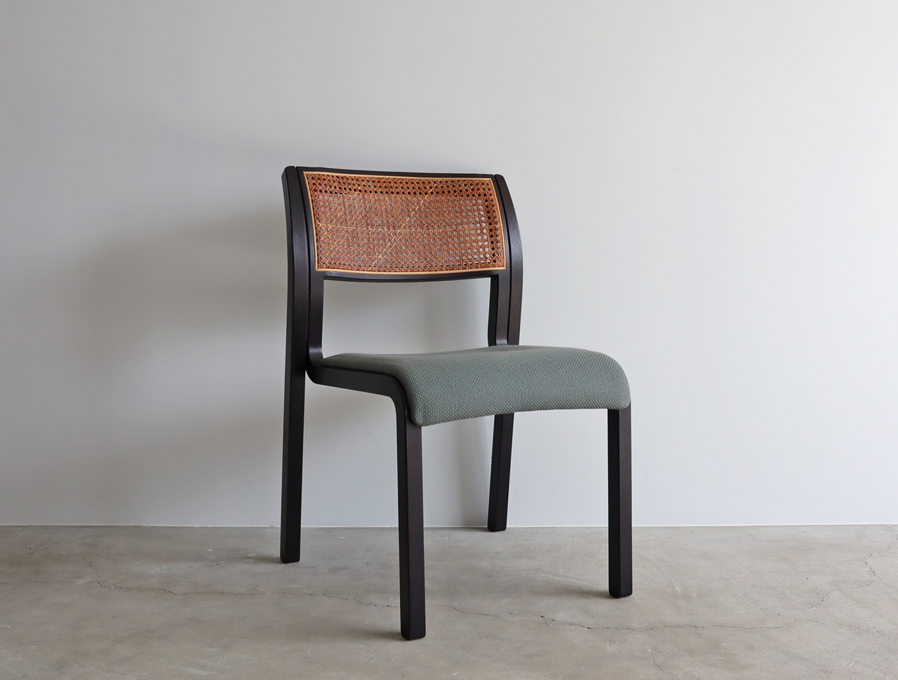 積層曲木構造のブラックフレームは美しく重厚感のあるフォルムですが、背もたれは繊細に編み込まれたラタンになっており軽やかな印象を与え、伝統とモダンが融合する、ジャパニーズモダン色濃厚なモデルです。