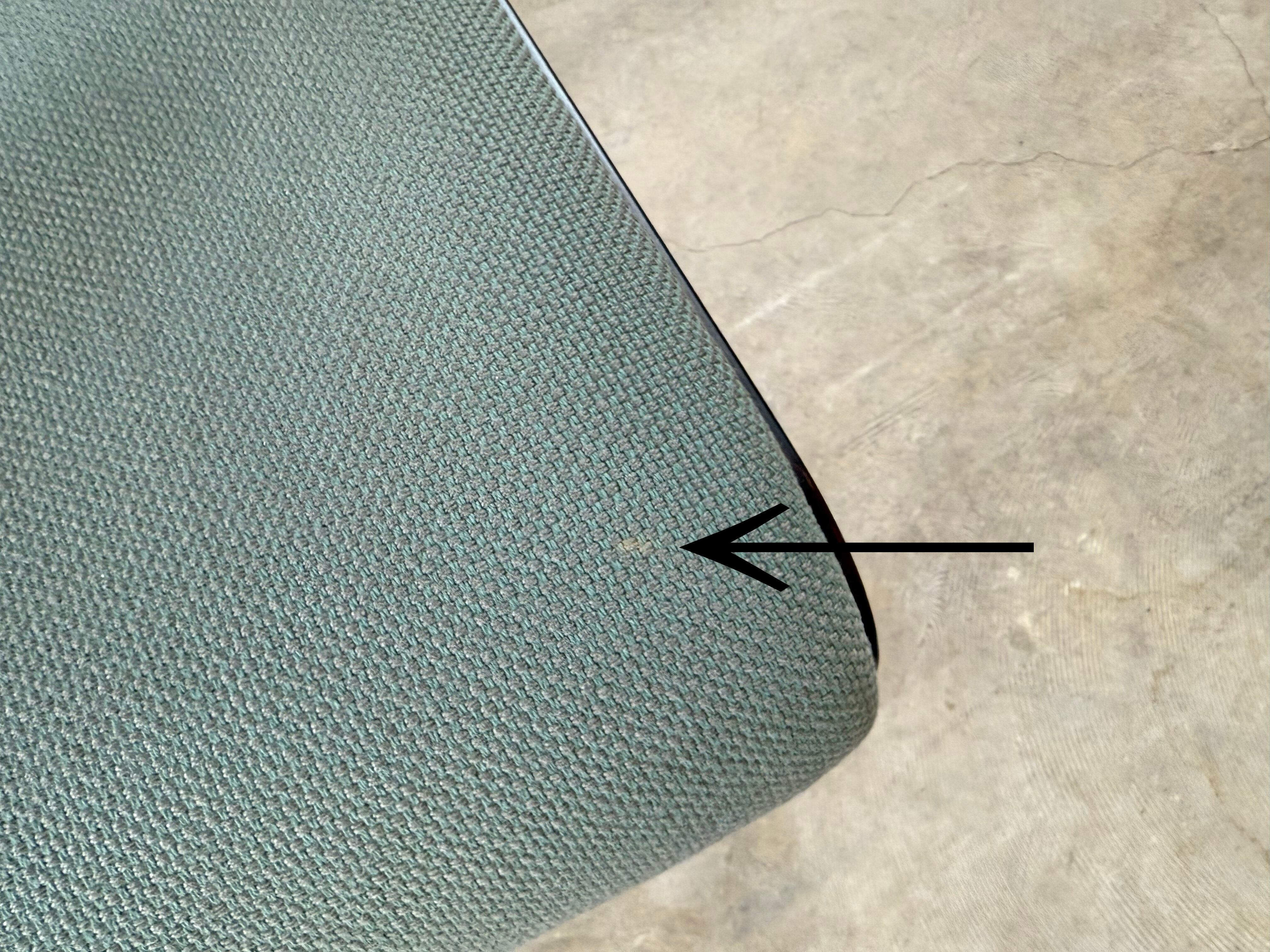 フレームの当て傷の他、シートにスタッキング時に下になっていた痕跡、ファブリック部分に褪色、横糸の色が抜けた箇所(→部分)がございますので、画像にてご確認ください。