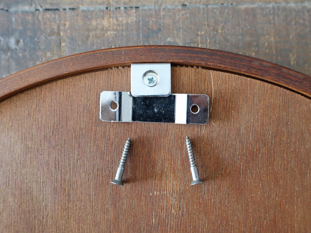 純製の受け金具が付属いたしますが、ネジ1本に引っかけての取付も可能です。