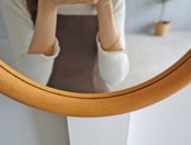 曲木フレームのヴィンテージウォールミラー。