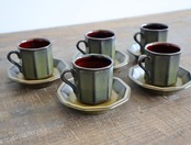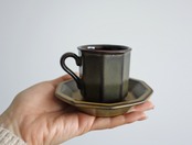 珍しい10角形の形のソーサーに、小さめサイズのデミタスカップのセットです。
