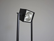 一切の無駄をそぎ落とした潔いシルエットに縦に330度程度回転可動するキューブ型シェードで、ナイトスタンドとしてはもちろん、壁やアイテムを照らすスポットライトとしても。