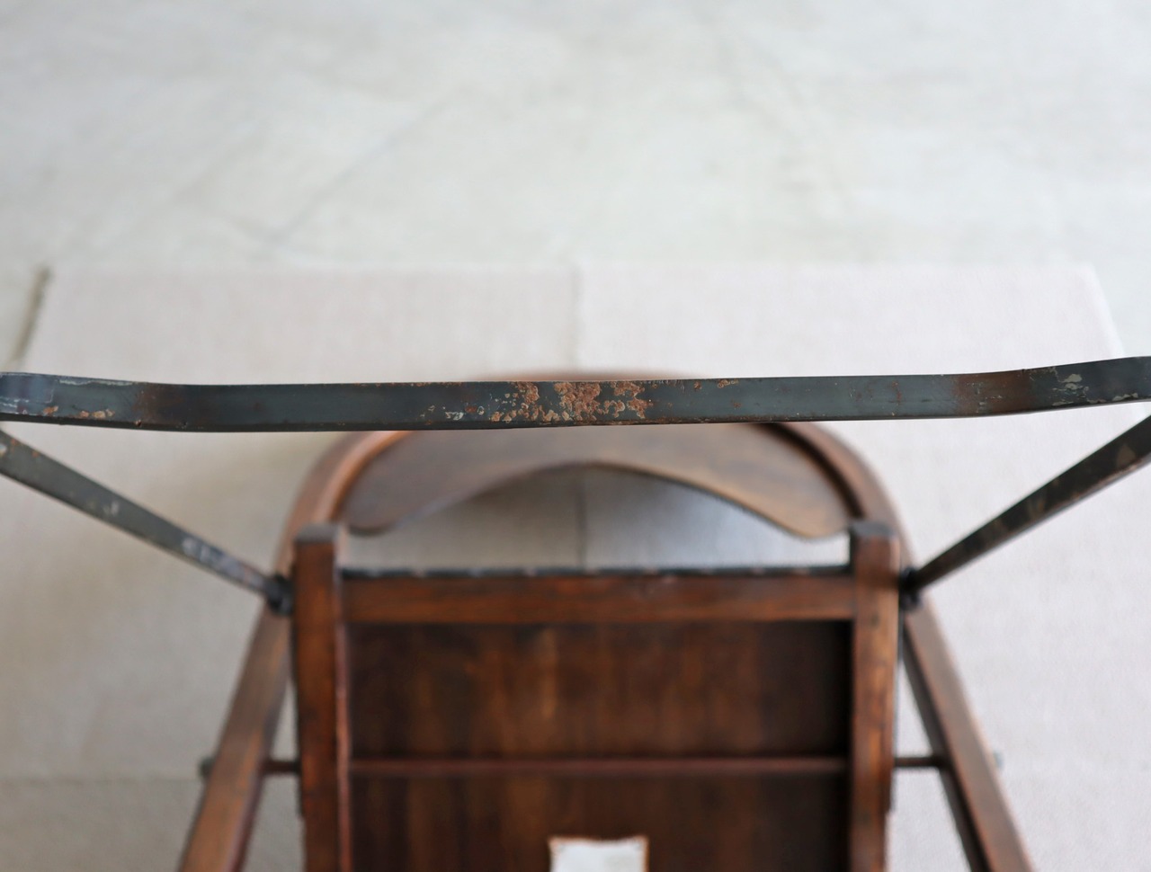 座面は本革が使用されており、脚部とスタッズの錆感も相まって”ヤレ感”がクールな状態に仕上がっております。