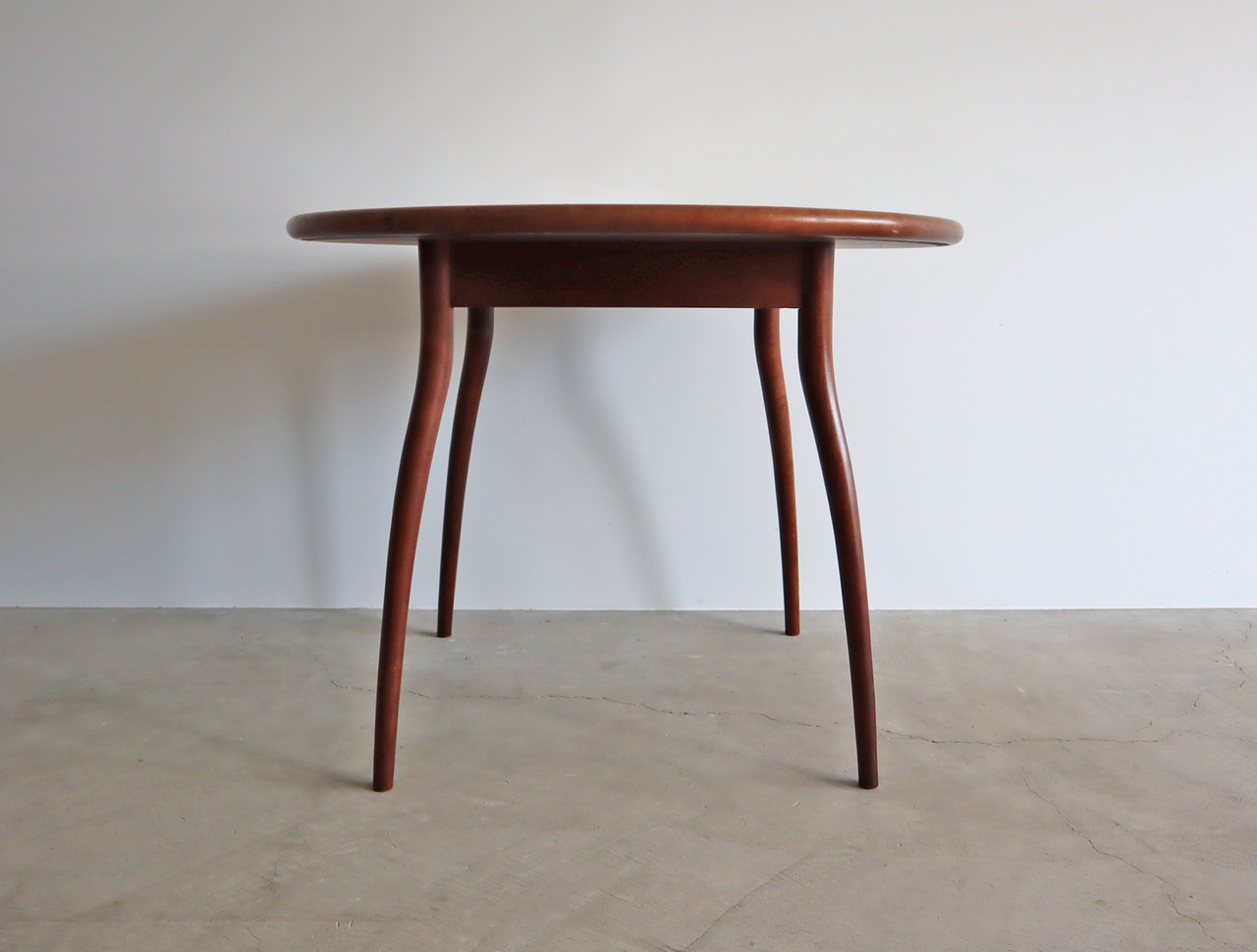 曲木のフォルムが美しい脚部と、ホワイトメラミントップのコントラストが秀逸で、シンプルながら時代を超えたグッドデザインのダイニングテーブル。