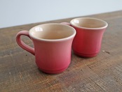 グラデーションがかった桃色と、コロンとしたラインが可愛らしいマグカップです。