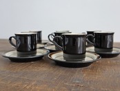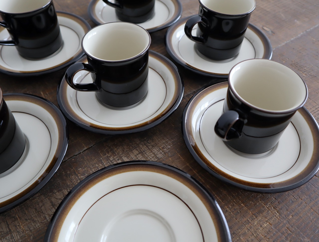 シュッとした印象のフォルムに、ブラックとブラウンのグラデーションカラーでコーヒーが映えそうなカップ&ソーサーです。