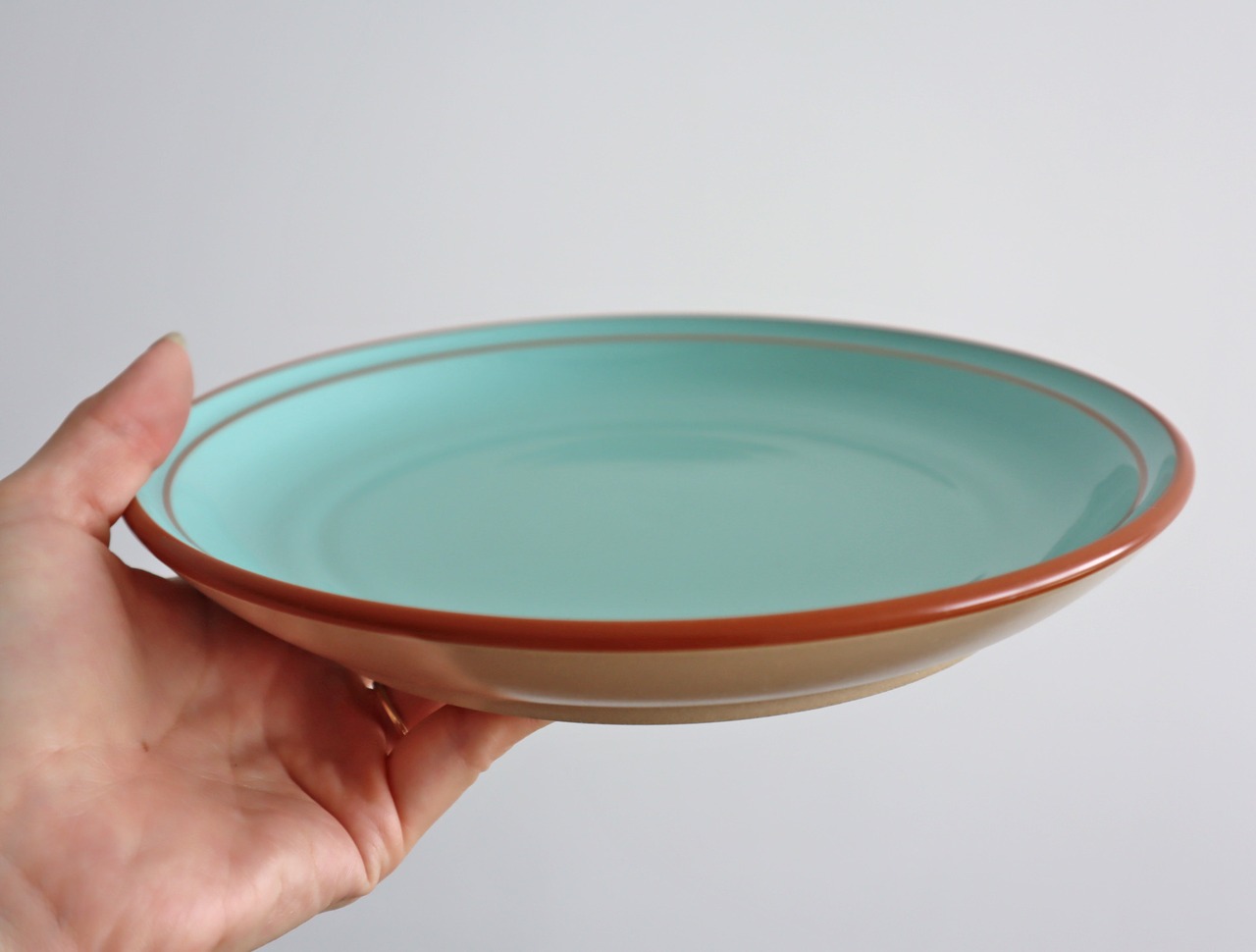 ブラウンと水色というポップな配色が可愛らしい器です。