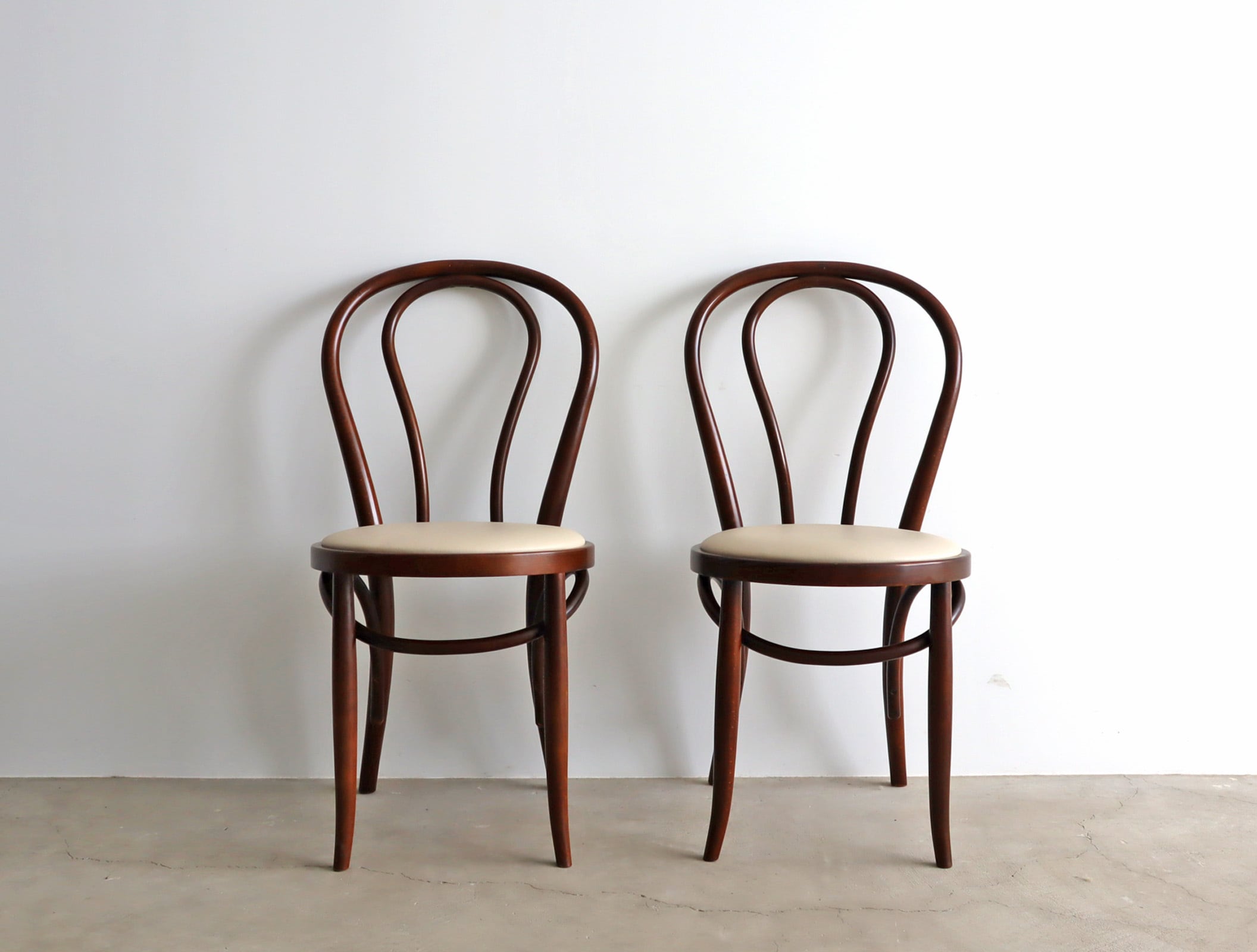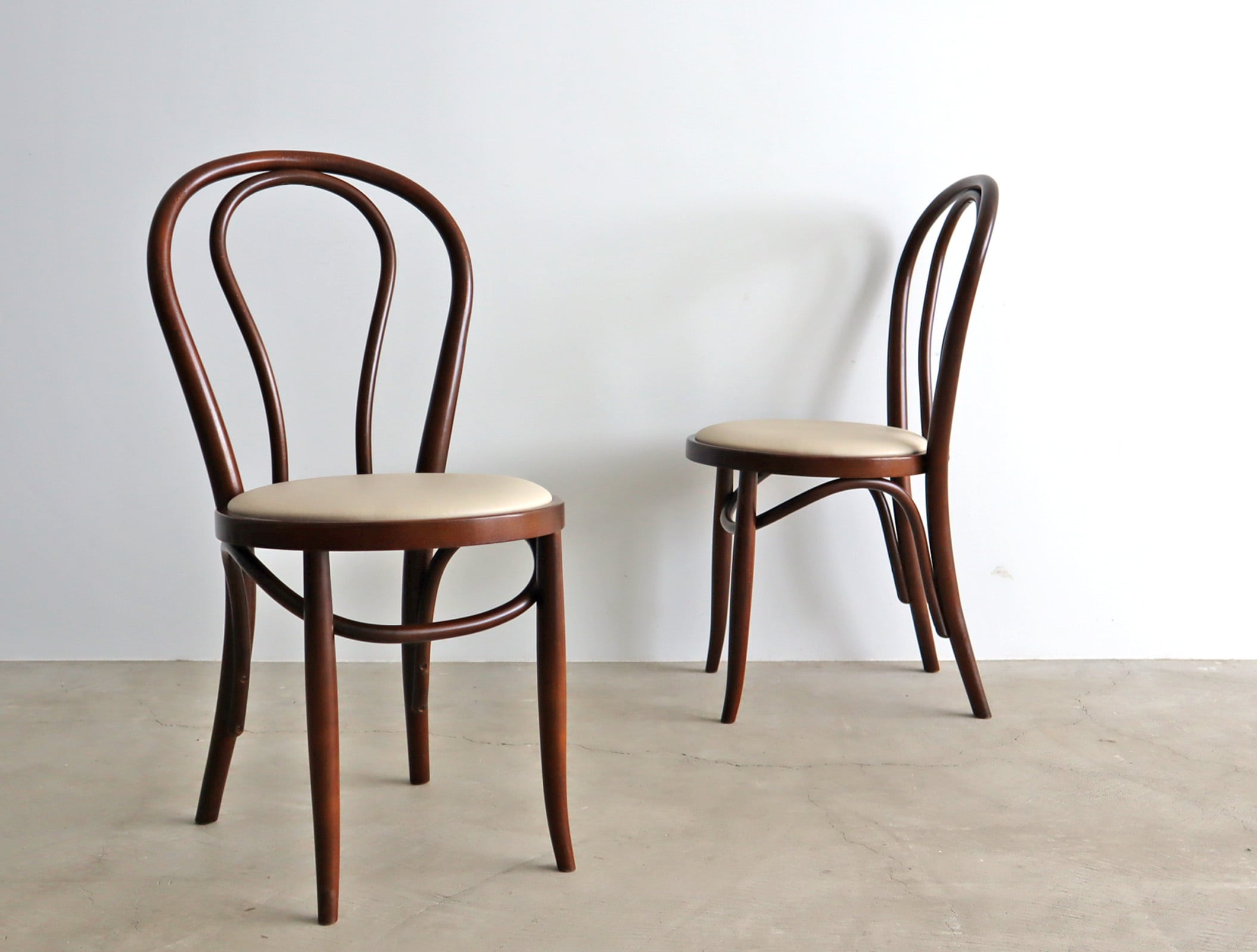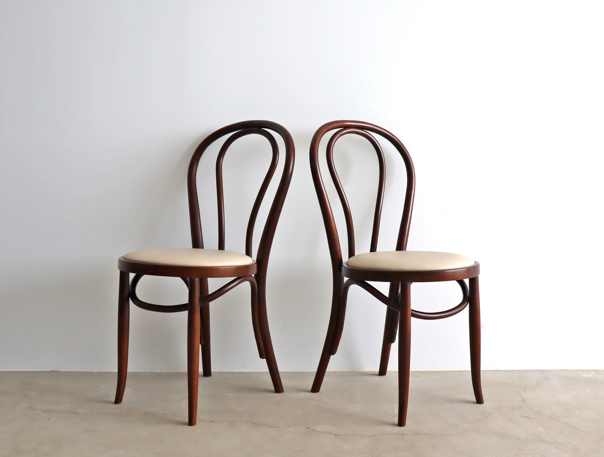 曲木ならではの美しいシルエット、秋田木工のベントウッドダイニングチェア2脚セット。