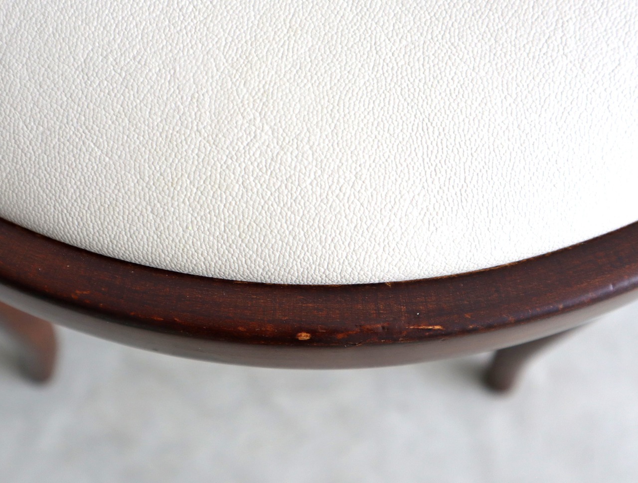 シート部分は当店でアイボリーの合成皮革に張り替えております。
