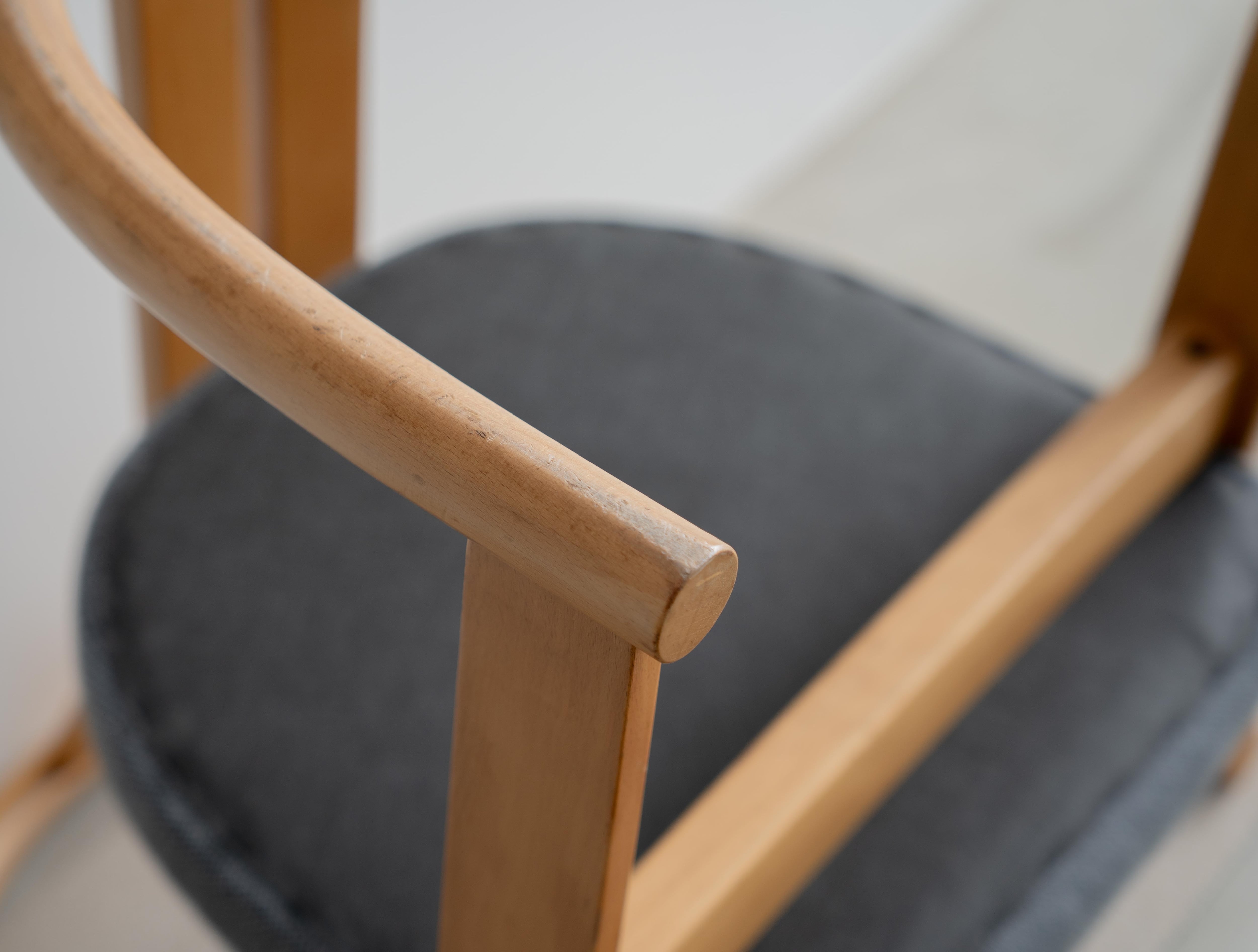 国産曲木家具のパイオニア、秋田木工の技術ありきのデザインで、ジャパニーズモダンを体現するかのような独特のシルエットです。
