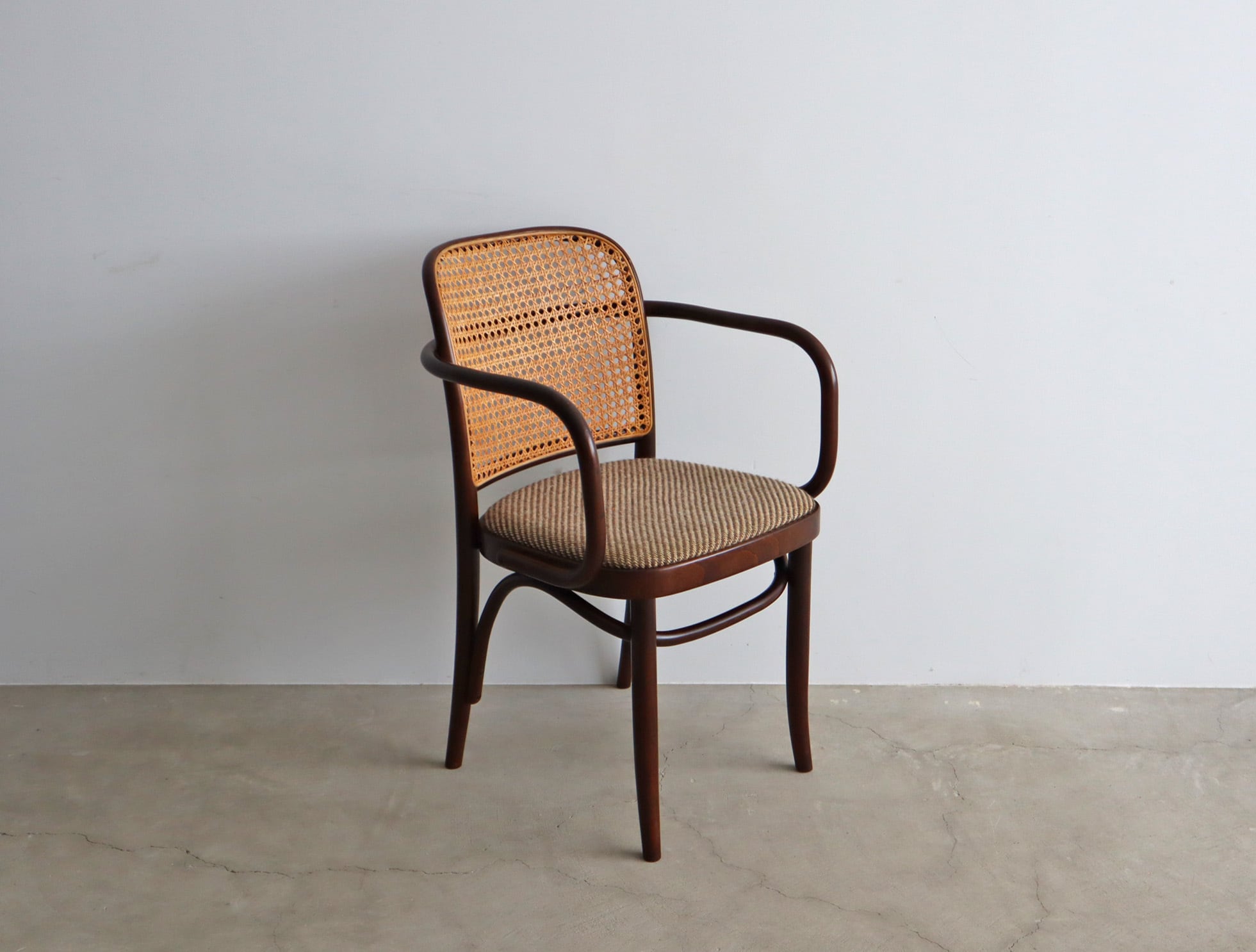 曲木のフォルムにラタンの背もたれ、ファブリックの座面が可愛らしいチェア。