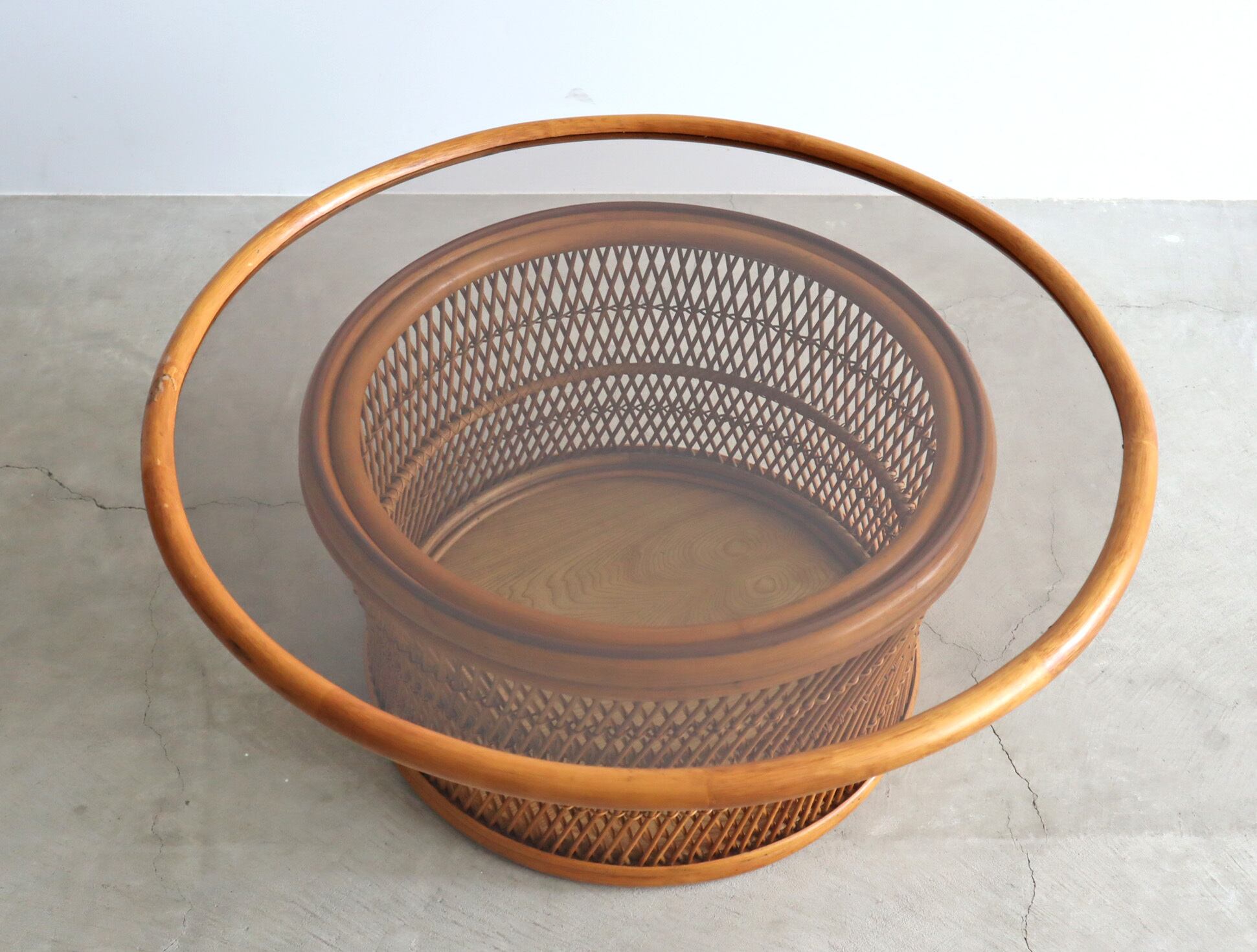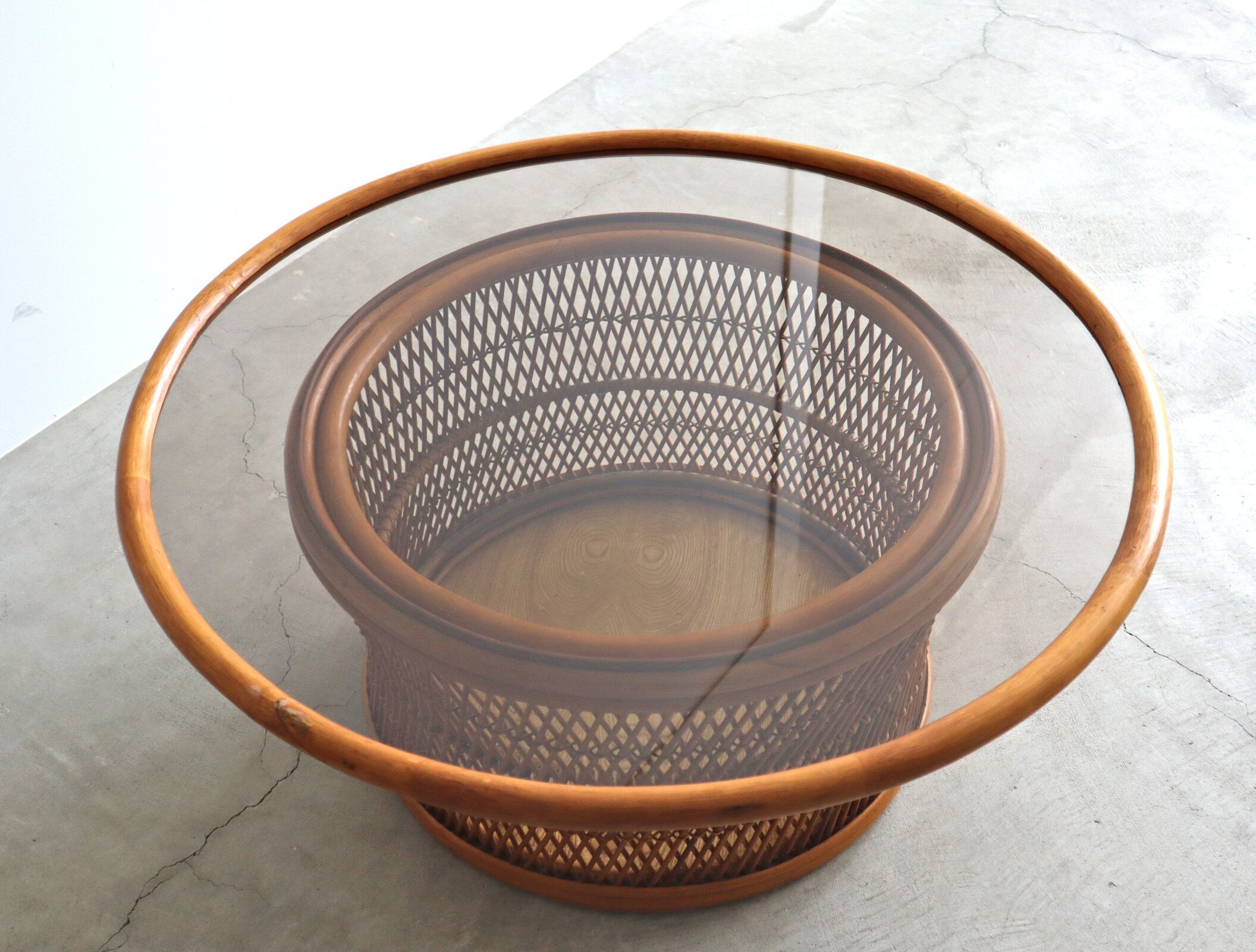 ガラストップ ラタン ラウンド センターテーブル