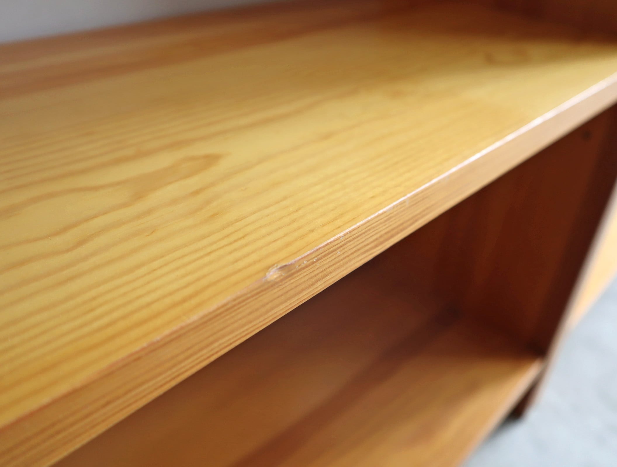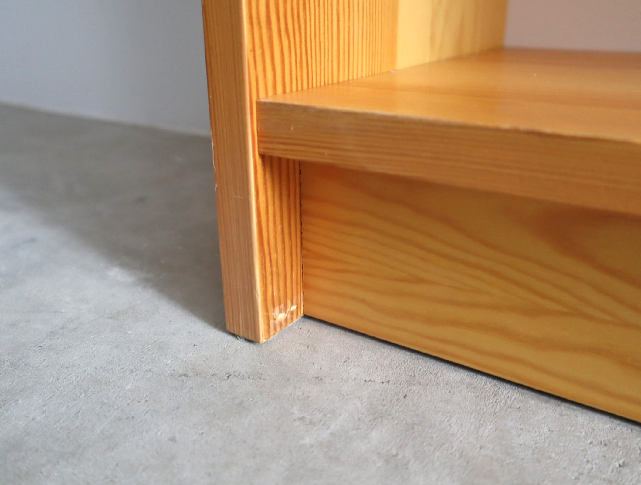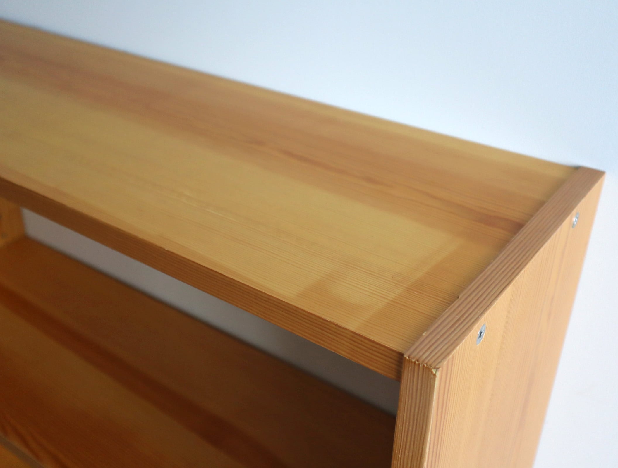 現行品は木目風やホワイトのカラーボックスのような仕様ですが、ナチュラルな色合いのパイン材が表面に用いられたパーチクルボード仕様、いかにもスウェーデンのヴィンテージといった表情の、懐かしさを感じさせる佇まいです。
