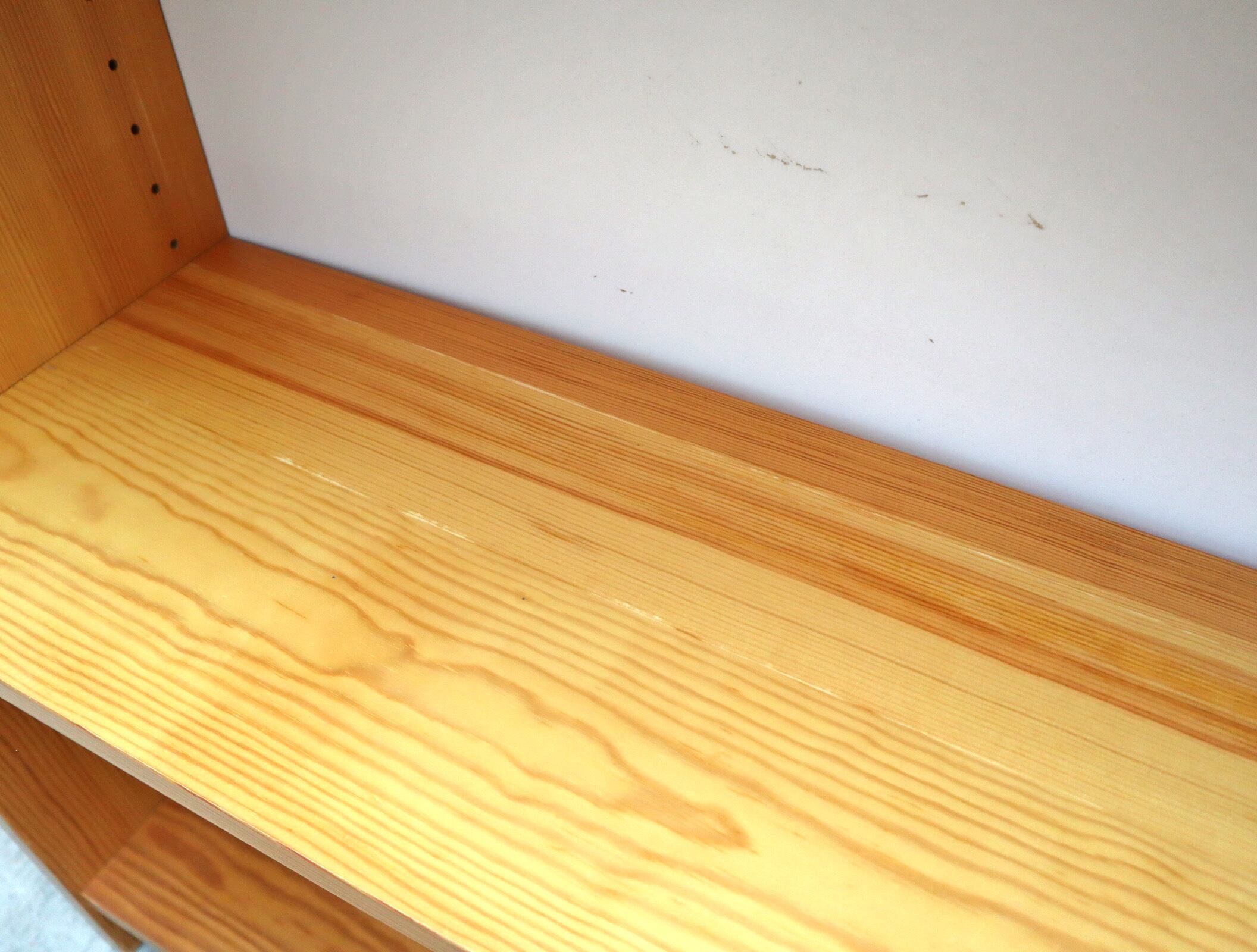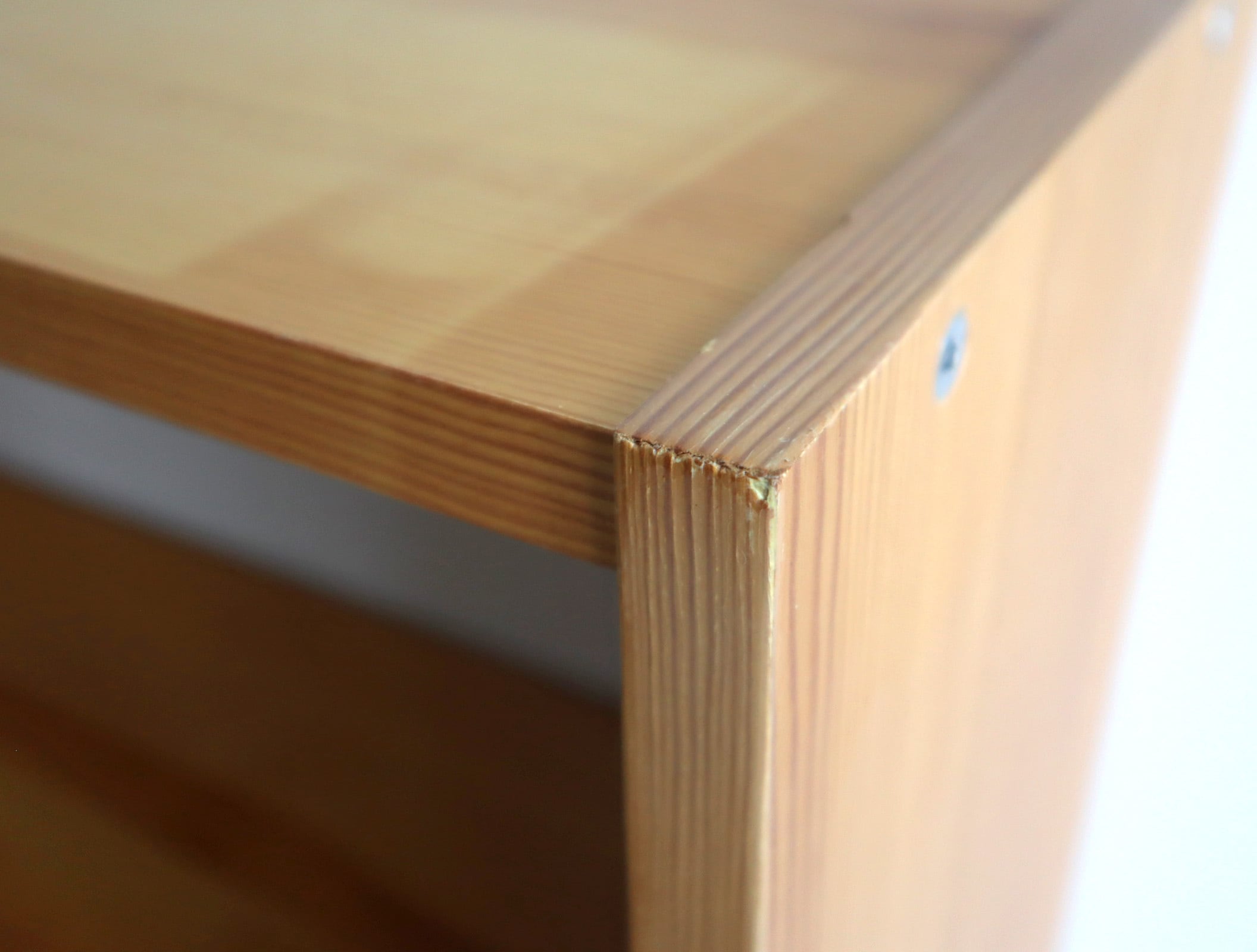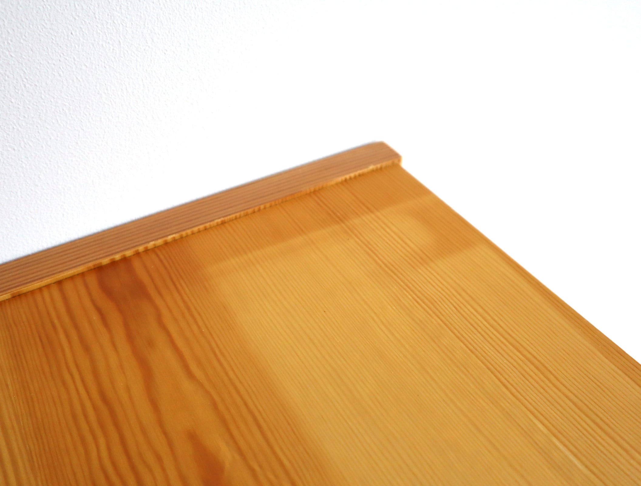 現行品は木目風やホワイトのカラーボックスのような仕様ですが、ナチュラルな色合いのパイン材が表面に用いられたパーチクルボード仕様、いかにもスウェーデンのヴィンテージといった表情の、懐かしさを感じさせる佇まいです。
