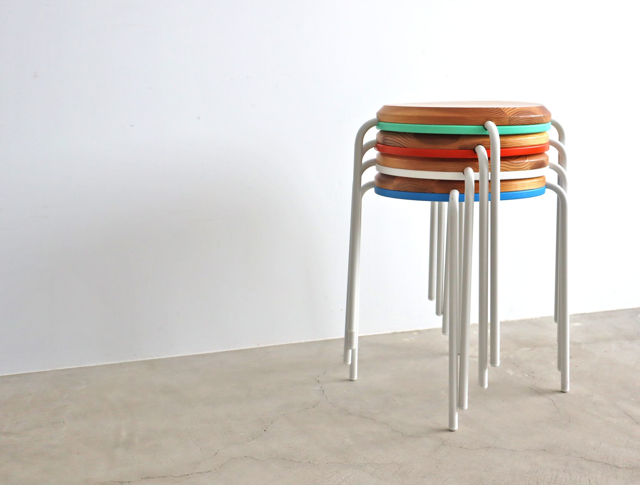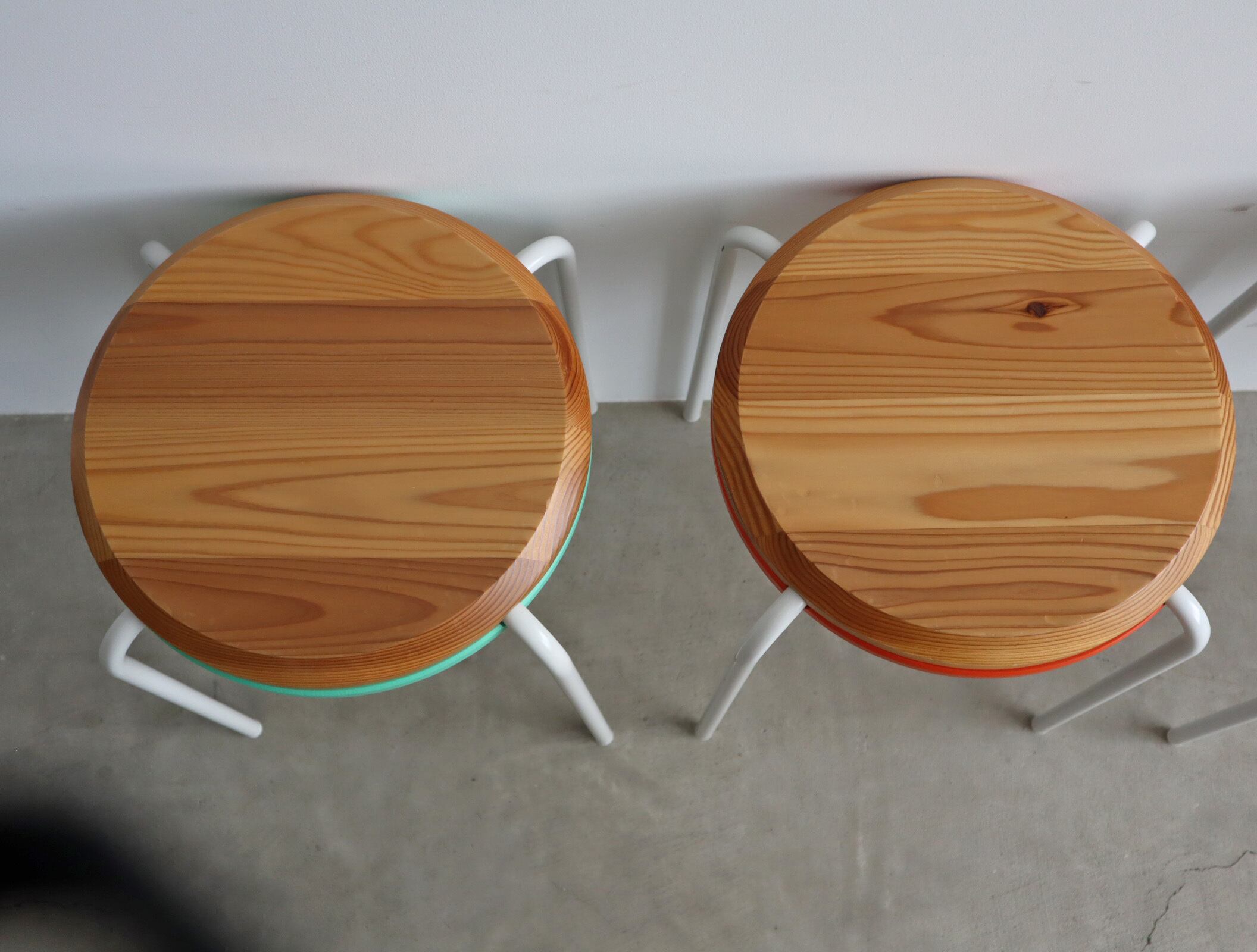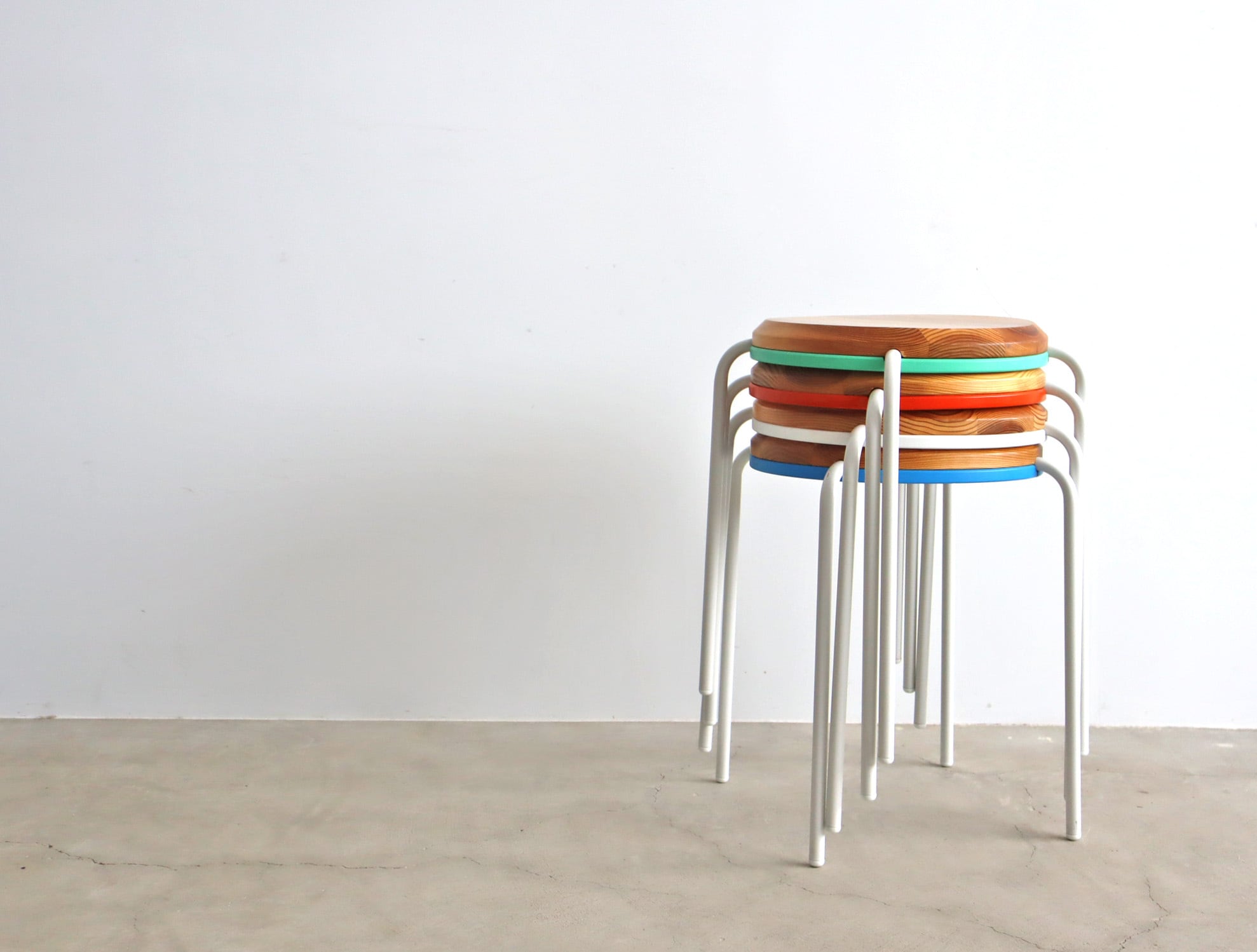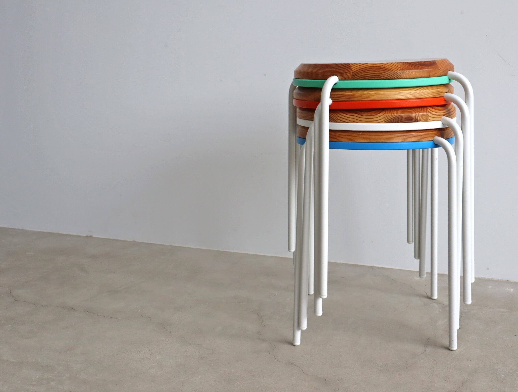 国産の杉材を使った食堂からカフェワークまで幅広く使えるスツールで、杉材のもつ温かみとカラフルなカラーリングが空間に彩りを与えます。