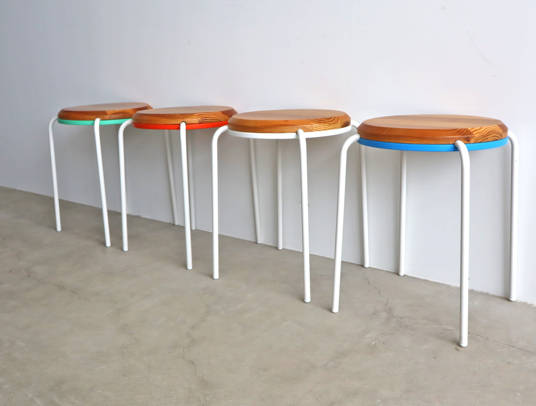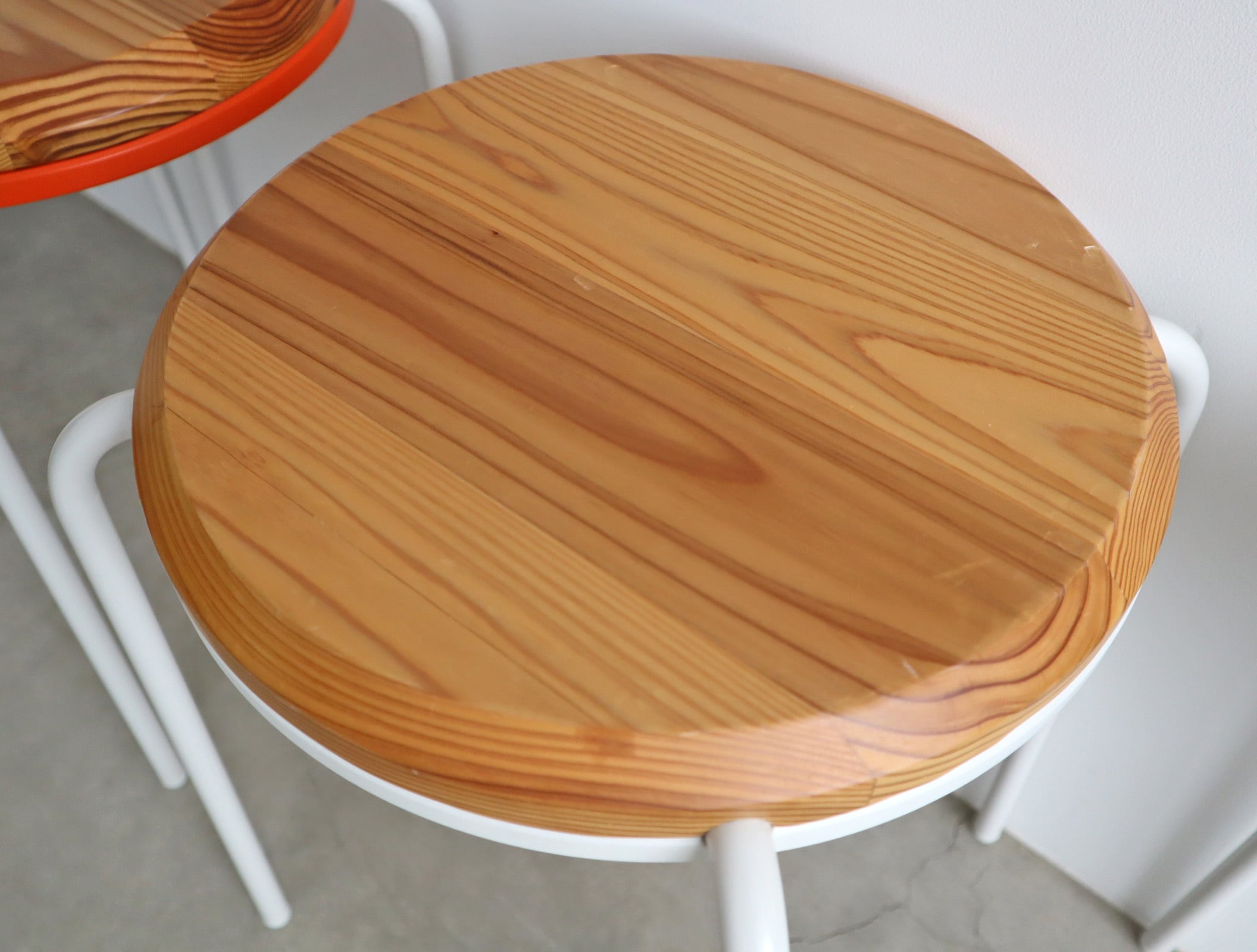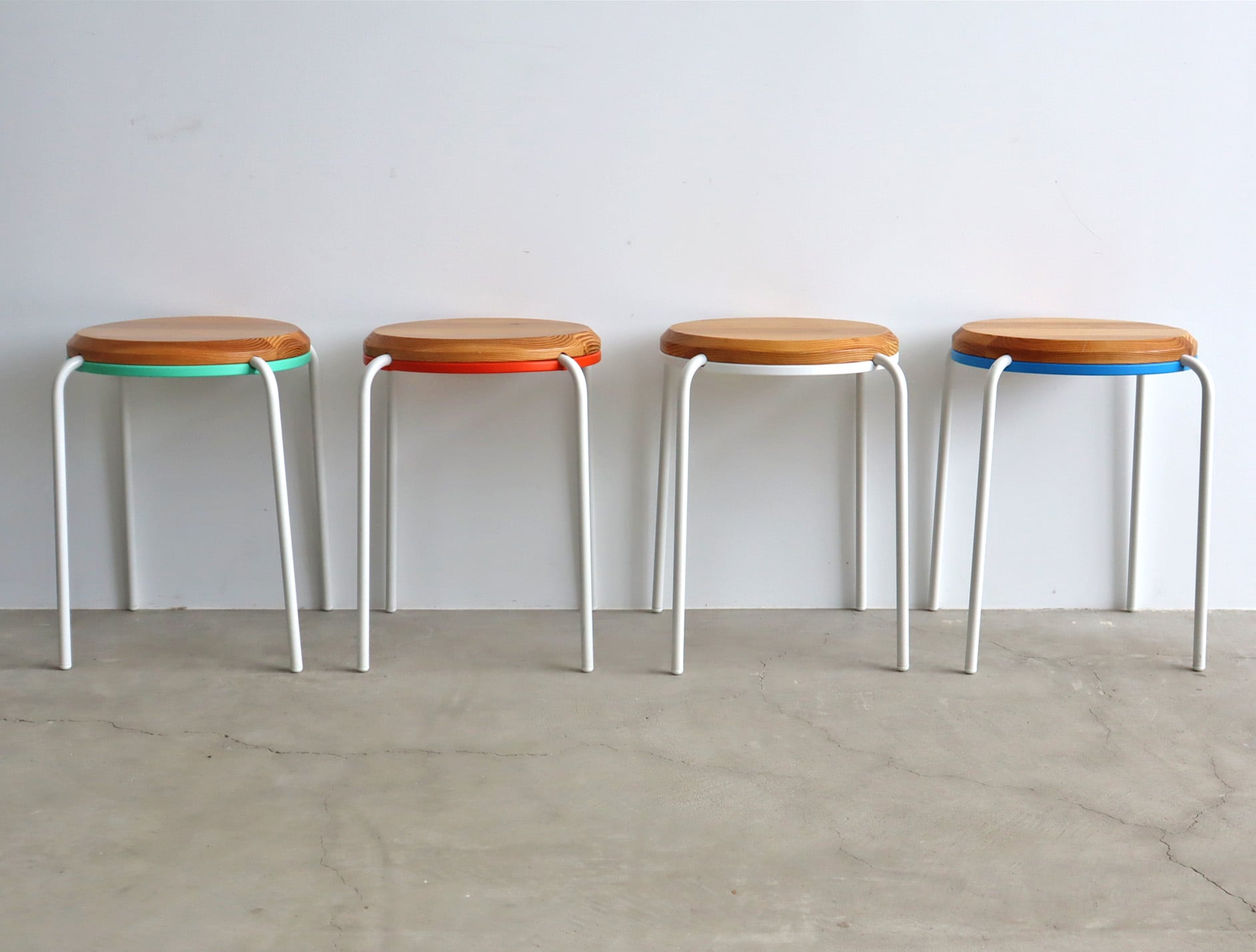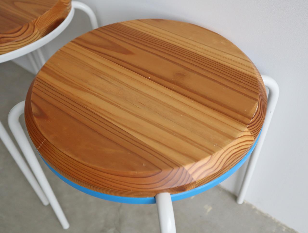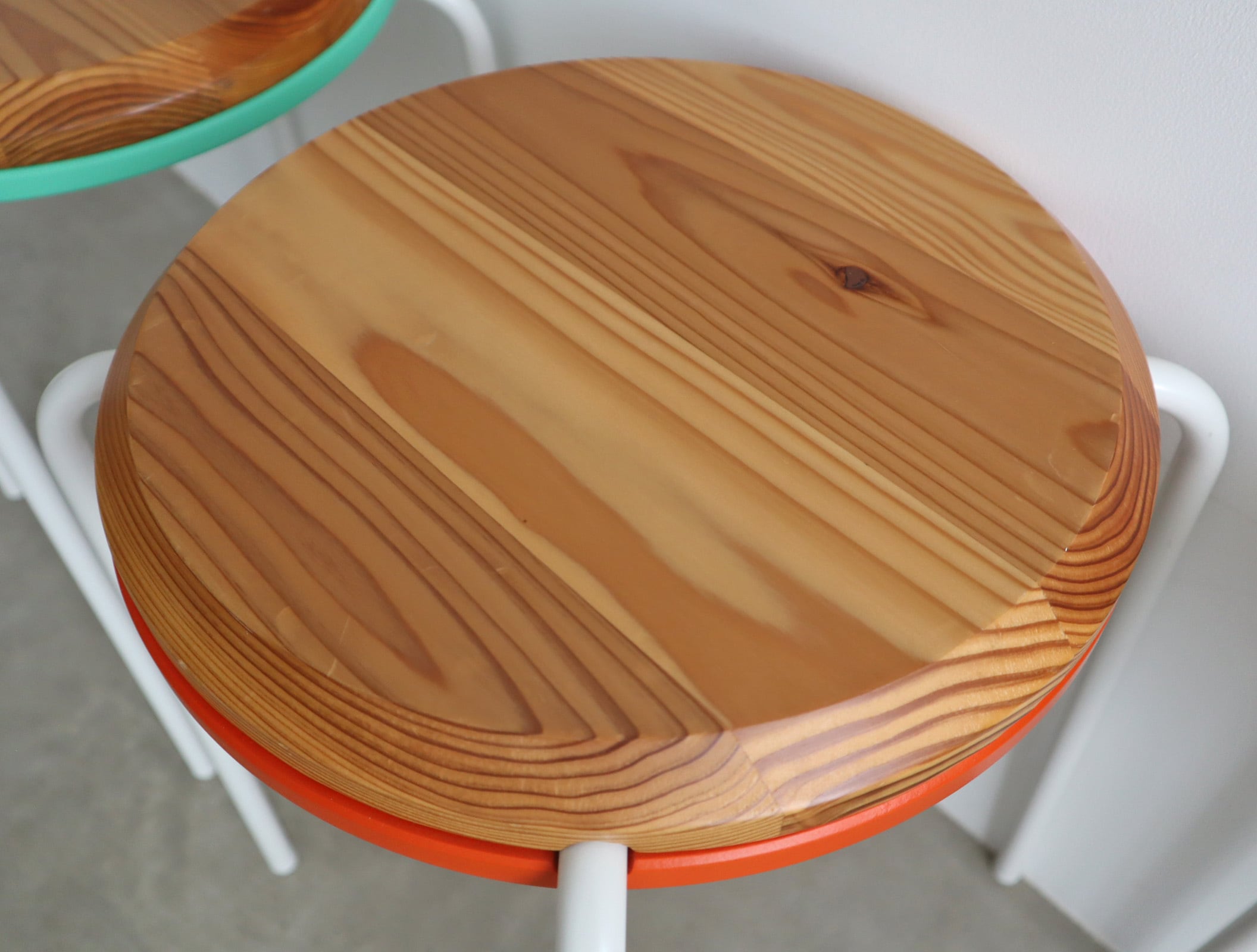 国産の杉材を使った食堂からカフェワークまで幅広く使えるスツールで、杉材のもつ温かみとカラフルなカラーリングが空間に彩りを与えます。