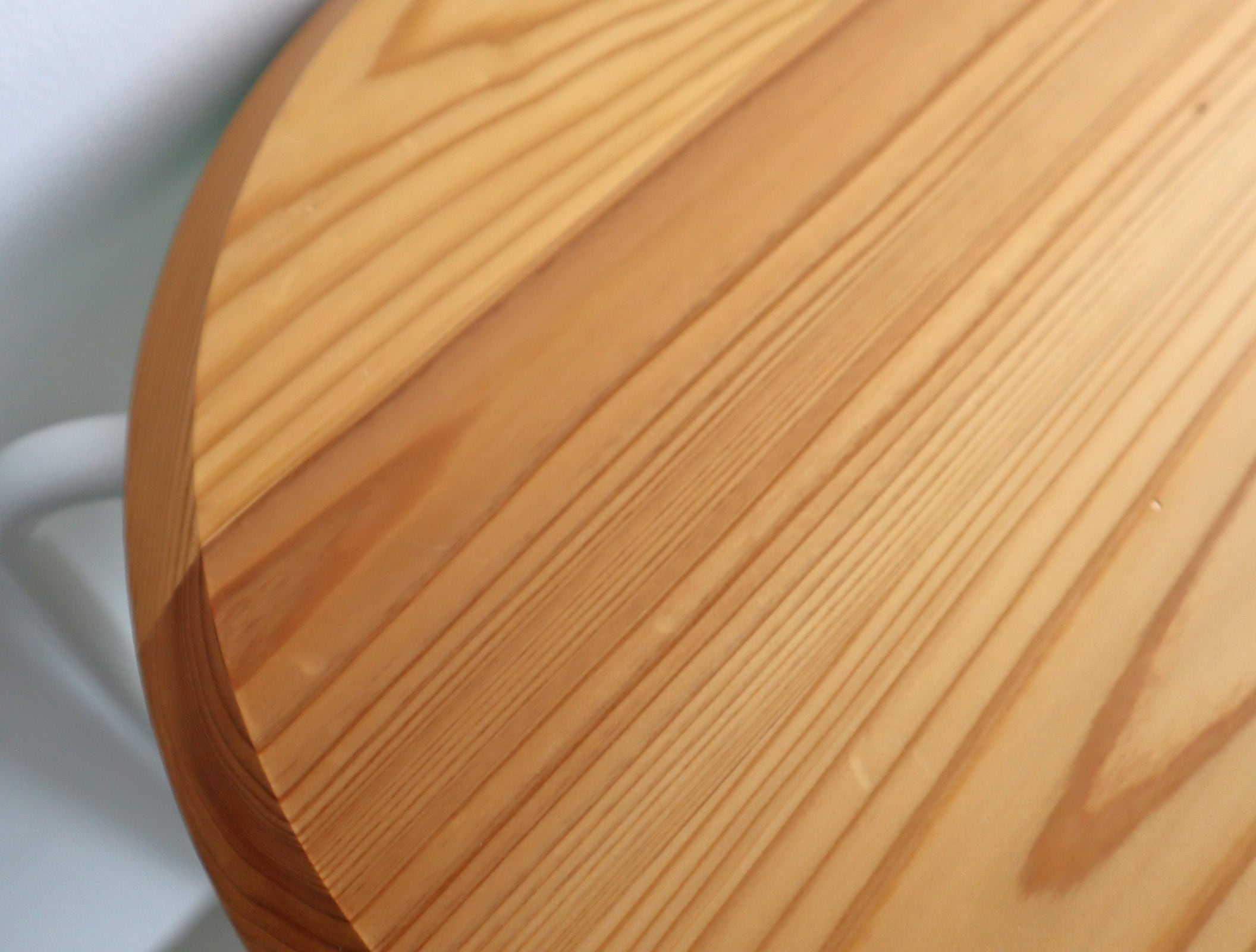スチール製のホワイトレッグはシンプルなラインを描き、杉材との対比が美しいバランスを生み出しています。