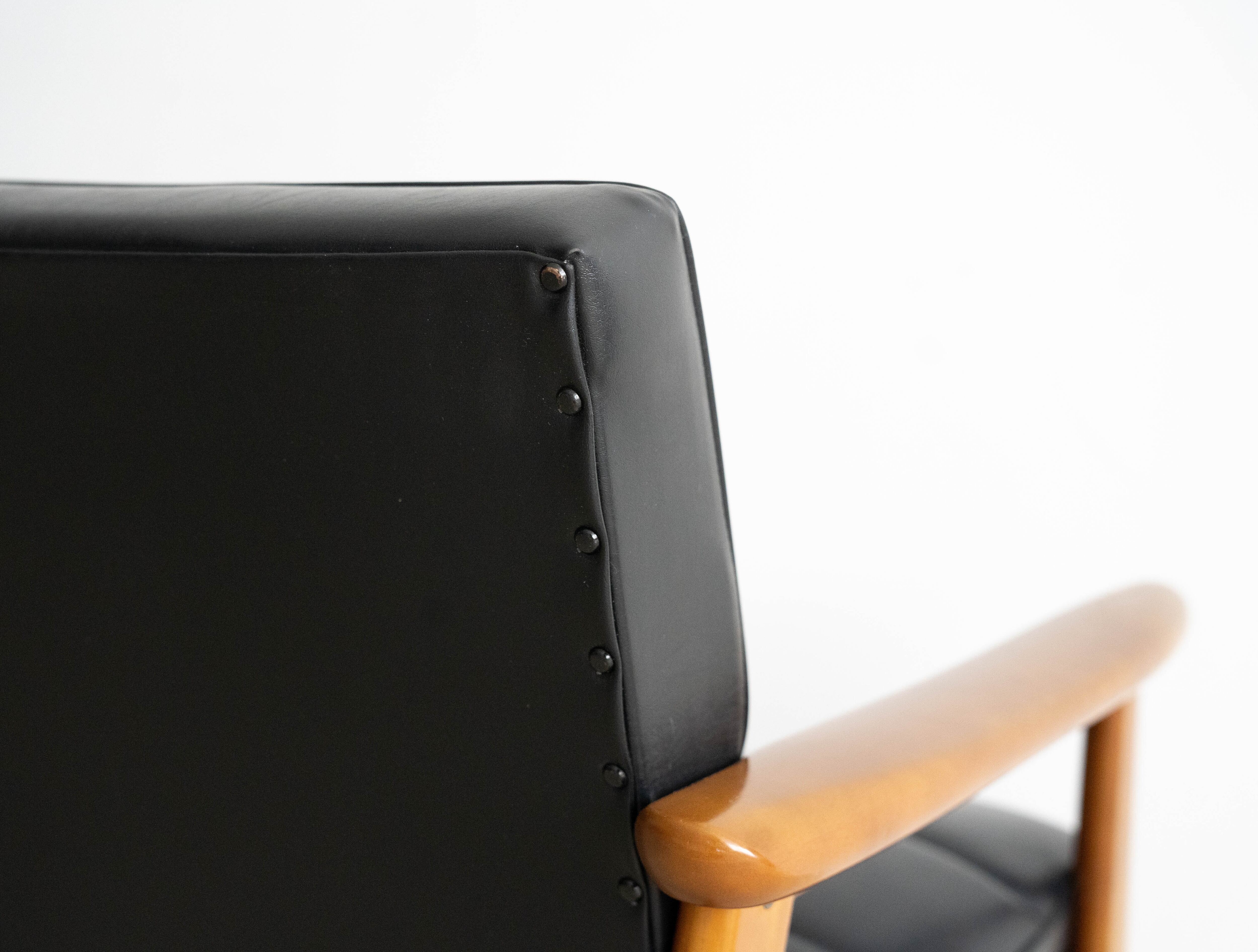 ビニールレザーの質感と木肌の温かさが融合した北欧スタイルのシンプルな雰囲気は、どんなインテリアとも相性がよく親和性の高い唯一無二のチェアです。