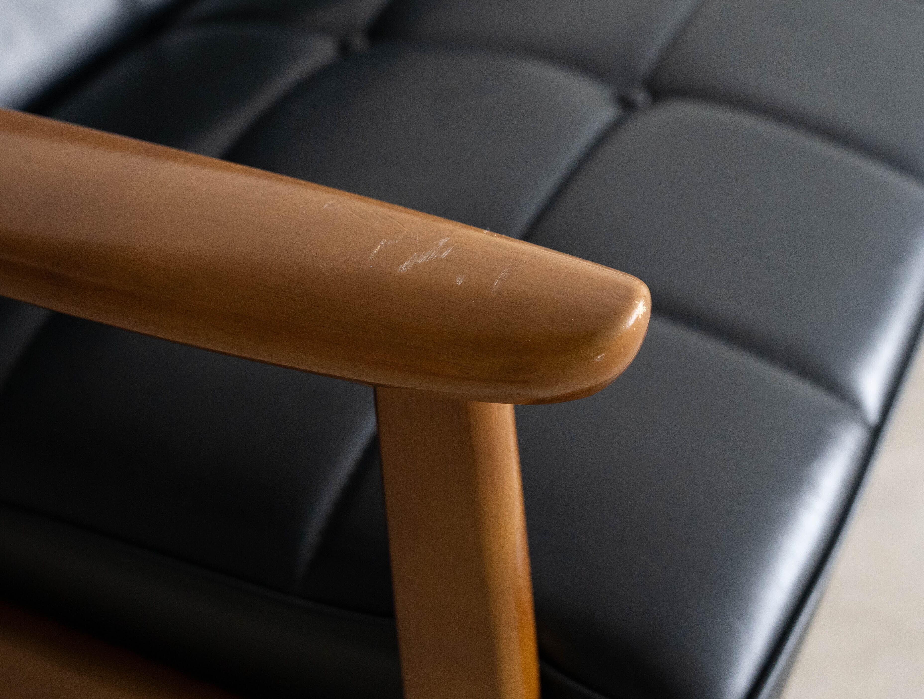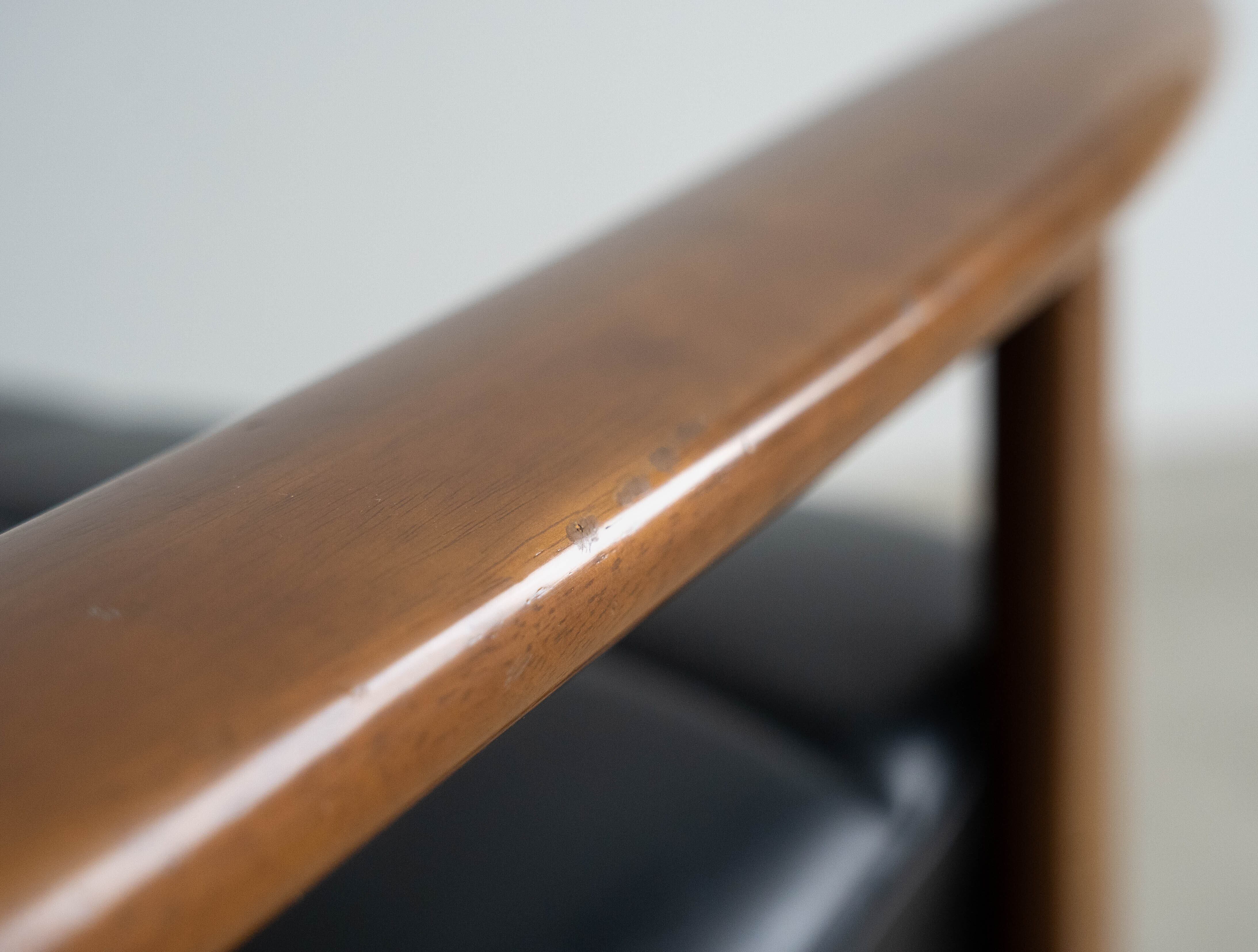 向かって左側のひじ掛け部分に、使用によるキズ、および点状の汚れがございます。