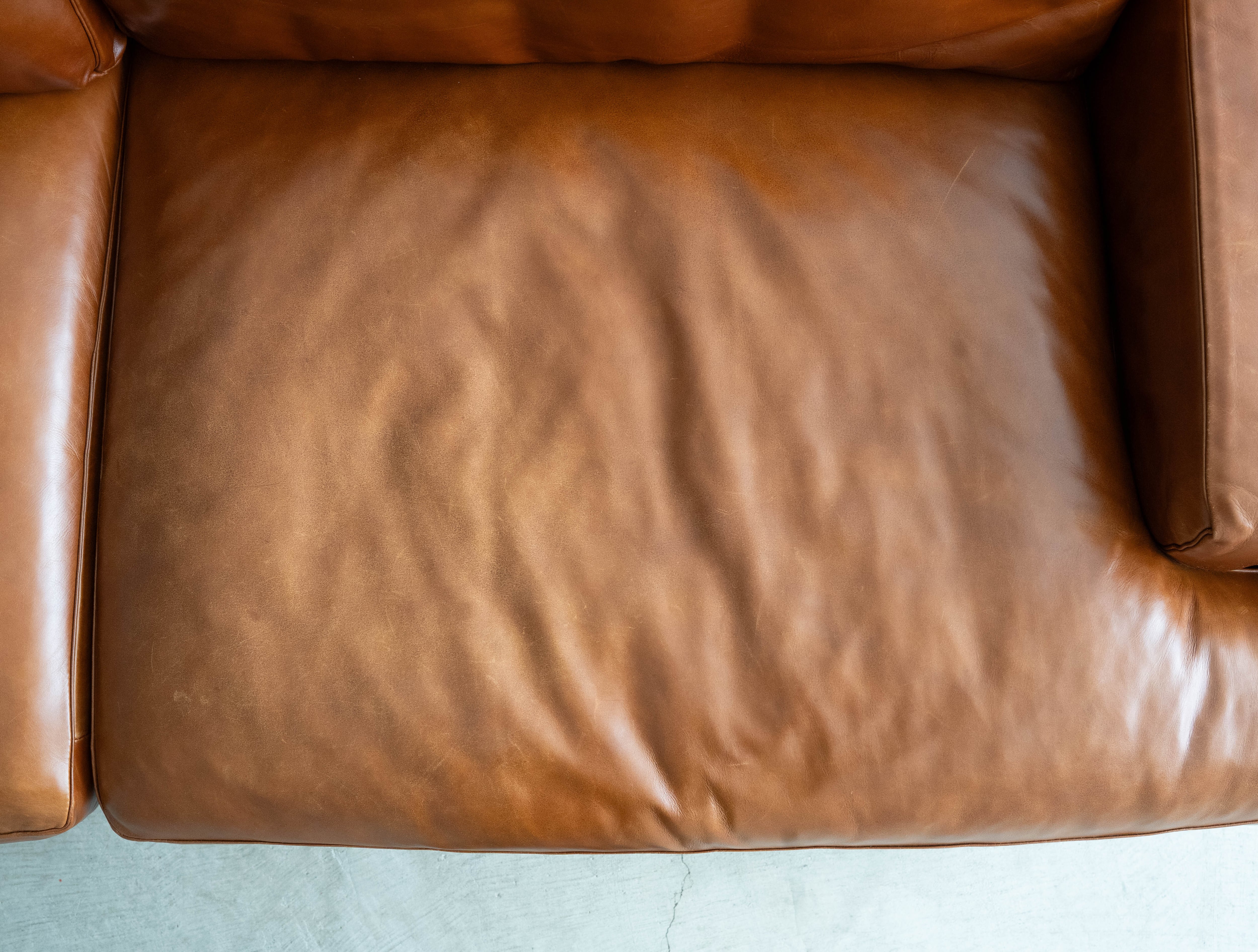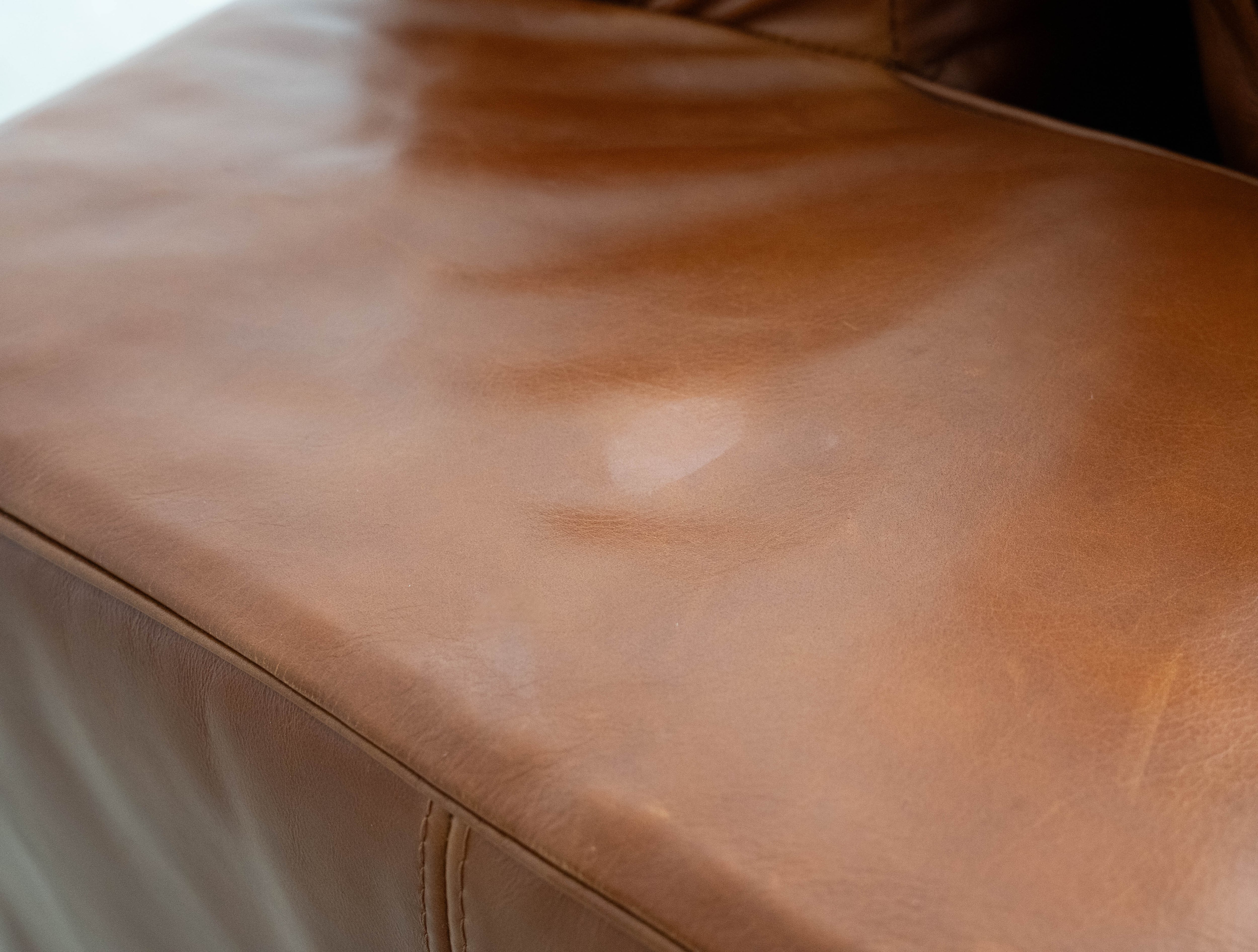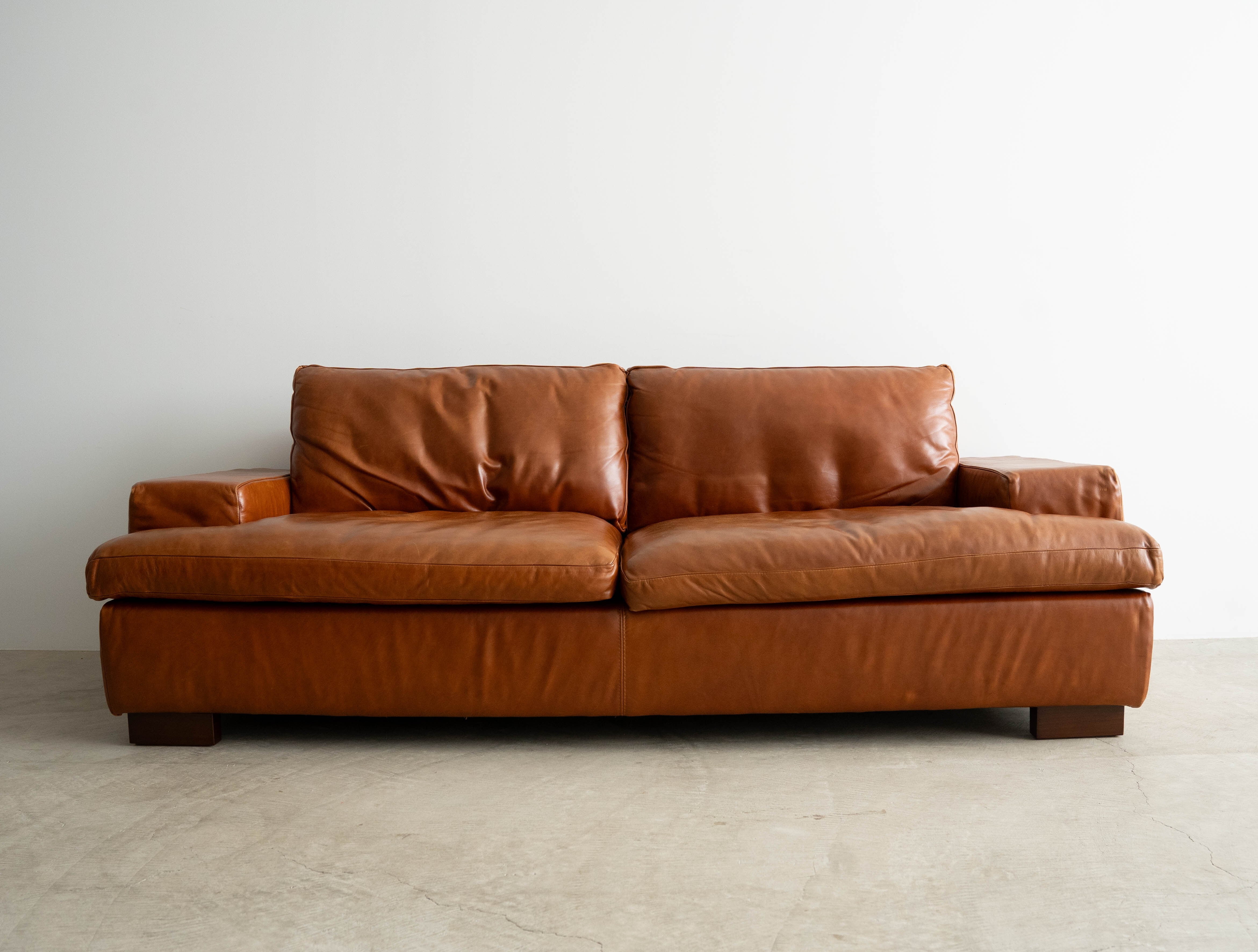 レザー専用クリーナーで全面クリーニングが完了、左右で沈み込みの差異もなく、まだまだこれからレザーのエイジングをお楽しみ頂きながら長い期間ご愛用いただけるグッドユーズドコンディションとしてご紹介させていただきます。