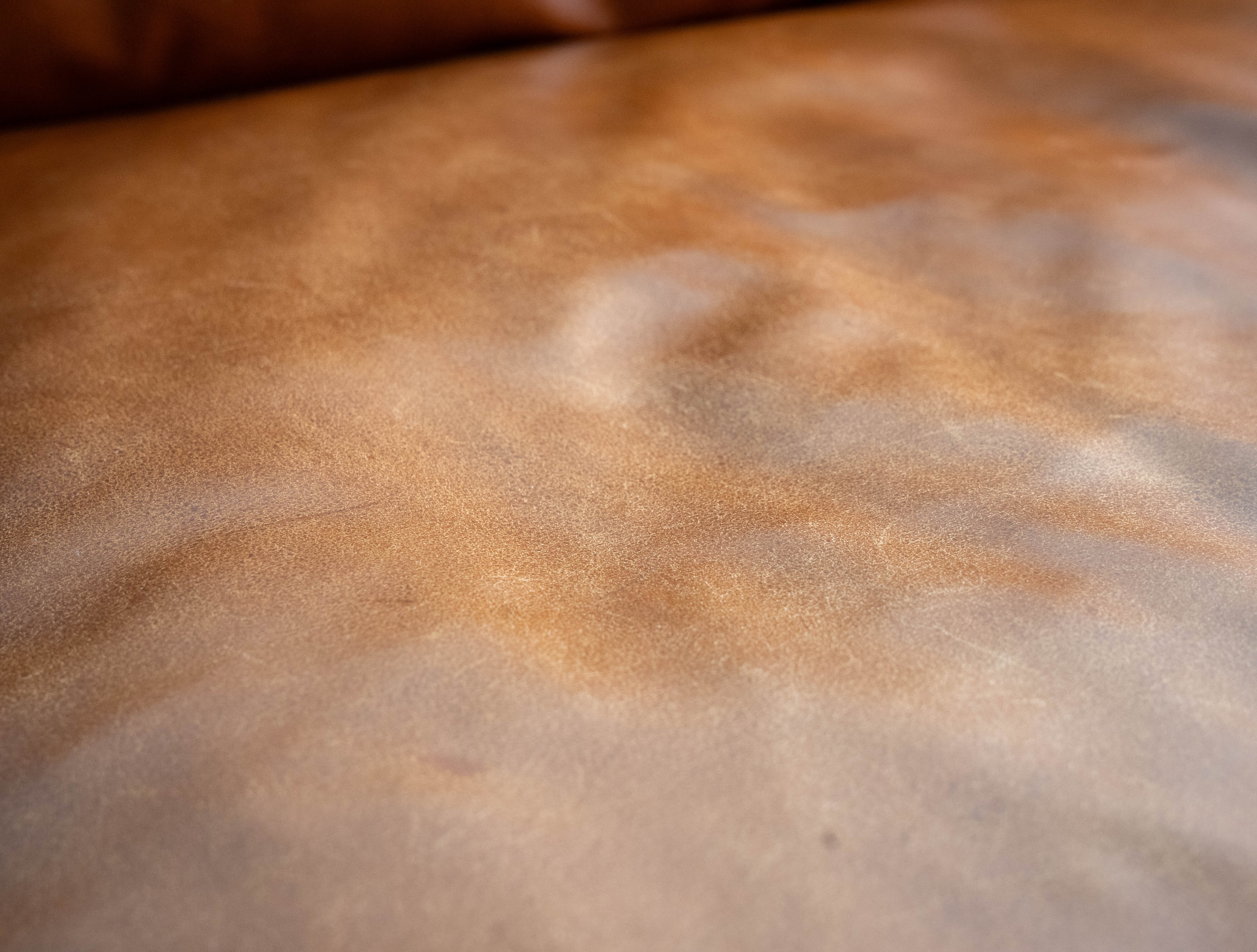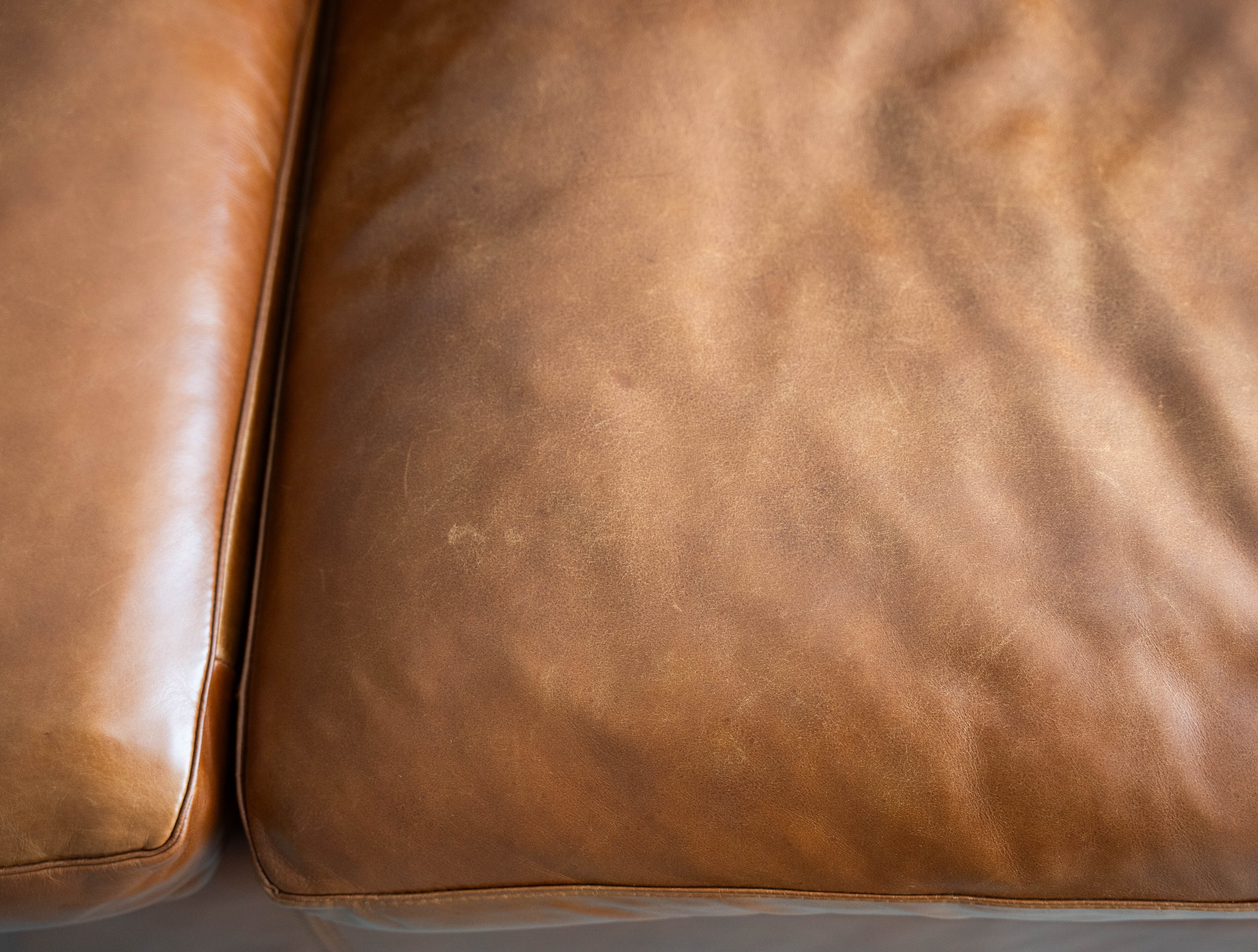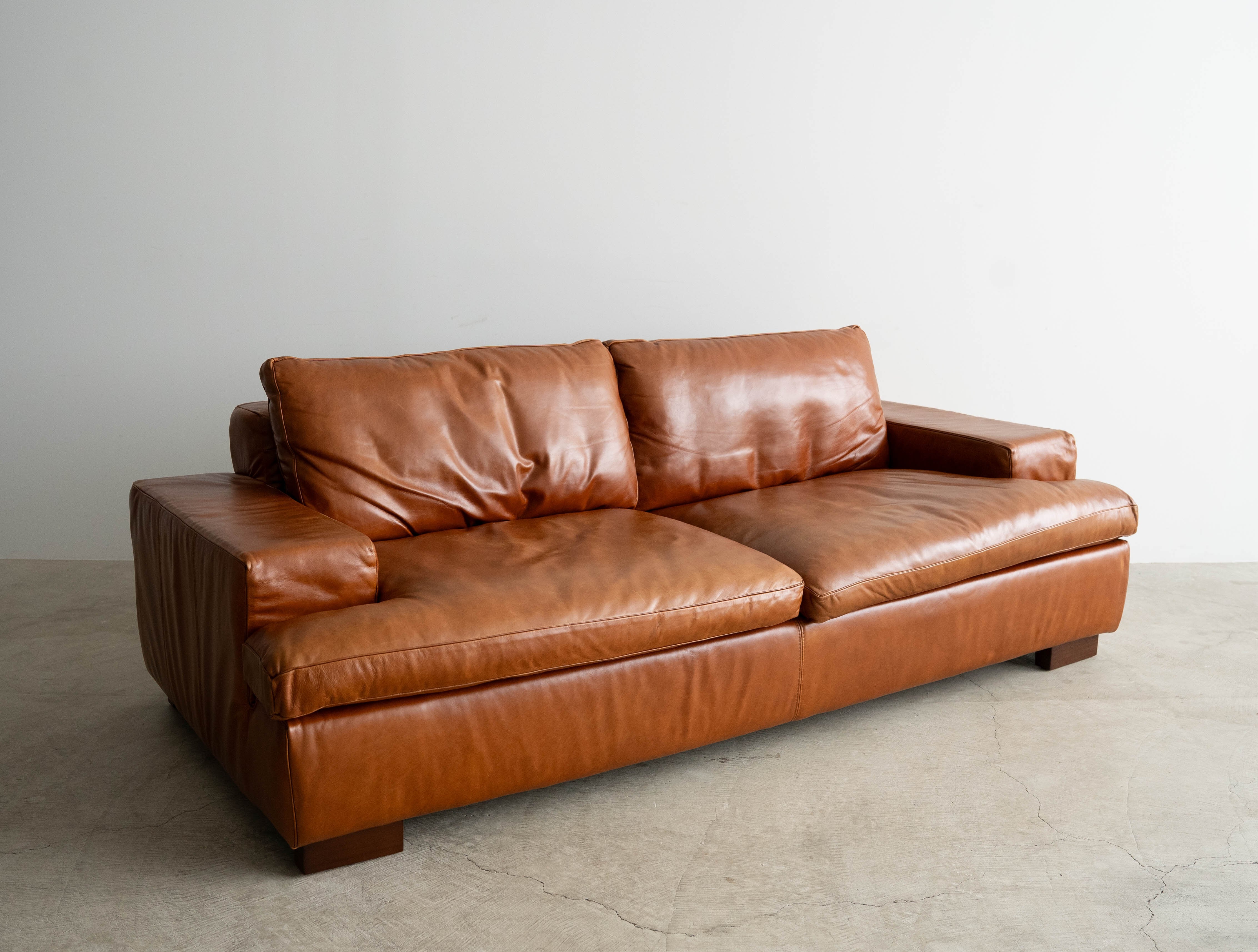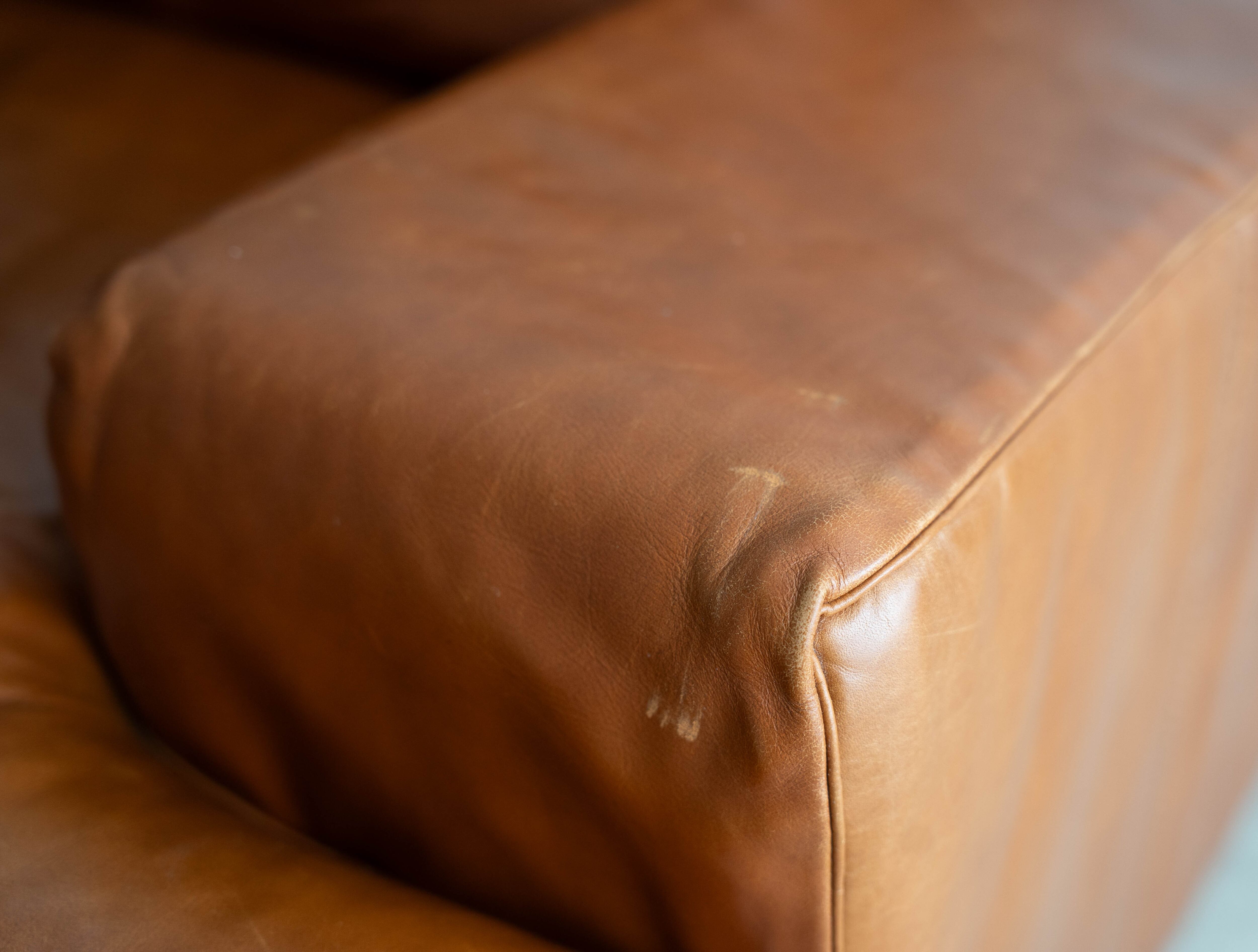 レザー専用クリーナーで全面クリーニングが完了、左右で沈み込みの差異もなく、まだまだこれからレザーのエイジングをお楽しみ頂きながら長い期間ご愛用いただけるグッドユーズドコンディションとしてご紹介させていただきます。