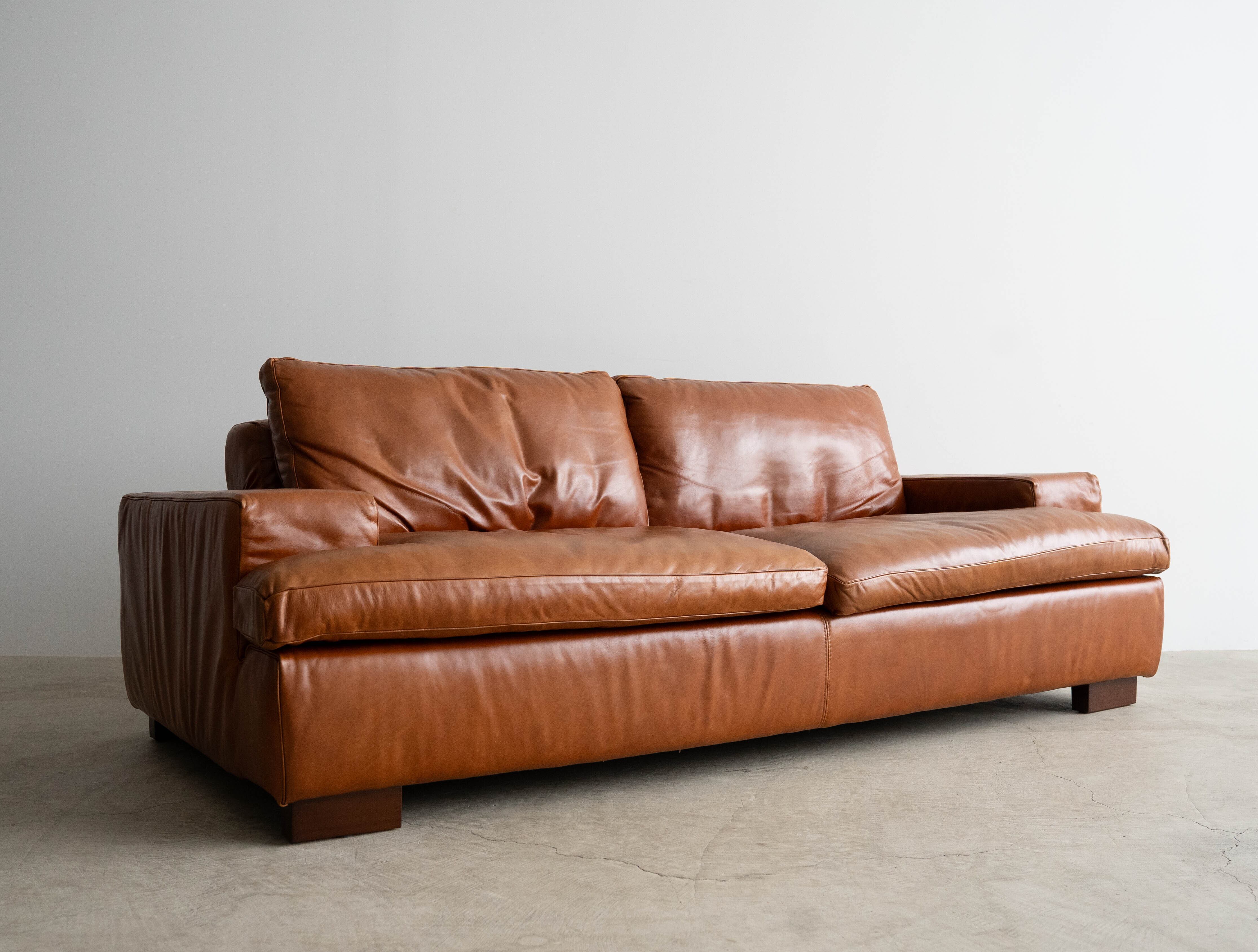 重厚感のある本革を贅沢に使用し、広々とした座面と程よい硬さのクッションは、フェザーの感触も相まって まるで包み込まれるような座り心地を体感させてくれます。