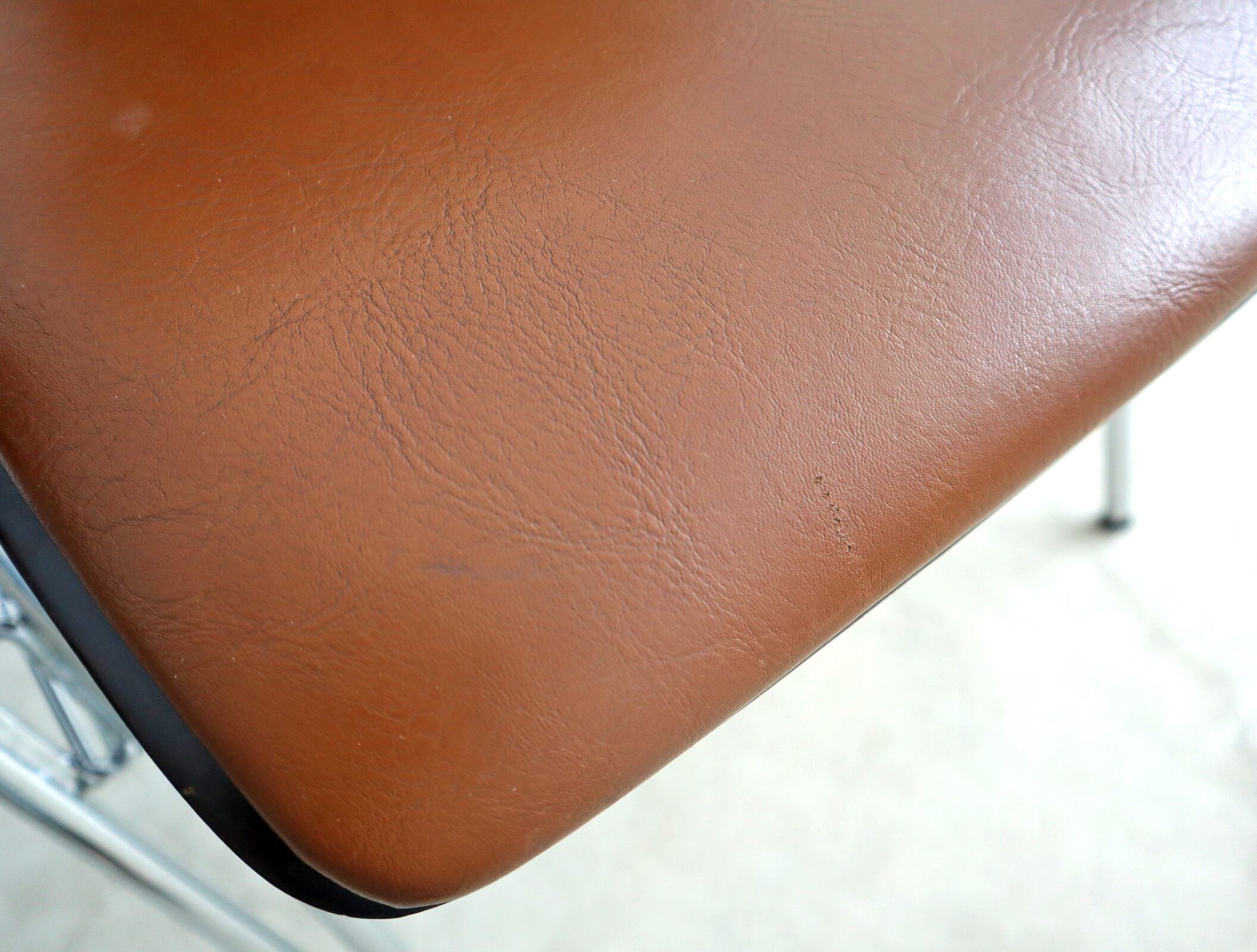 1脚のみ座面によく見るとわかる程度の凹みがございます。