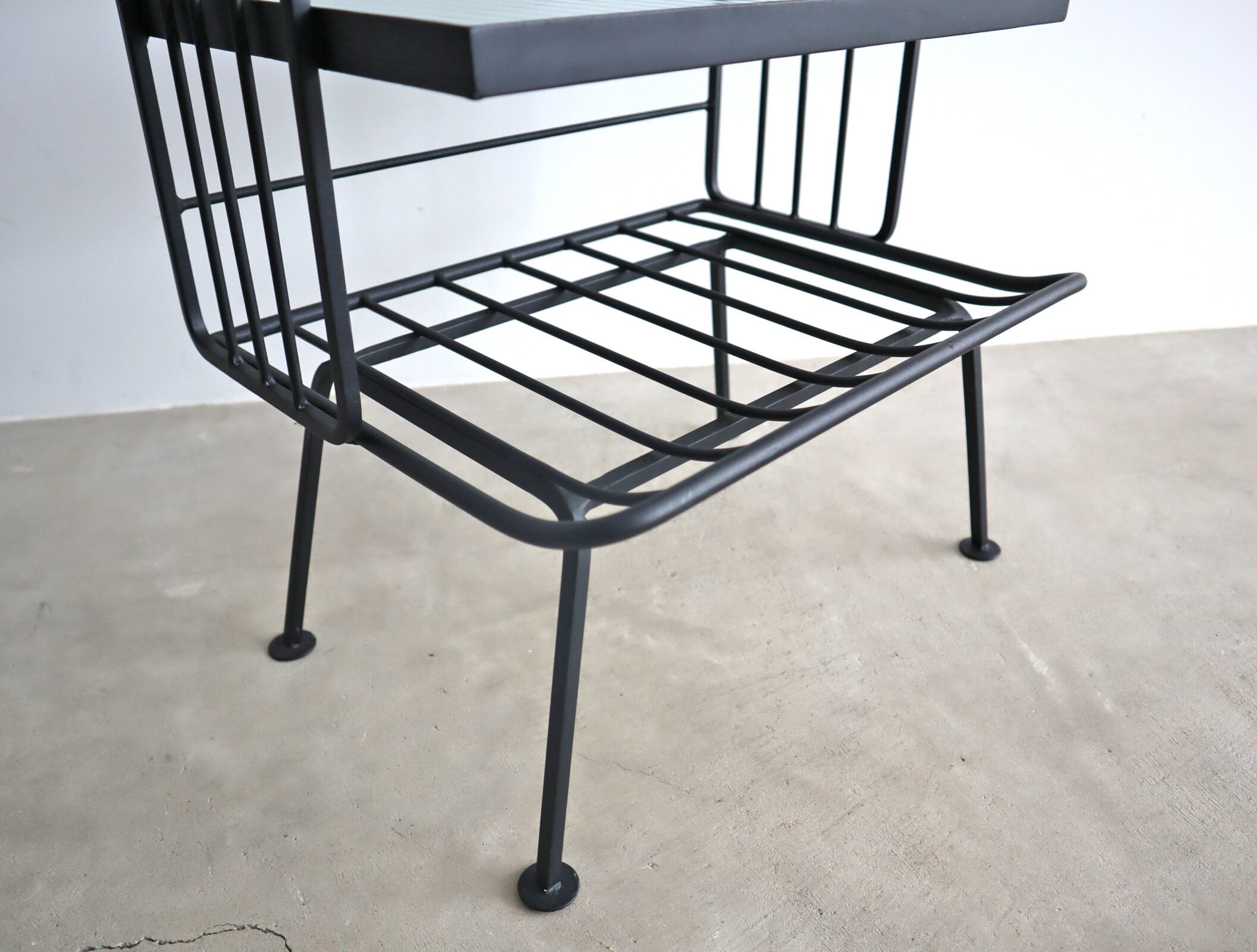 シンプルで温かみのあるオリジナル家具を展開するブランド unico ウニコの、STELLA ステラシリーズ、廃番モデルのアイアンガラスシェルフ。