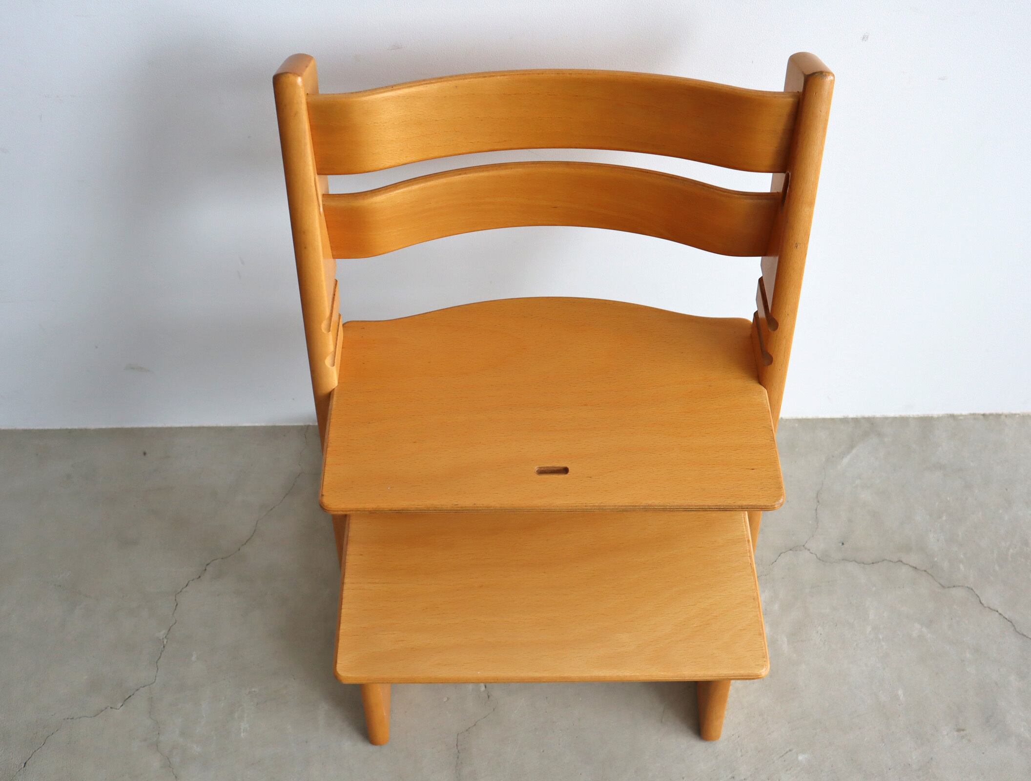 1972年の発売以来、成長に合わせて座面と足置きを調整できる機能性と、シンプルで美しい北欧デザインで高い支持を得ています。