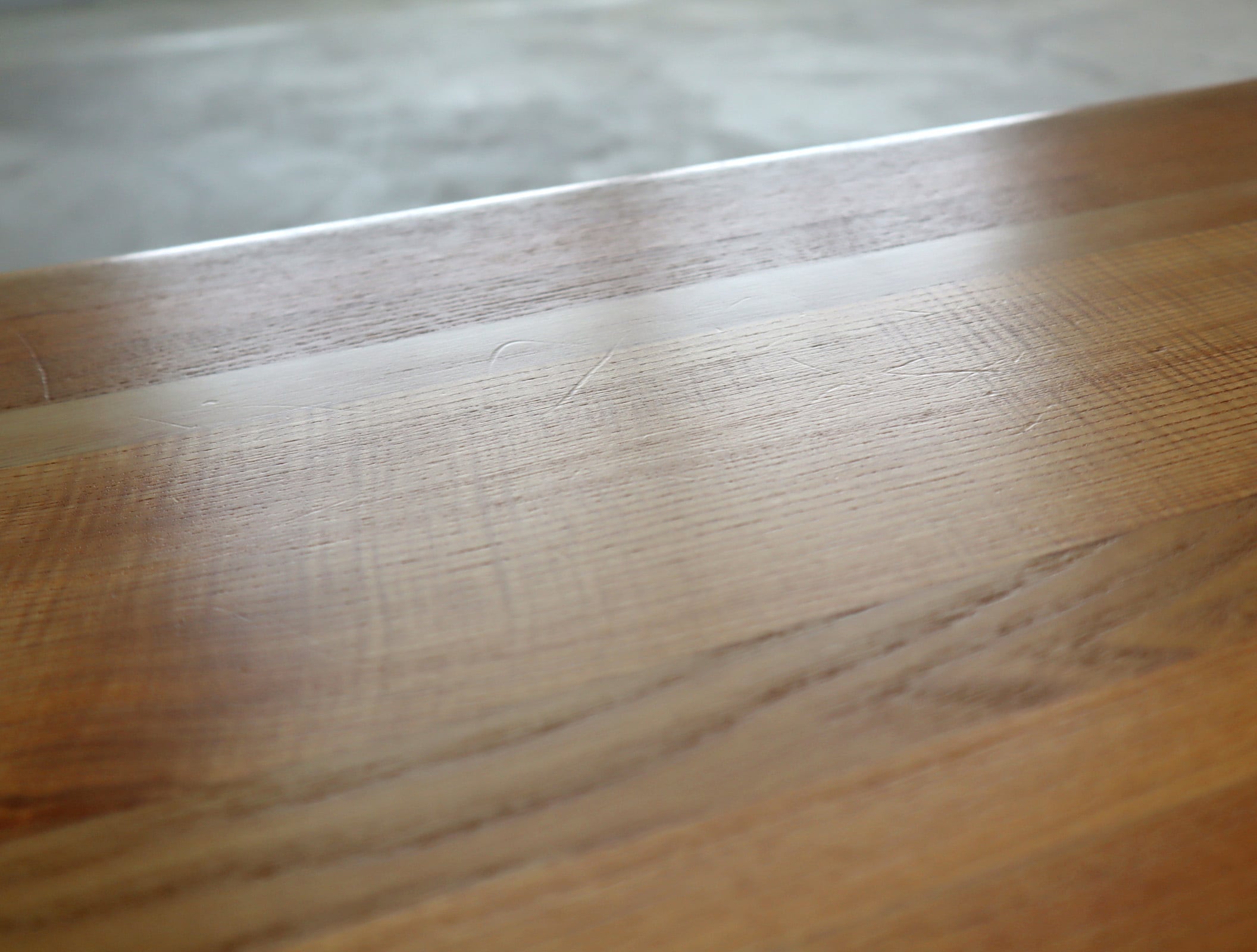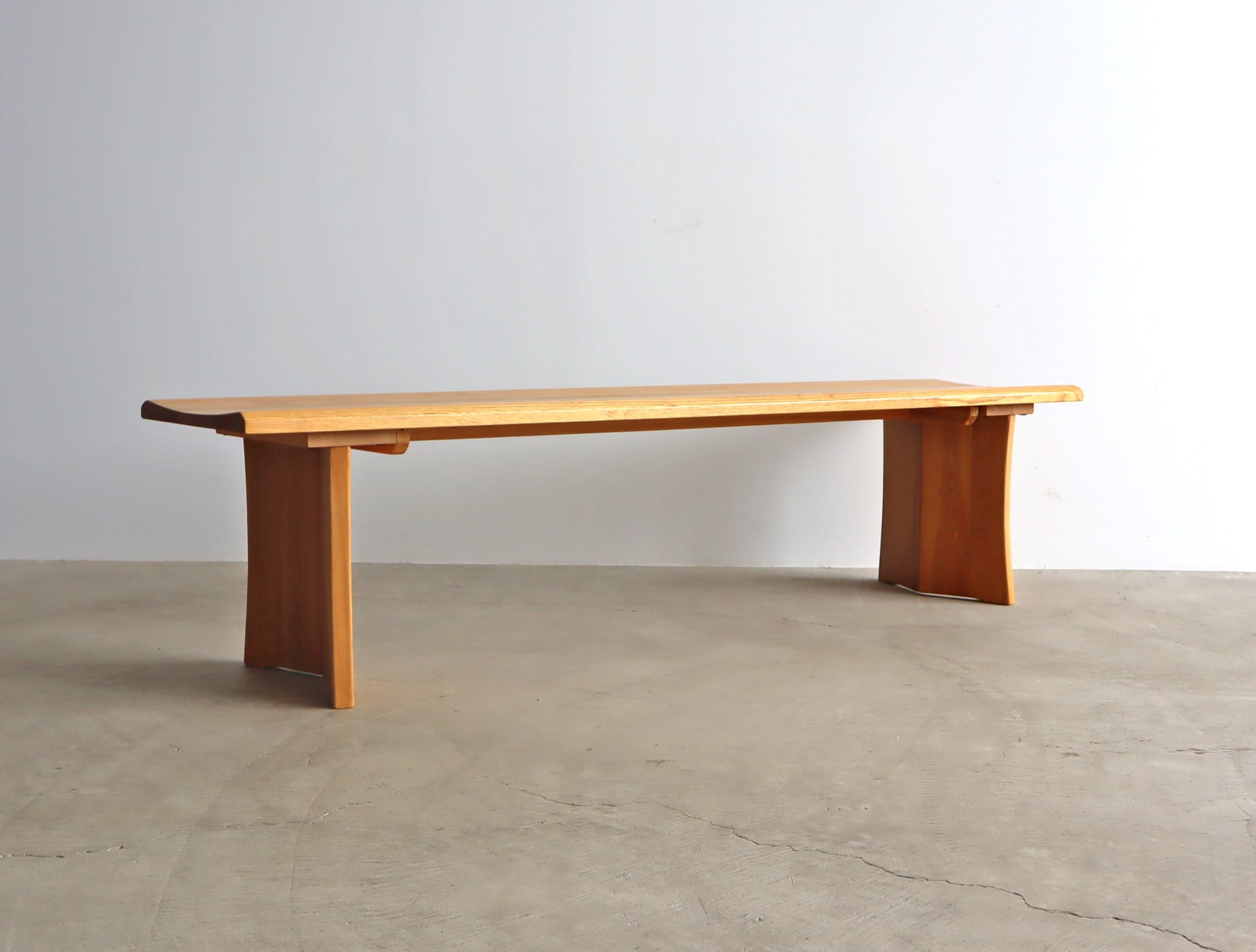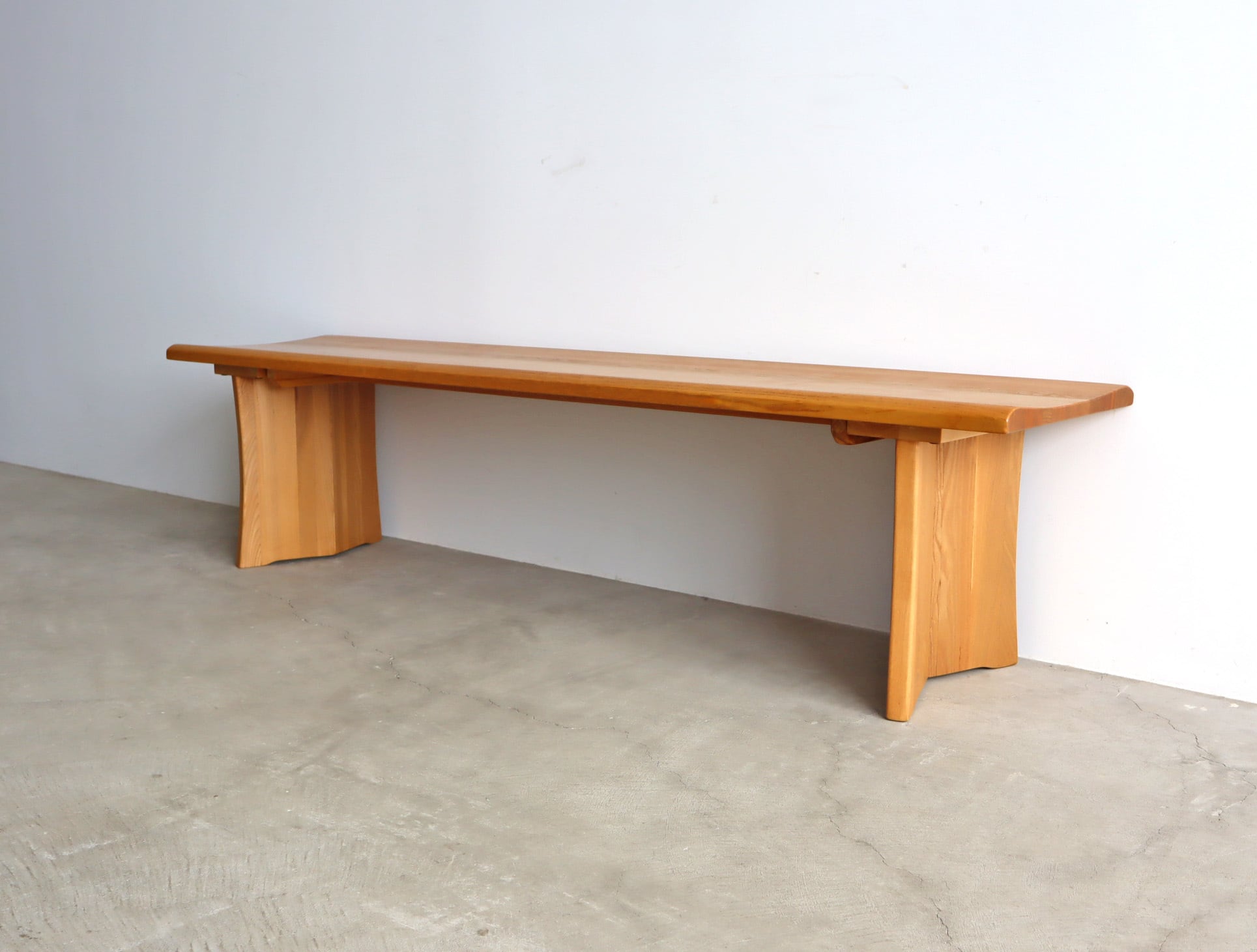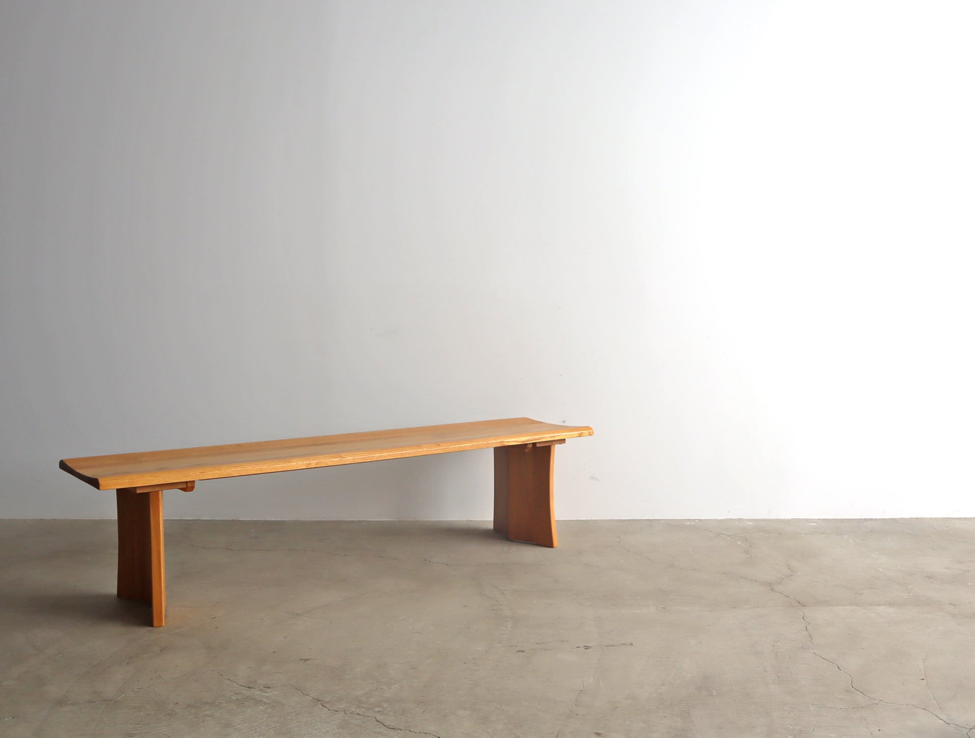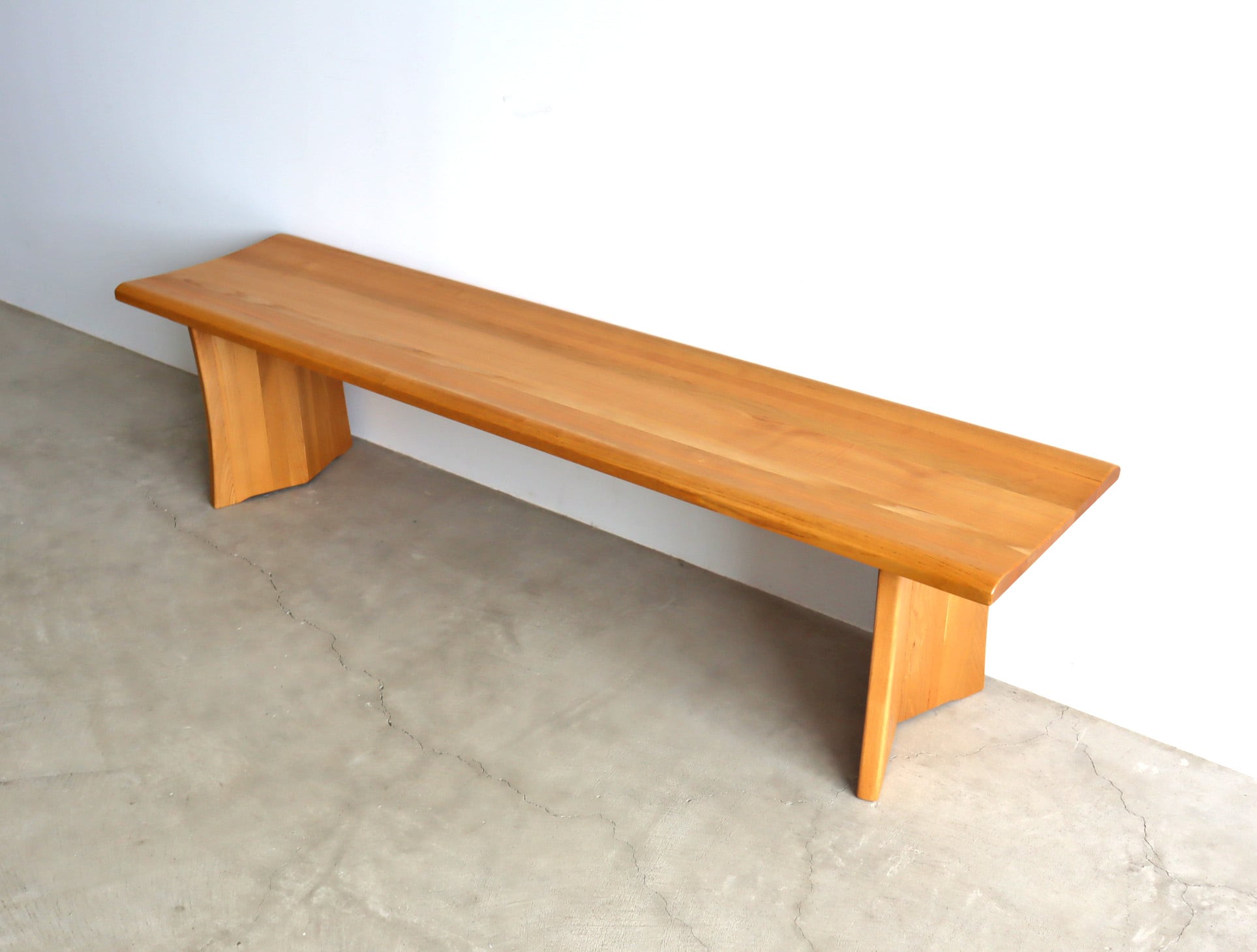 一枚一枚異なる温かみのある木目が織りなす表情は、無垢材ならではの美しさ。しっかりとした厚みを持つ座面は重厚感がありながら、直線的で無駄のないフォルムが空間にすっきりとした印象を与えます。