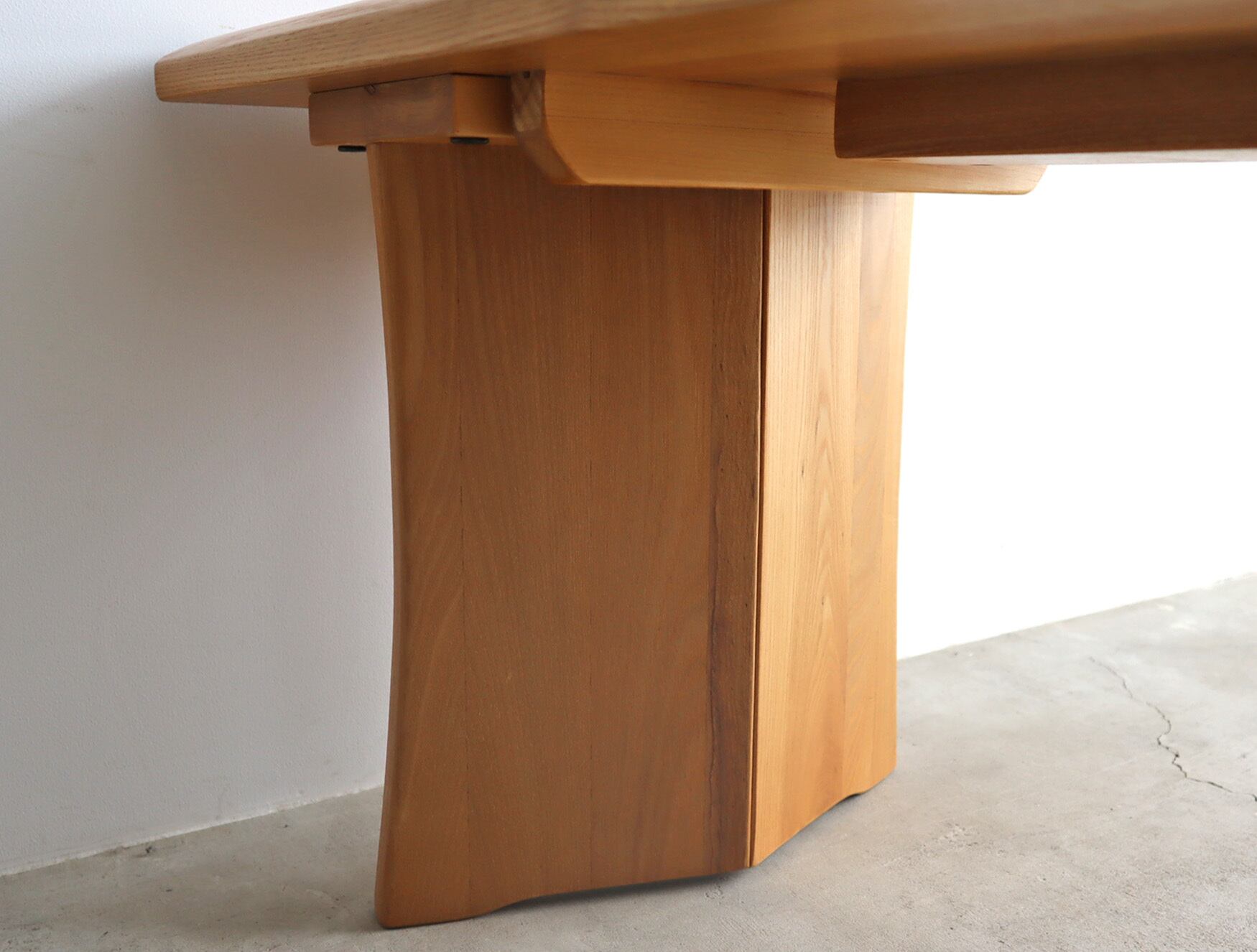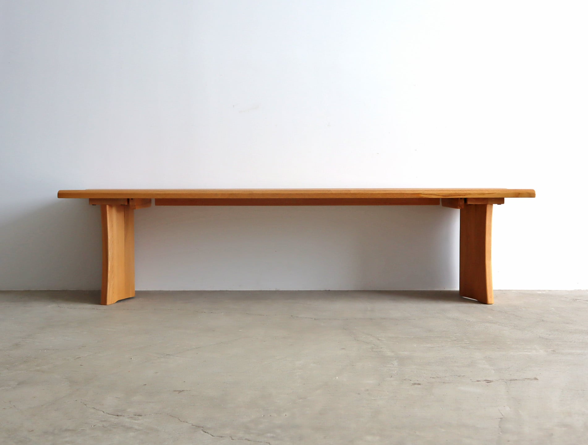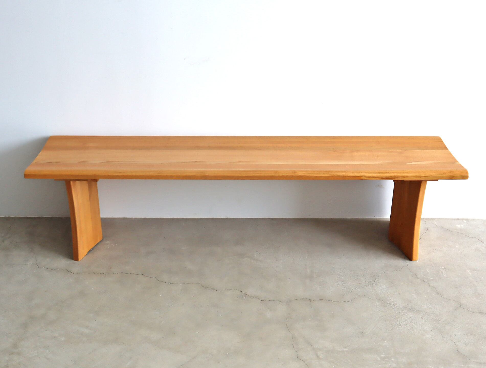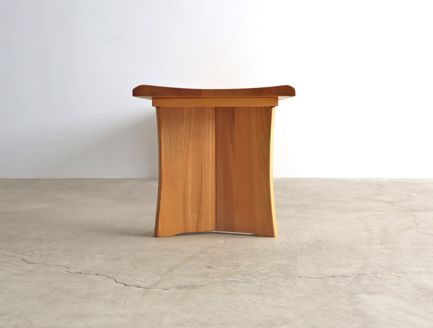 一枚一枚異なる温かみのある木目が織りなす表情は、無垢材ならではの美しさ。しっかりとした厚みを持つ座面は重厚感がありながら、直線的で無駄のないフォルムが空間にすっきりとした印象を与えます。