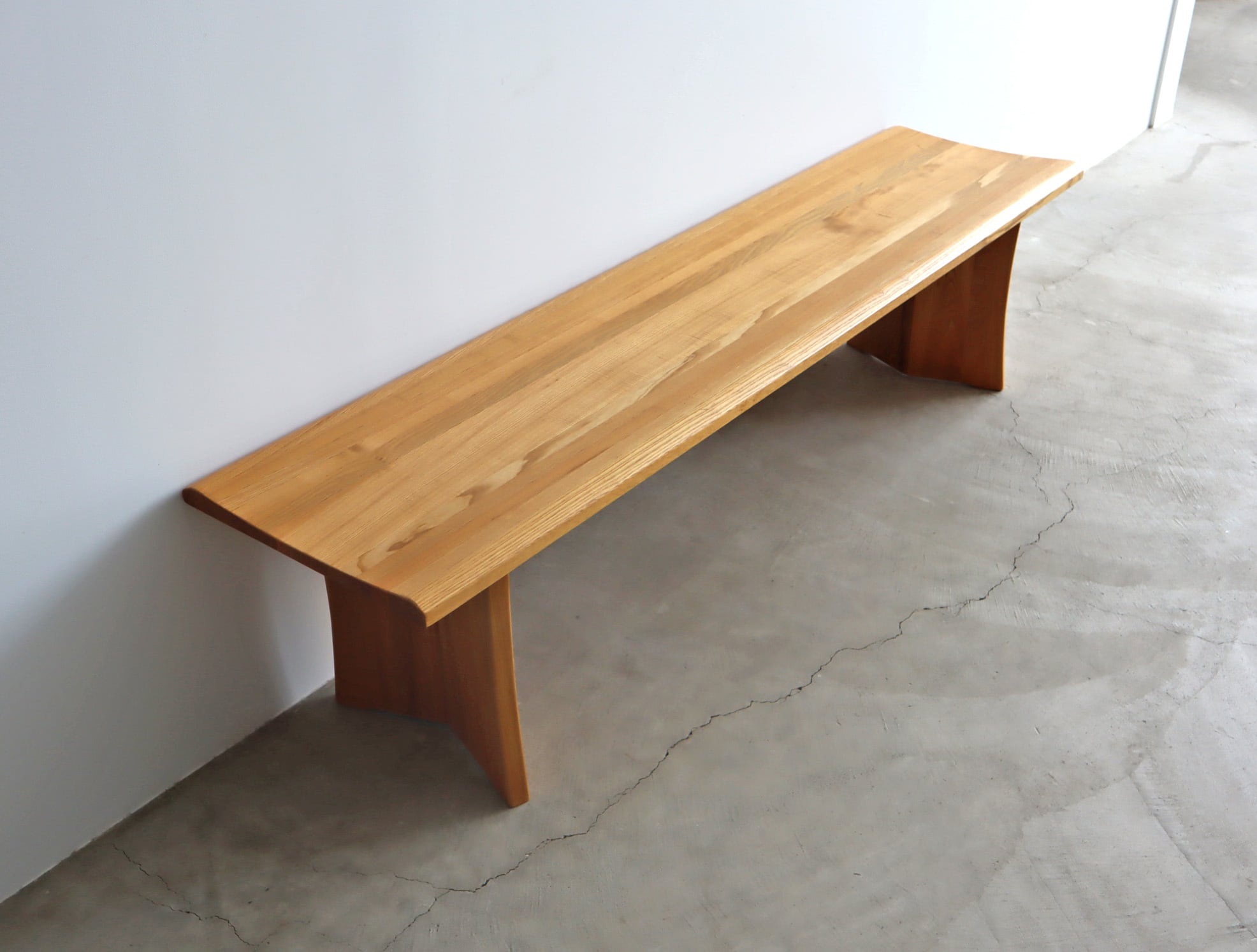 豊かな木目と丈夫さで知られるタモ無垢材を贅沢に使用したベンチです。
