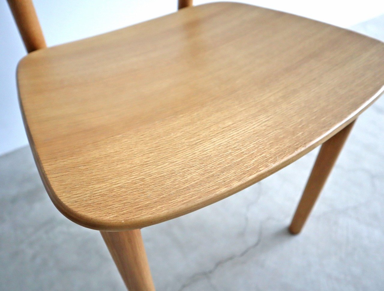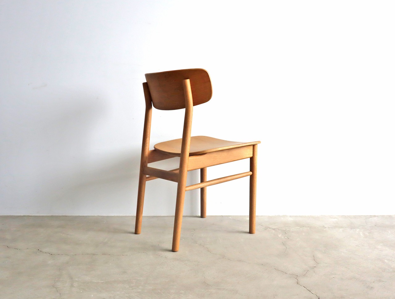 無垢材のぬくもりを感じられる木の質感と、やわらかな曲線で仕上げられた背もたれが、座る人をやさしく支えます。シンプルでありながら、丸みを帯びたフォルムが空間にやわらかな印象を与え、ダイニングや書斎、どんな場所にもすっと馴染みます。