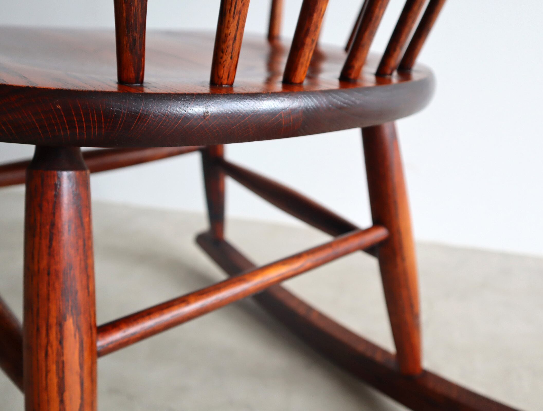 ゆったりと腰掛ければ、ロッキングの穏やかな揺れが心を解きほぐし、日常に静かな安らぎを運んでくれます。クラシカルでありながら、現代のインテリアにも自然に馴染む存在感を放つチェアです。