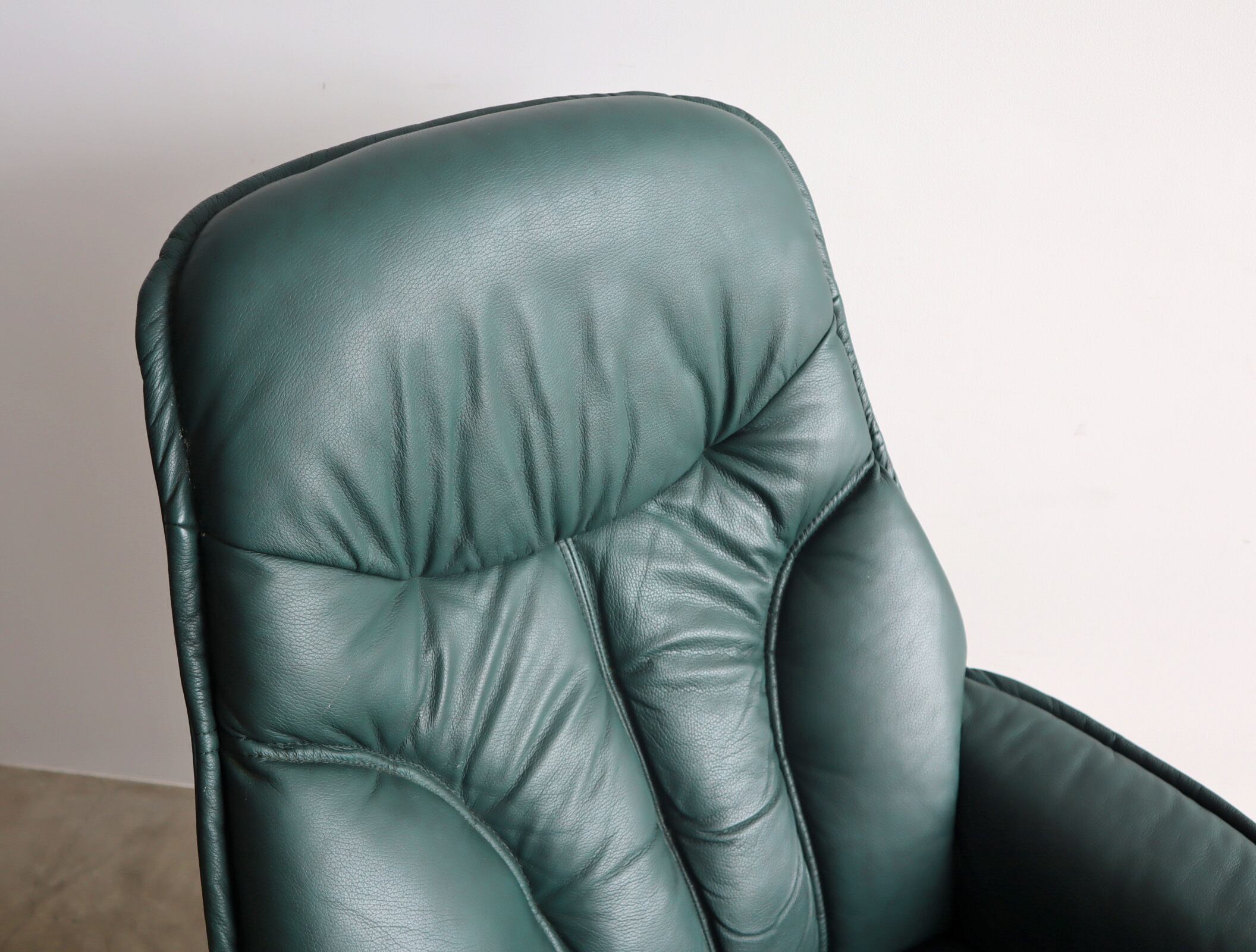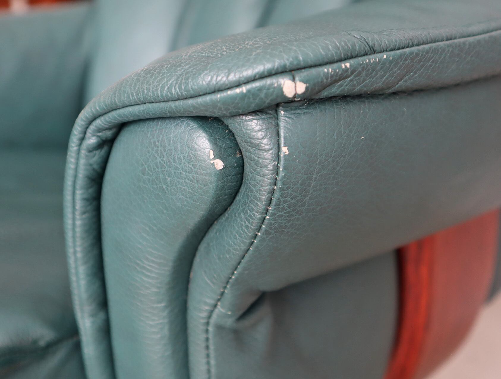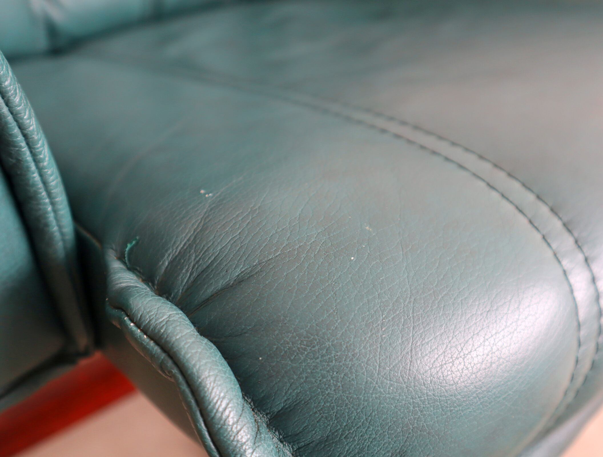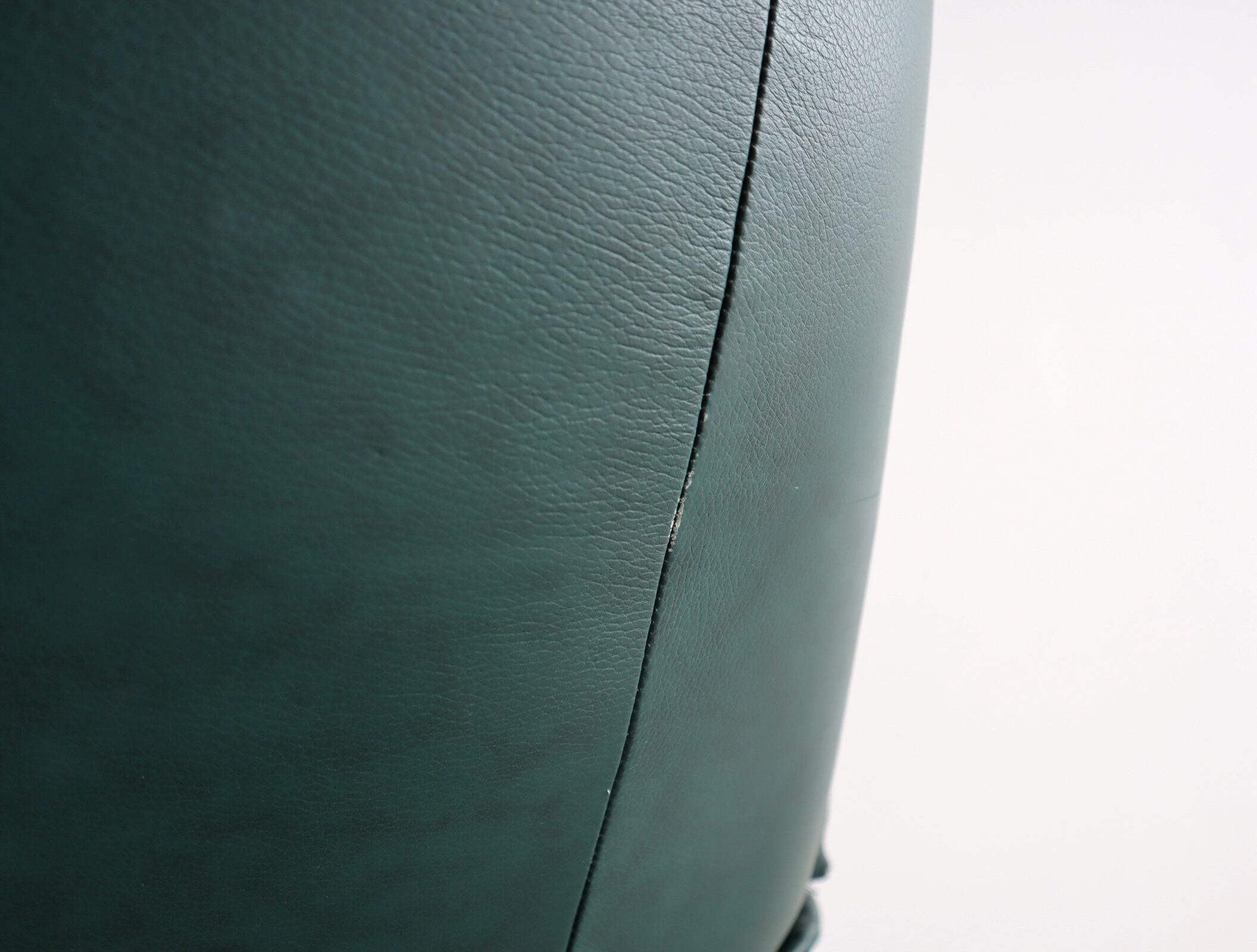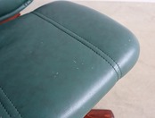 こちらのリクライニングチェアとオットマンのセットは美しい深緑のレザーと、温もりあるプライウッドのベースが織りなすコントラストが北欧家具ならではの上質さを物語ります。