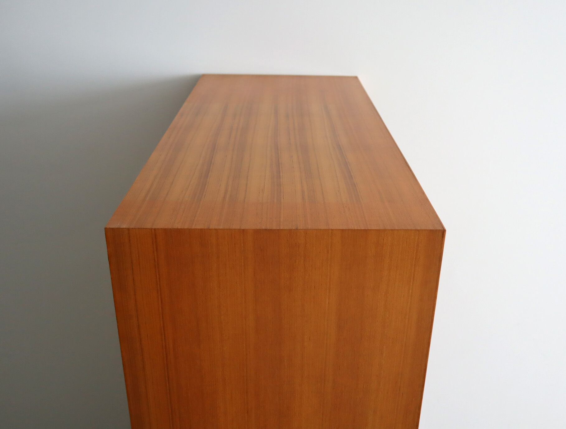 日本の家具史に名を刻む天童木工が、70年代に特注仕様として手がけたチーク材のシェルフ。