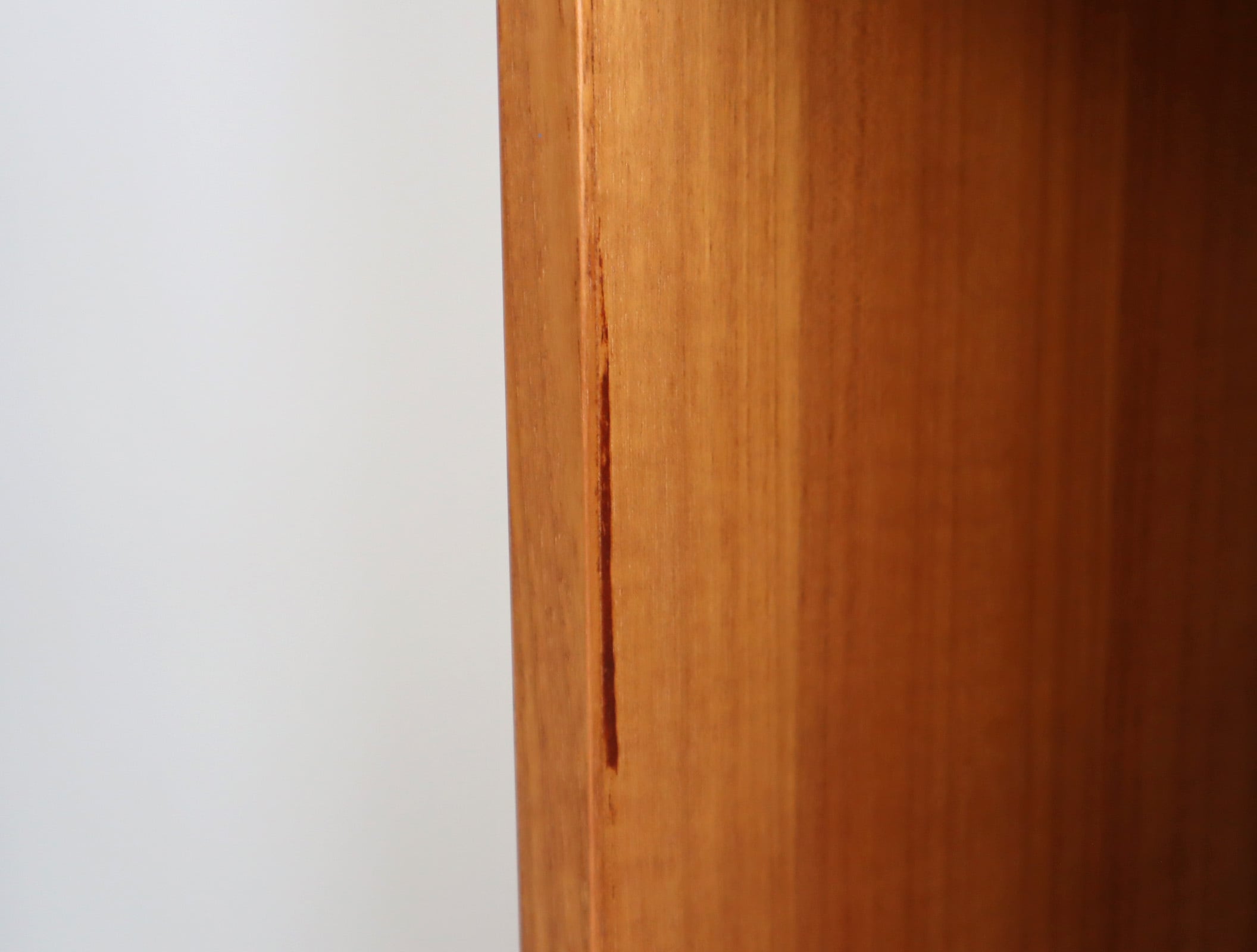 特に向かって右側面、長年隣に背の低いシェルフが設置してあったため、上下ではっきりと日焼けの跡が確認できます。