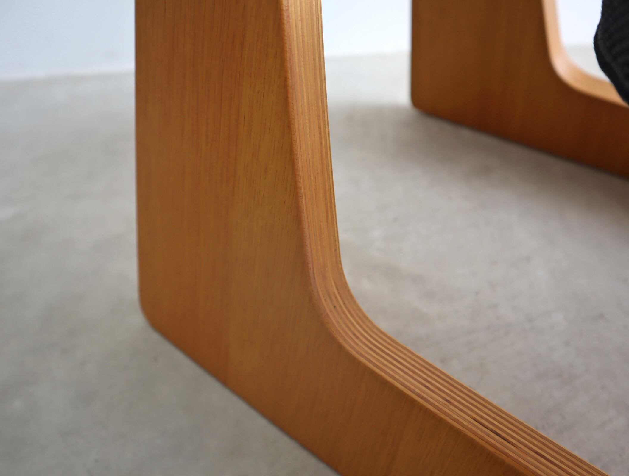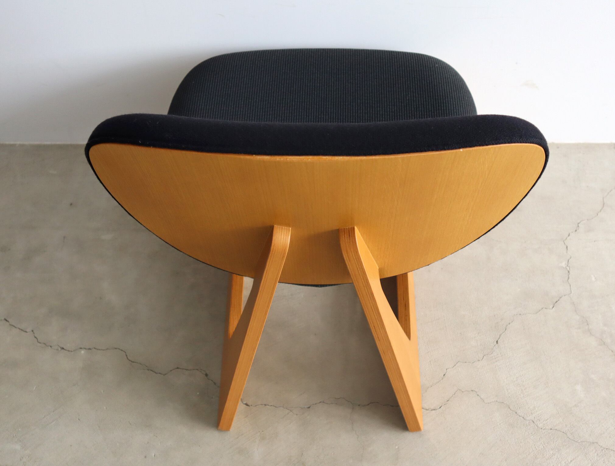背と座は大きく緩やかな曲線を描き、身体を包み込むような安心感を与え、成形合板の技術を駆使した脚部は、軽やかでありながら堅牢さを兼ね備え、ミニマルなデザインの中に確かな職人技を感じられる仕上がりです。
