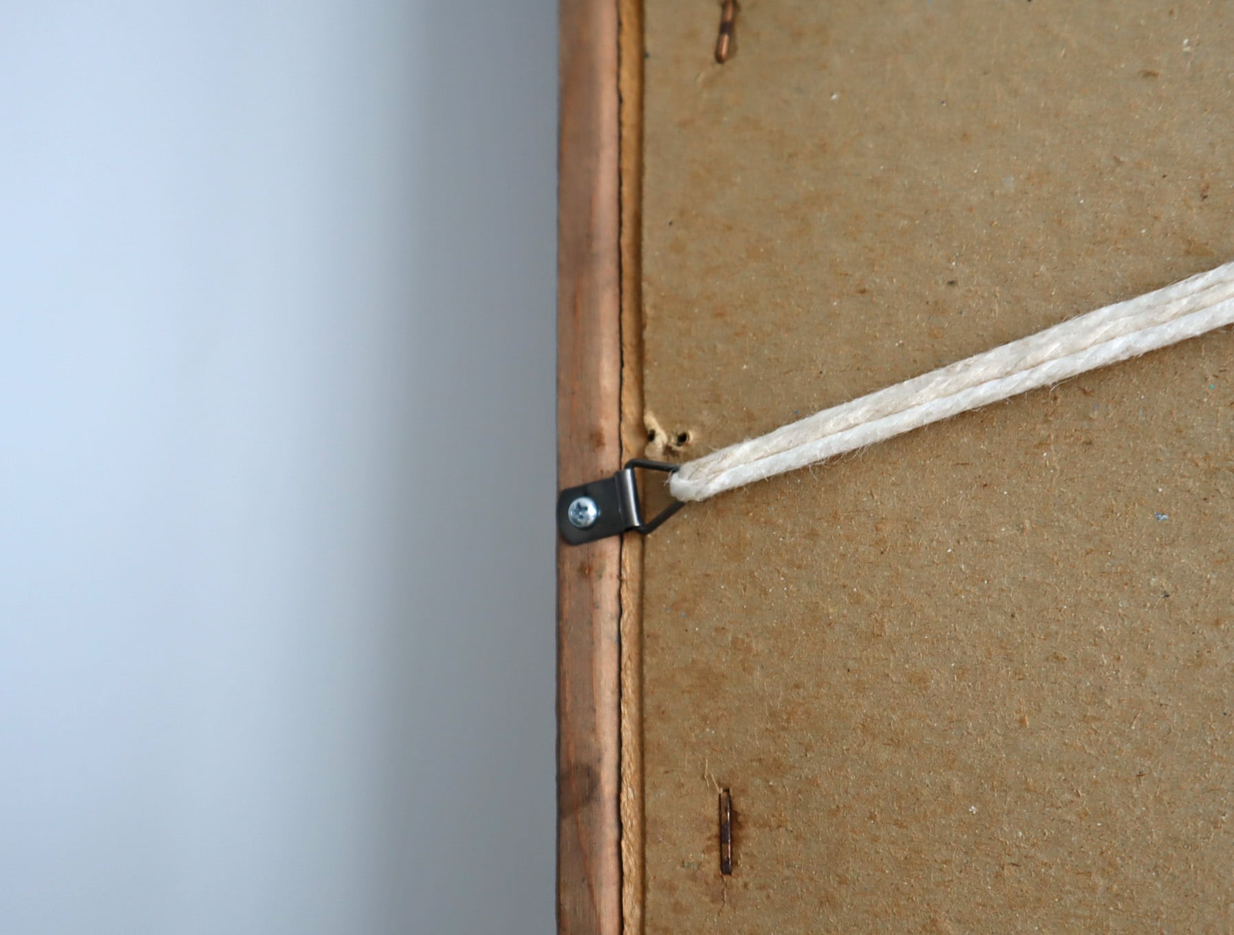 裏面の金具に紐が渡してあり、壁掛けできるようなつくりになっております。