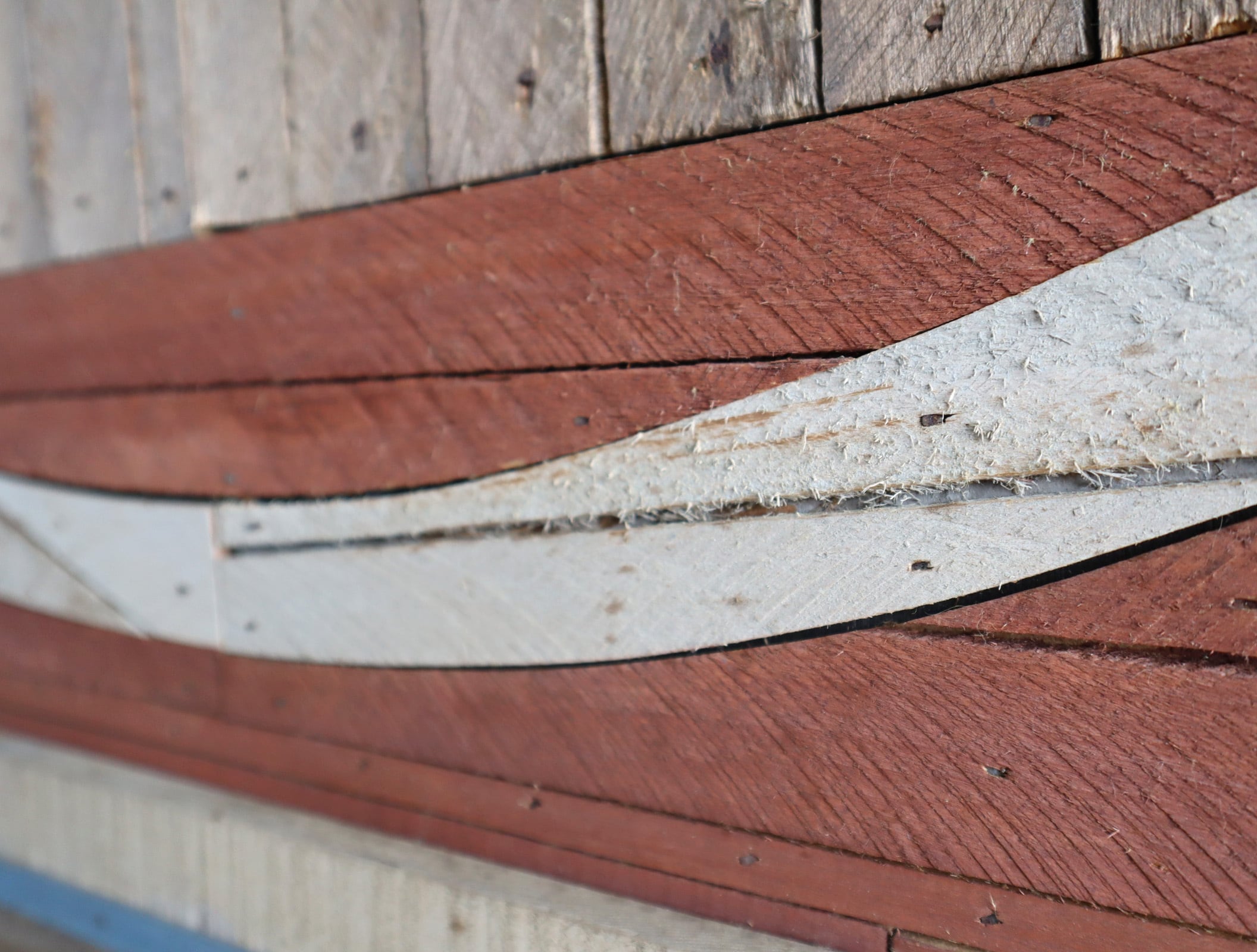 素朴な木の質感と、温もりある手仕事の表情が印象的なウォールアート。