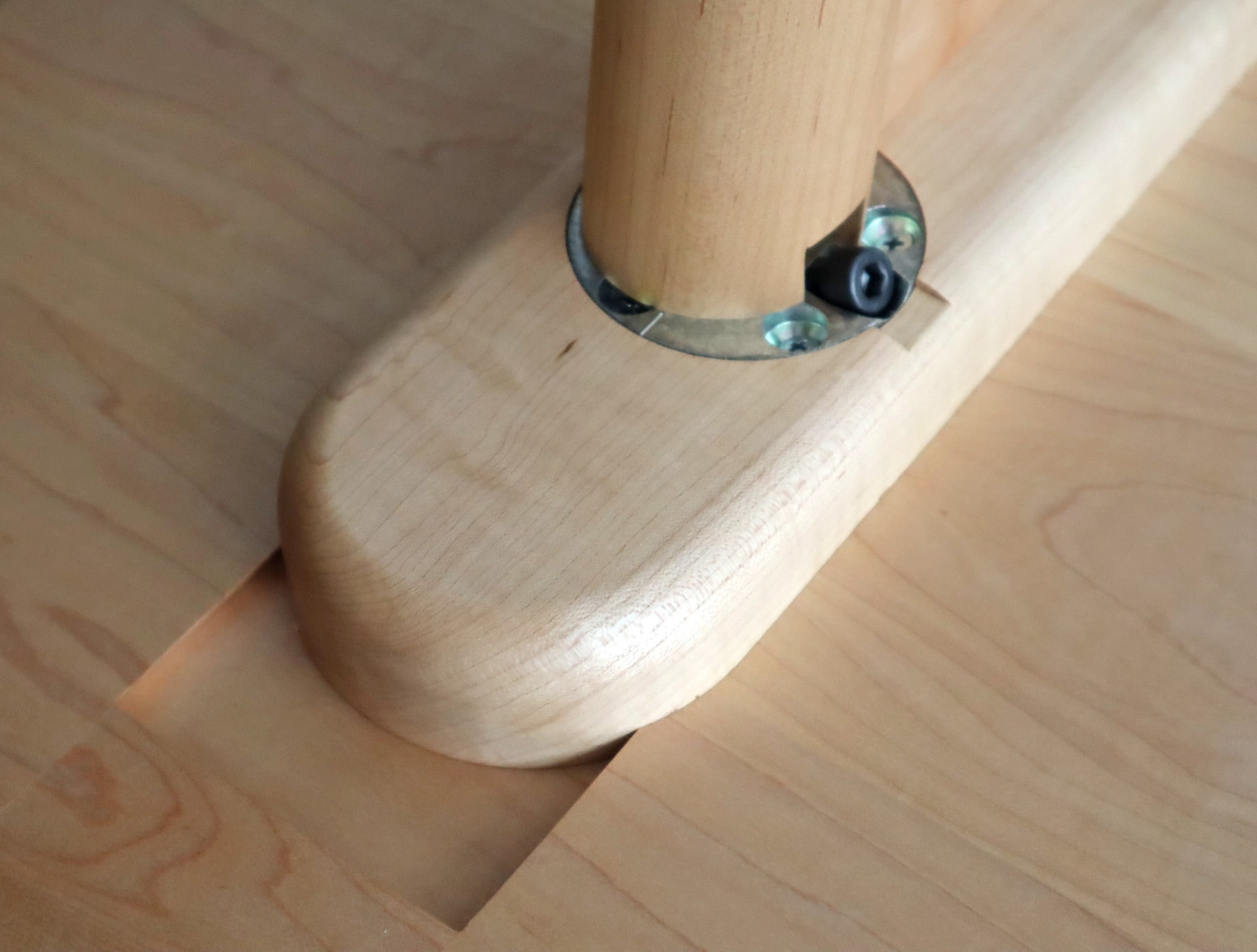 脚部取付パーツは「吸い付き蟻桟」と呼ばれる古来からの木工技術により取り付けられ、天板の反りを防止しつつ美しい意匠となっており、また、丸みをもたせた天板の角や、安定感のある脚の設計など、日々の暮らしに寄り添うやさしさが感じられます。