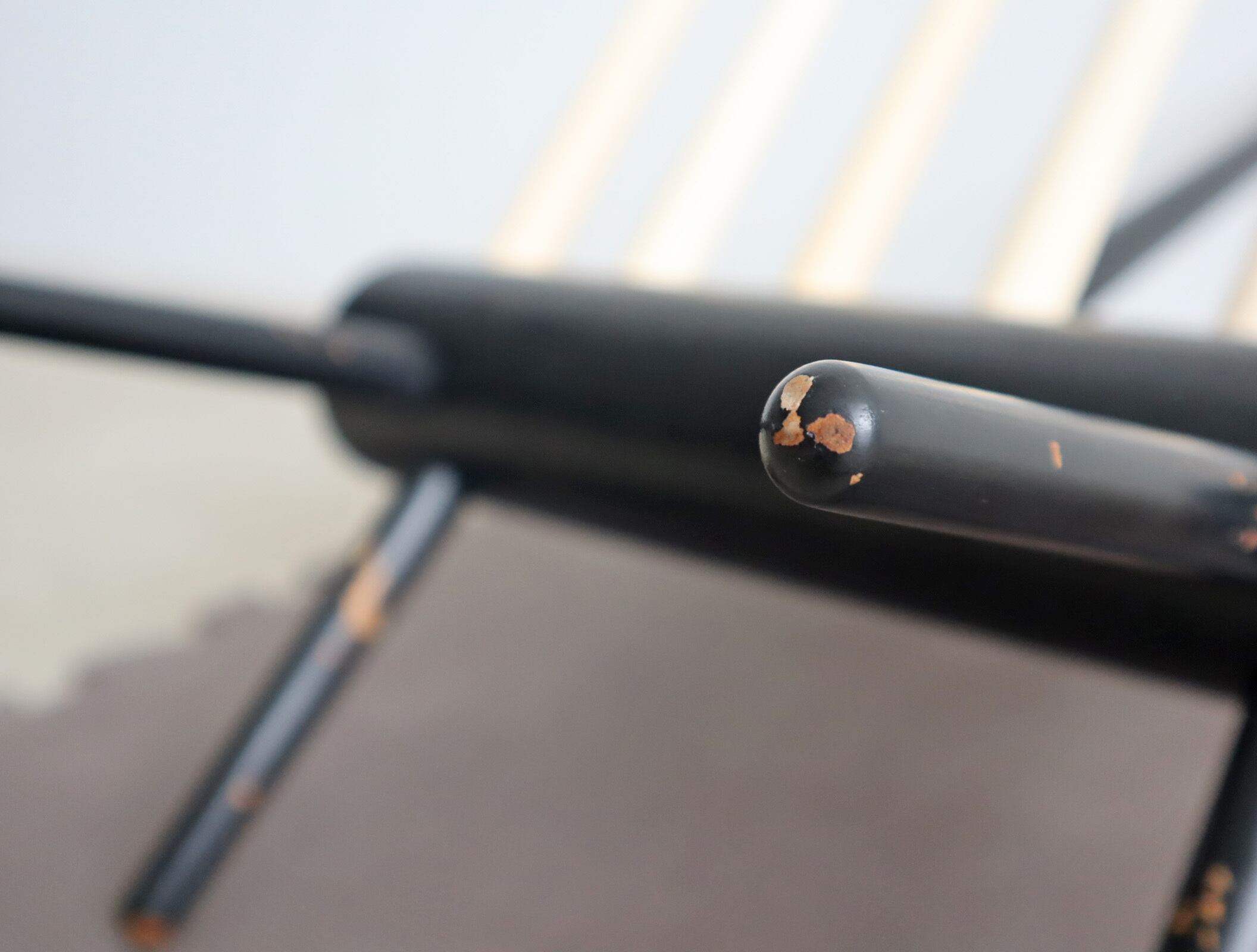 ホワイトと木目がシースルーになったブラックペイントのコントラストがモダンで、北欧家具やヴィンテージ家具との相性も抜群です。