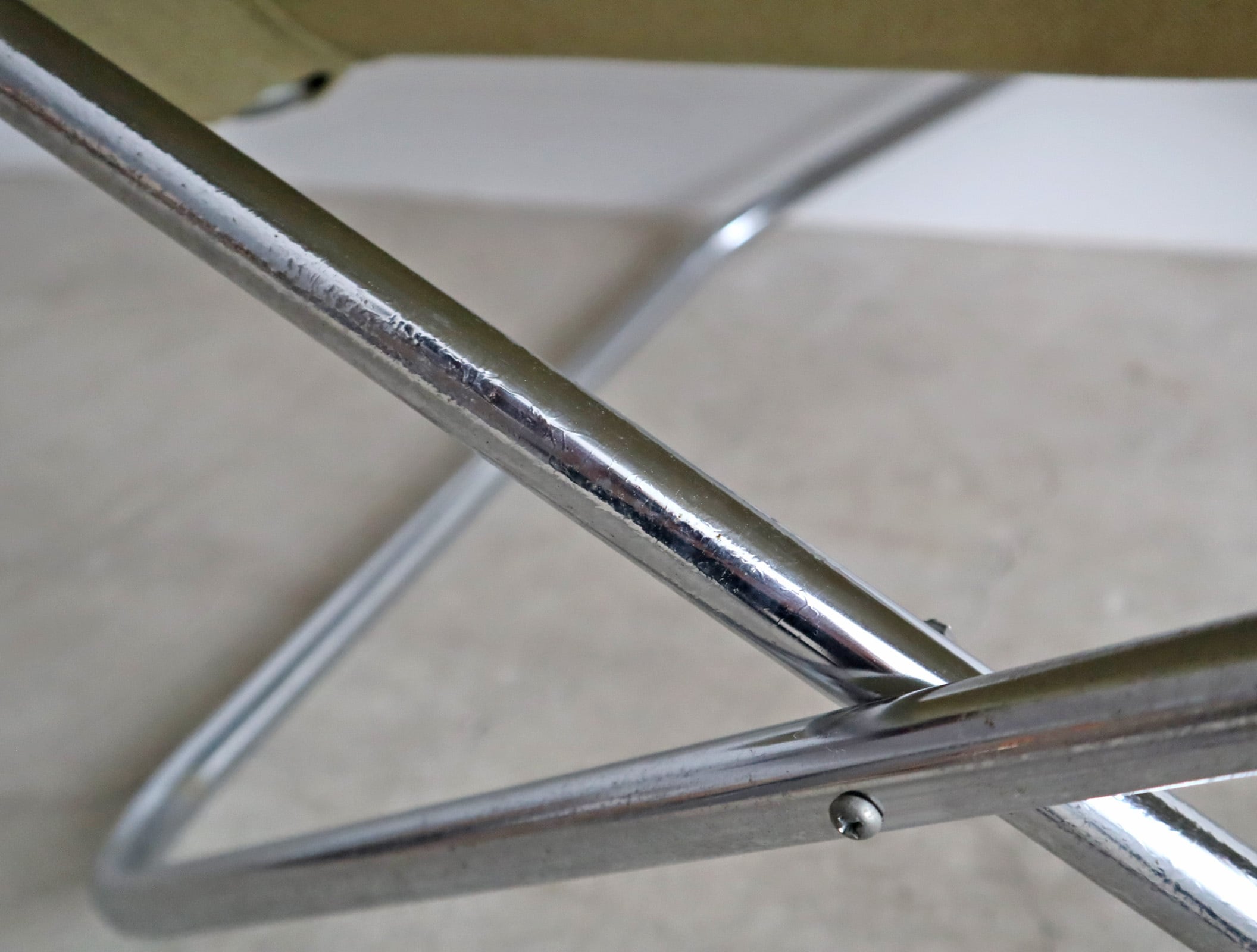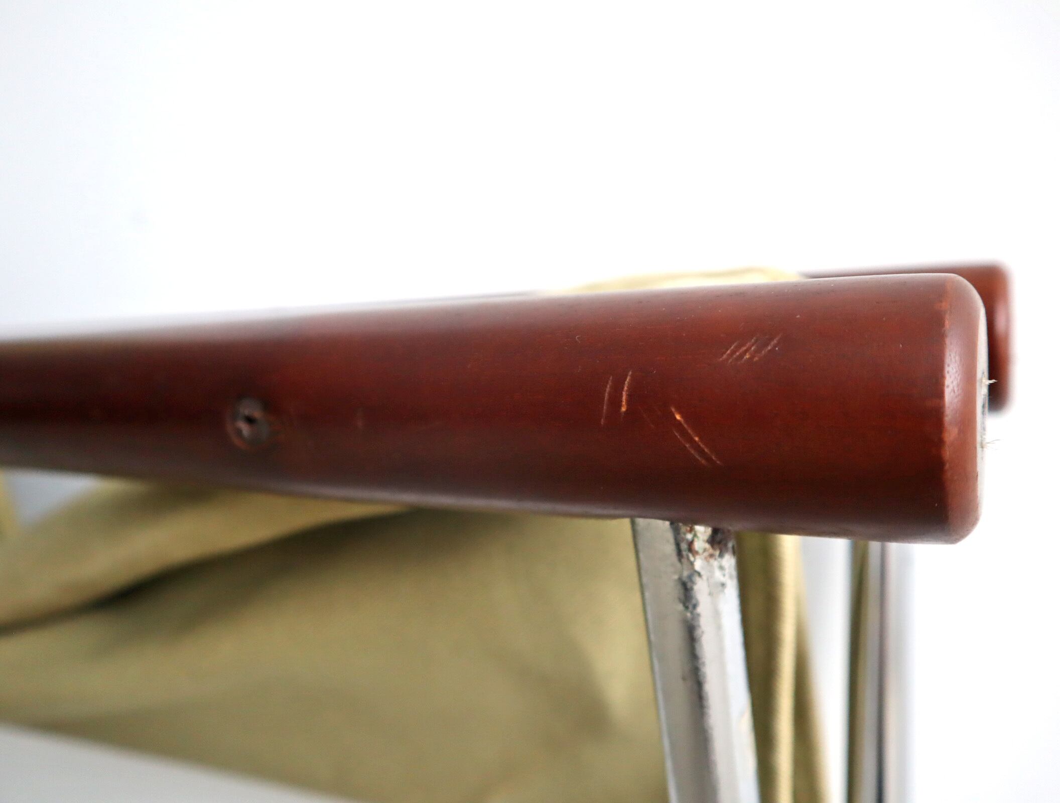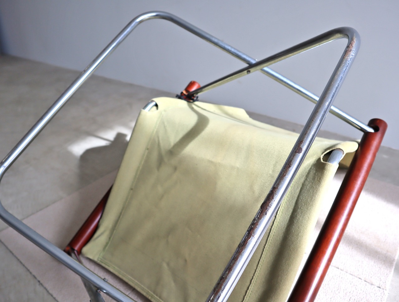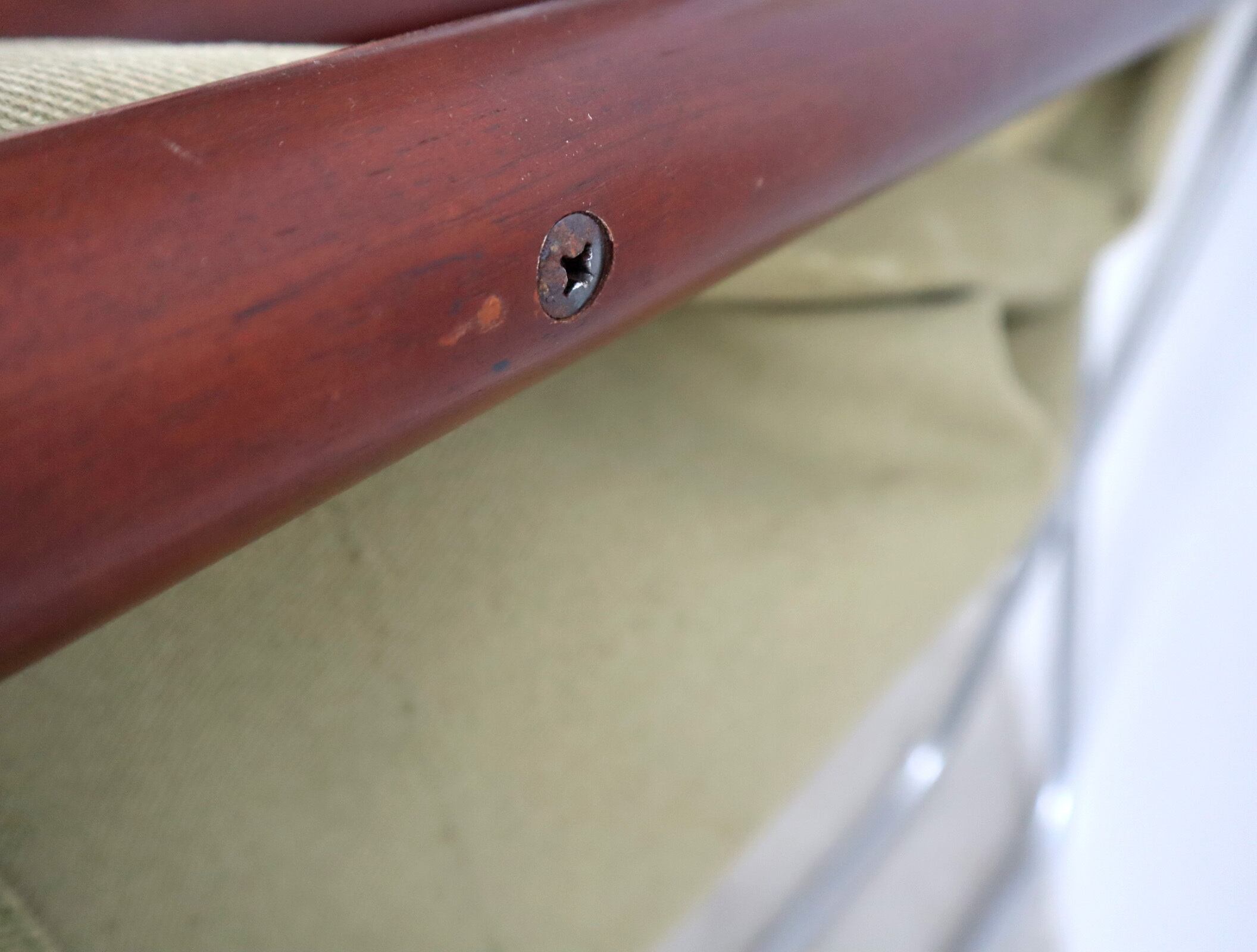 木部に引っ掻き傷、打痕、黒ずみ、フレームに腐食、キャンバス地に退色、スレ、シミ等、遠慮なく使われてきた使用感がございますので画像でご確認ください。