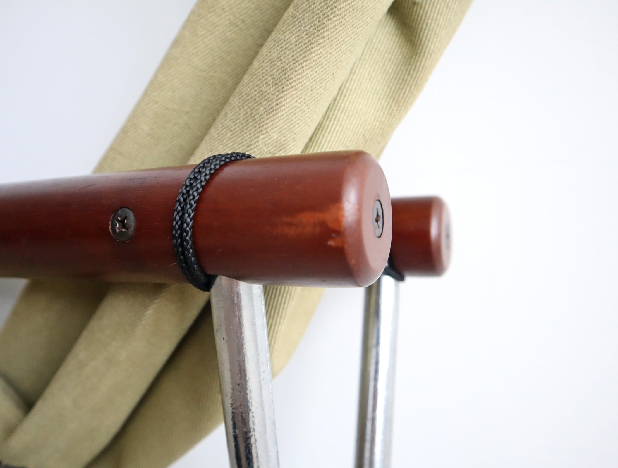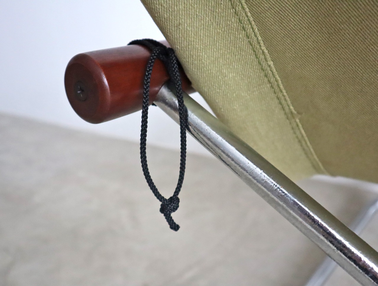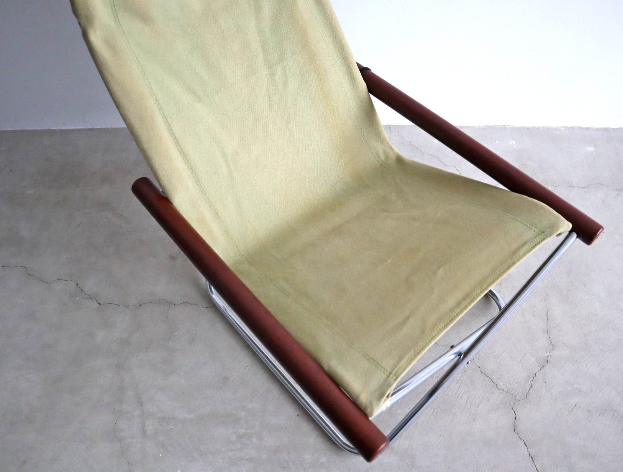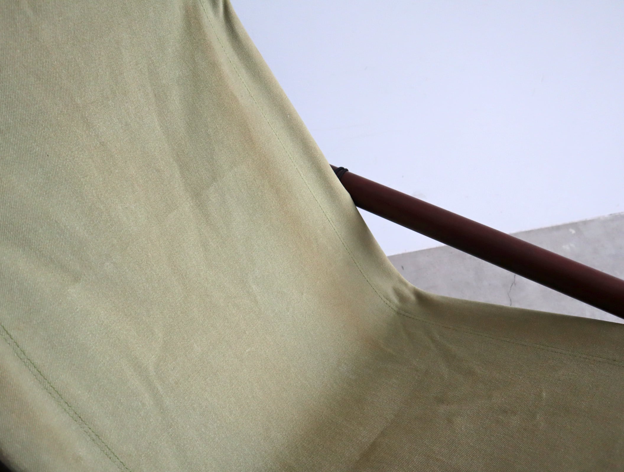 キャンバス地の広い背面と座面でゆったりと落ち着いたリラクゼージョンをお愉しみいただける、オールマイティに使える、汎用性の高い一脚です。
