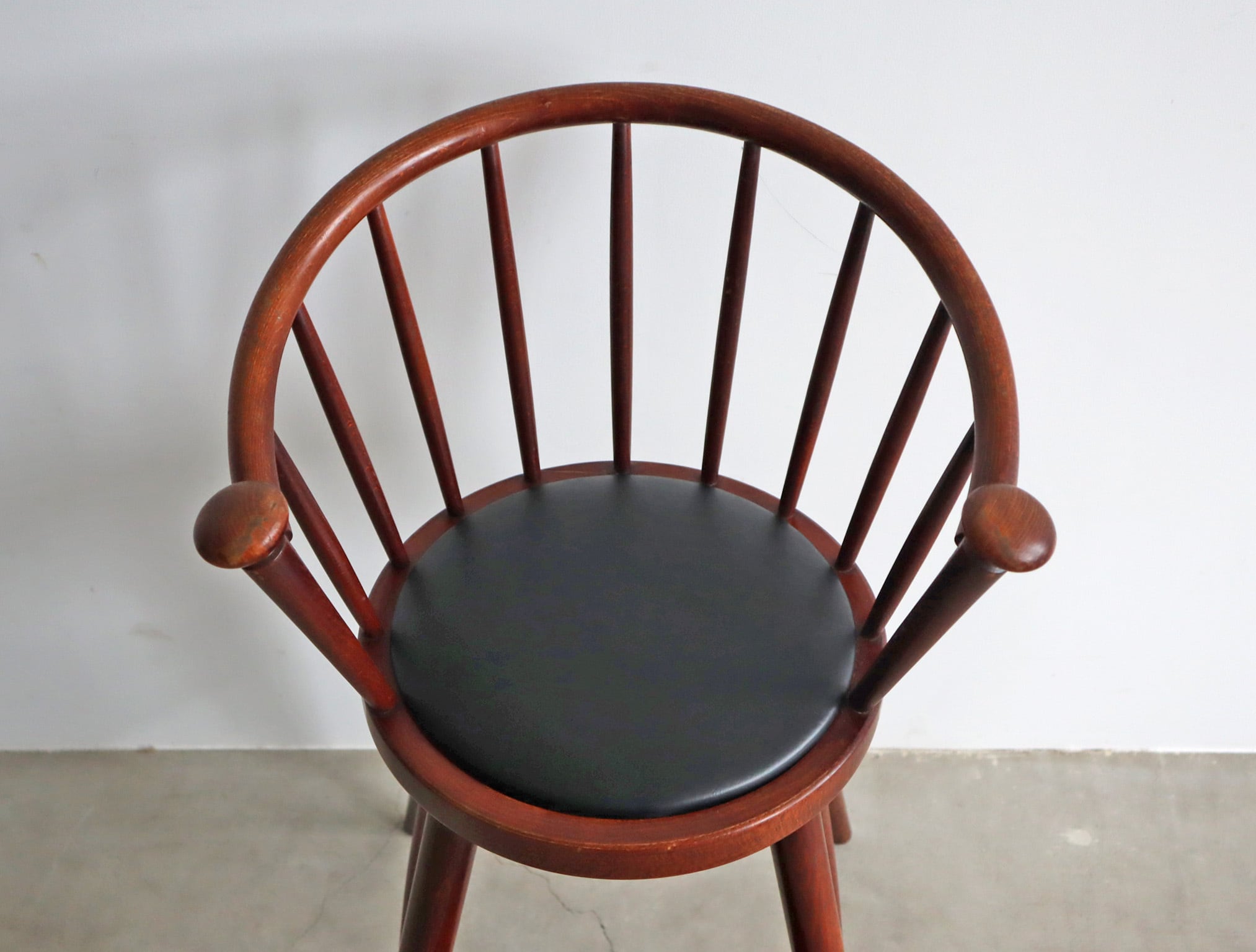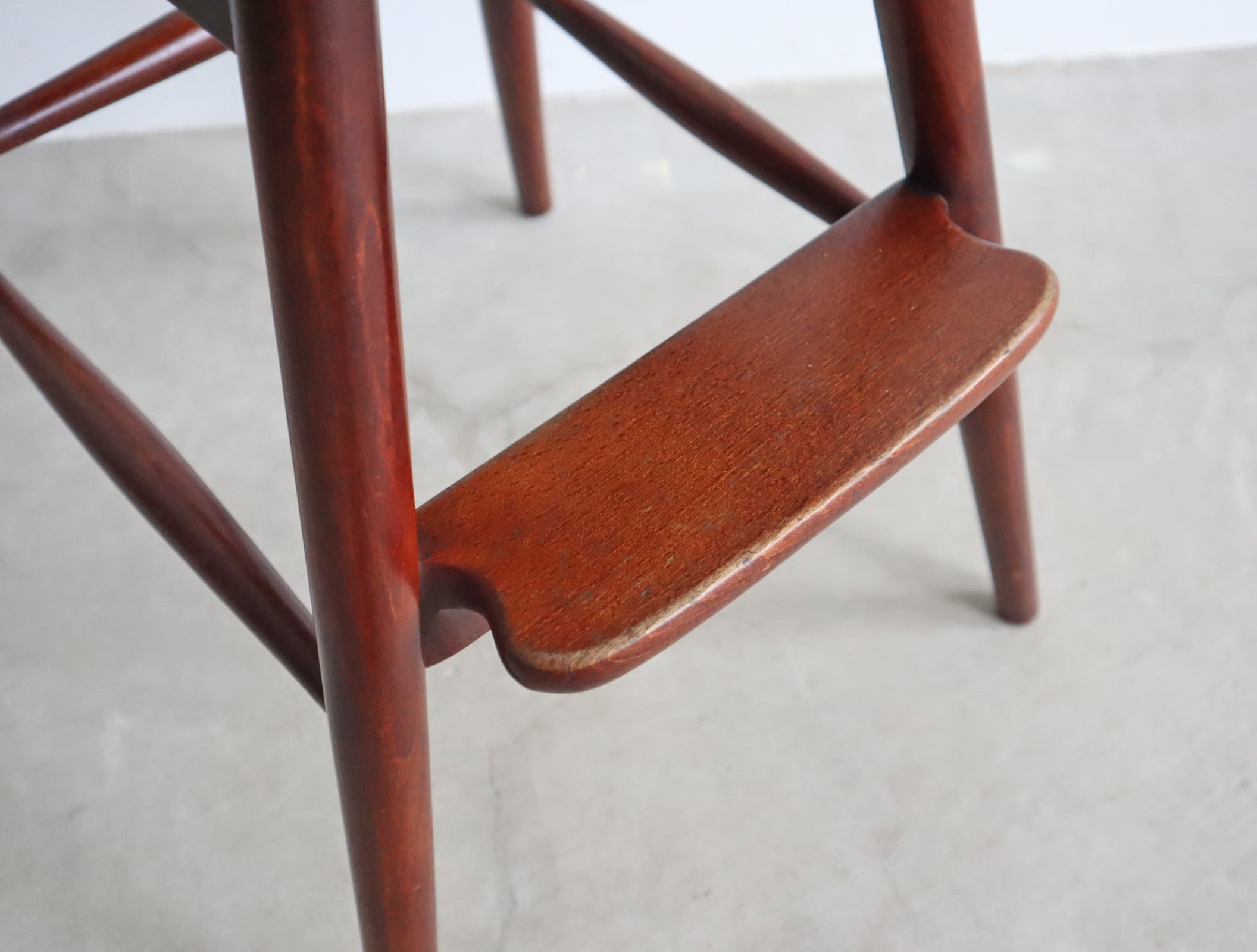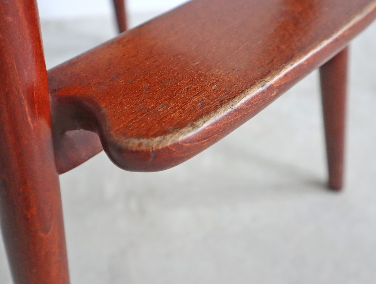 キッズチェアながら曲木と挽き物の高い技術で構築された繊細で柔らかい印象のシルエットで、使い込まれた経年変化に愛おしさを感じるチェアです。