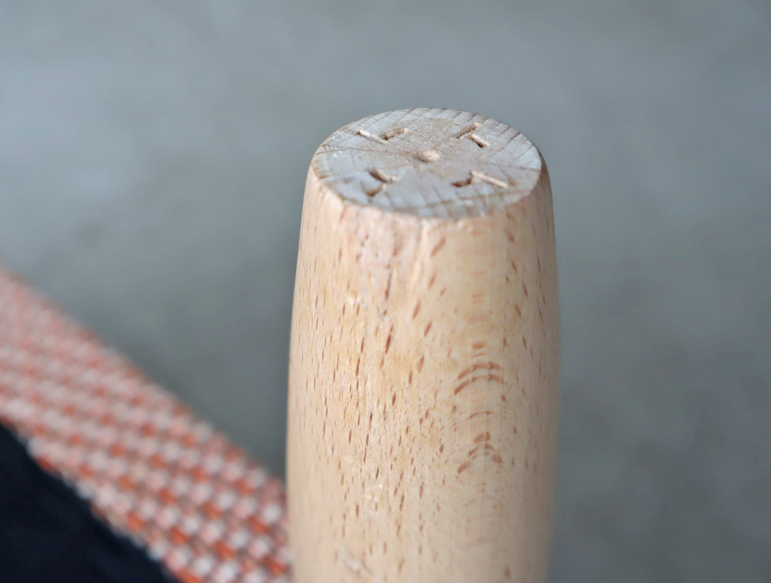脚部打ち傷他、向かって右側のアーム手前外側角部分にほつれ補修痕がございますので画像でご確認ください。