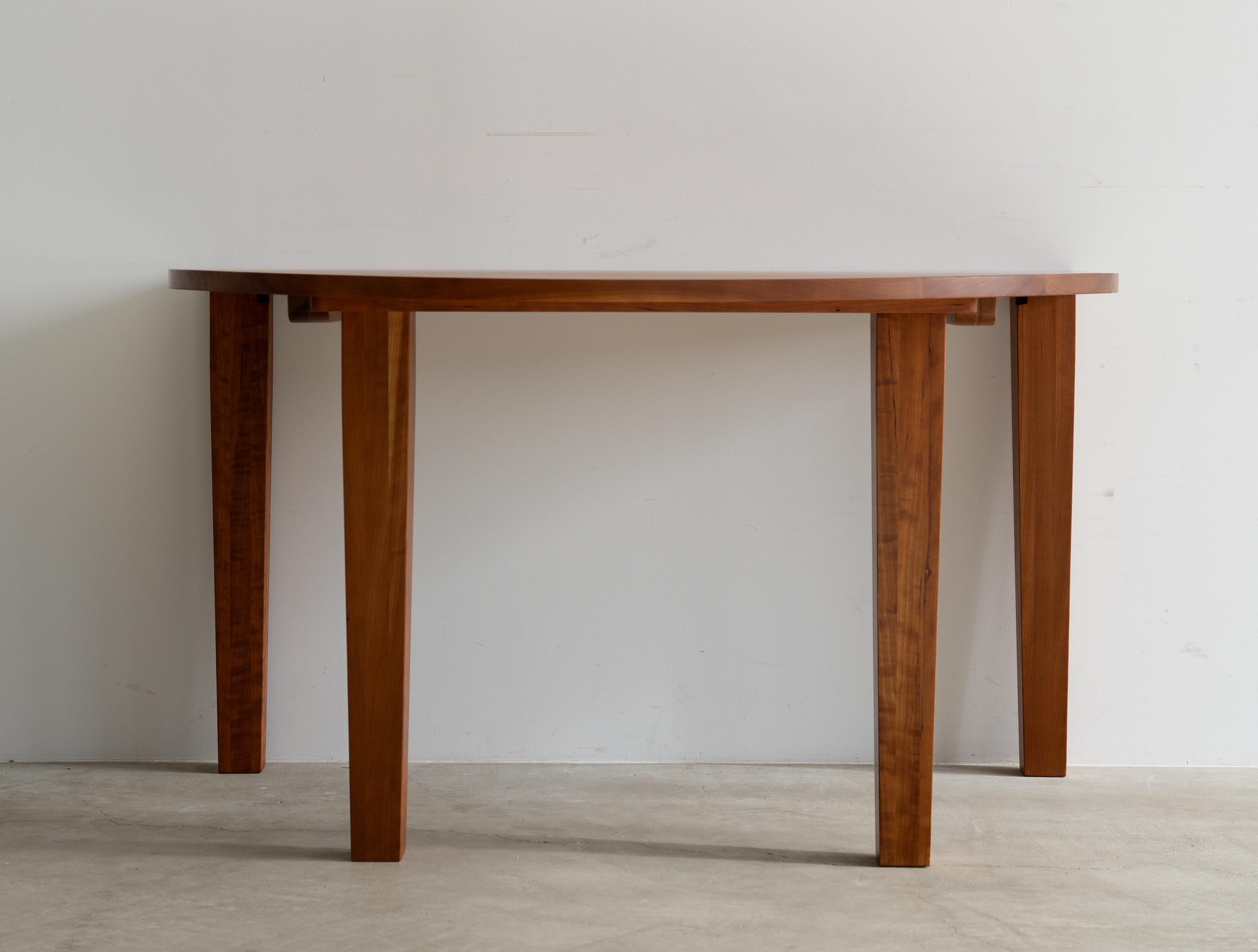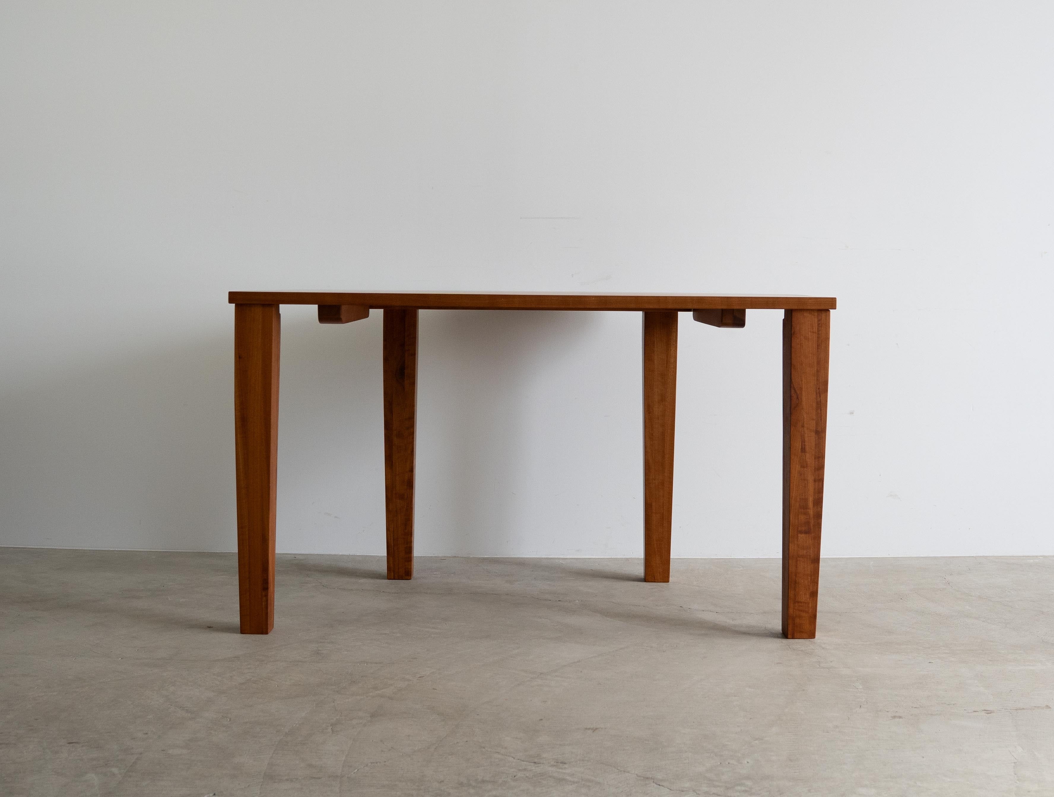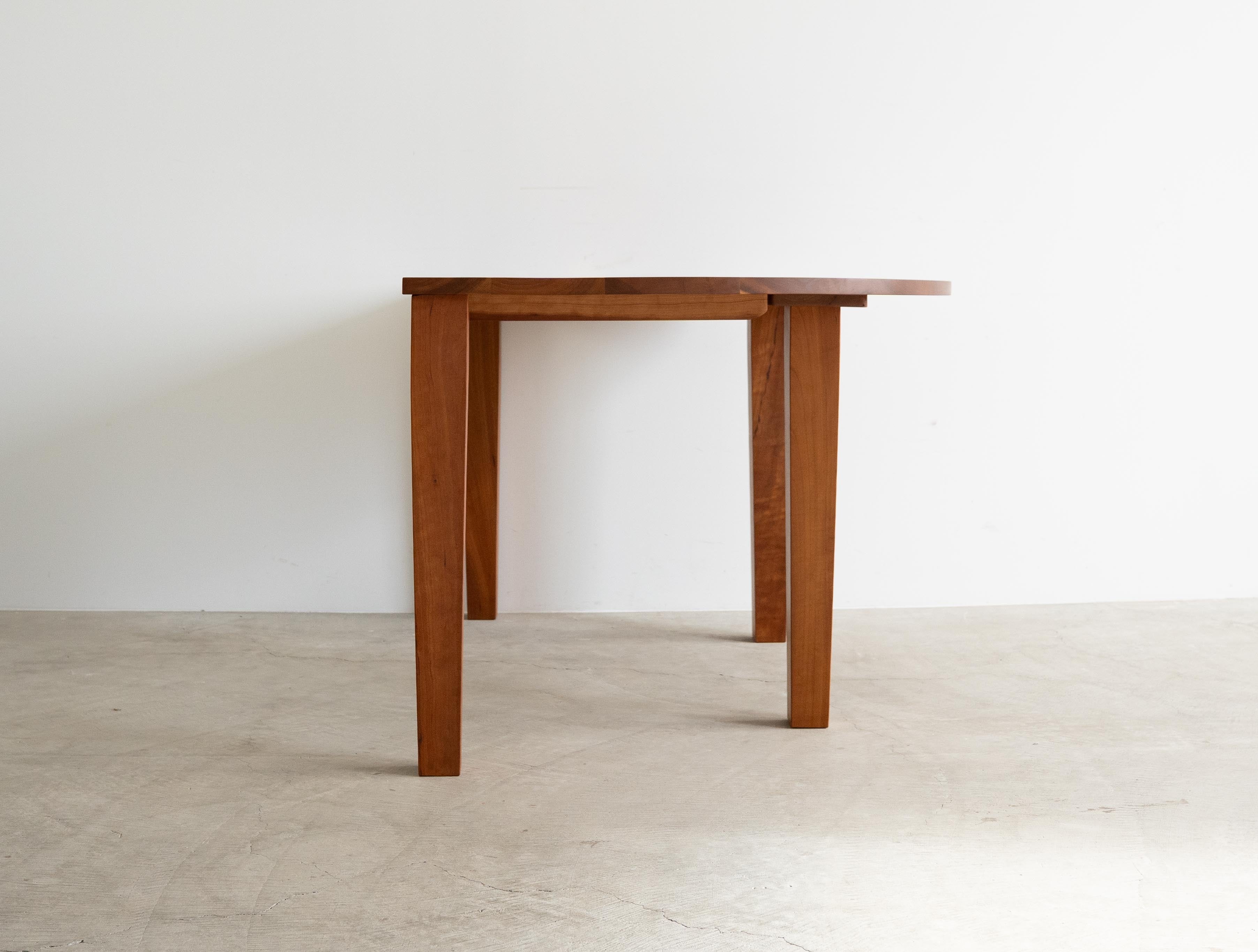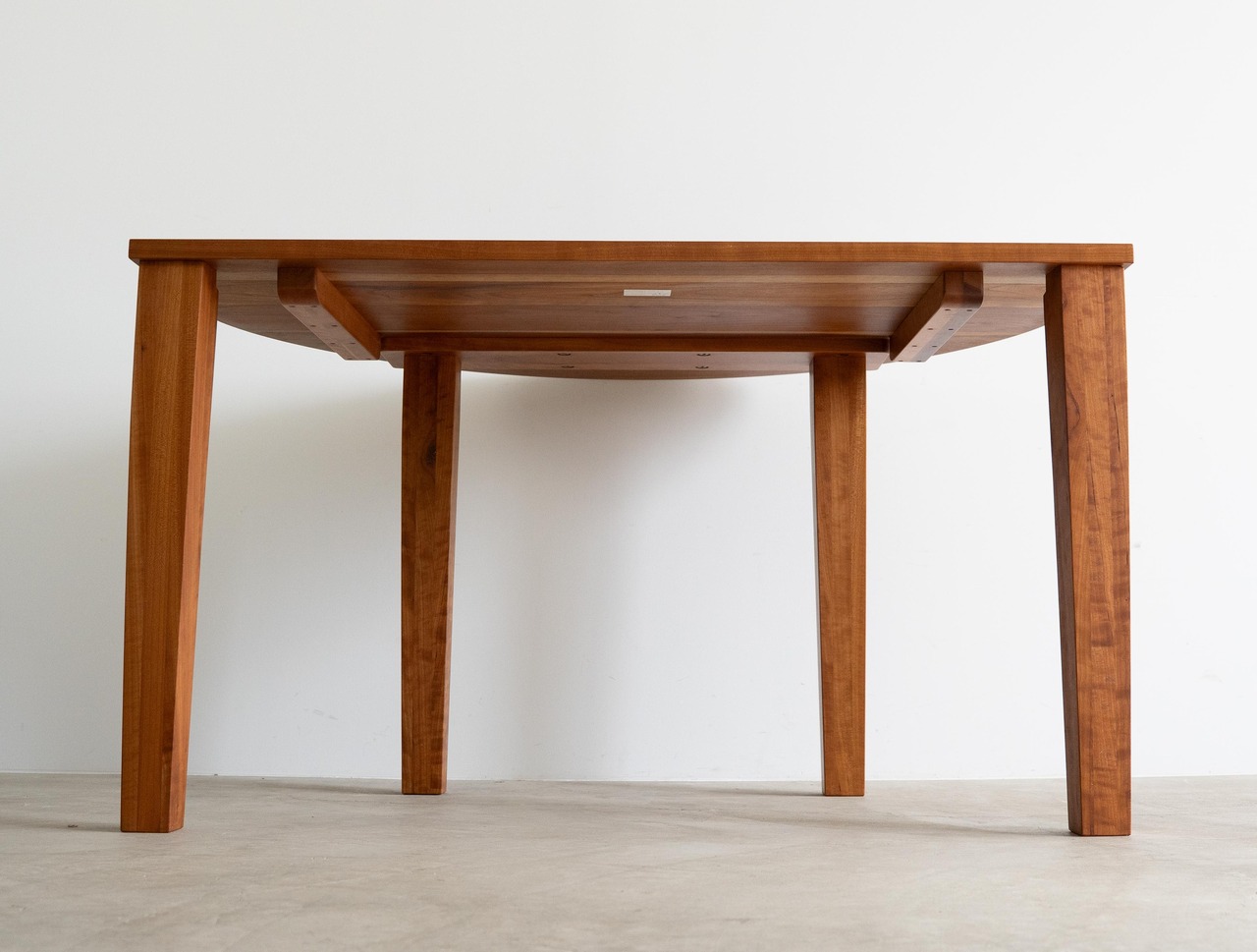 無垢材の重厚感がありながらも、すっきりとした脚部デザインが軽やかな印象を与え、ひとつとして同じ表情のない木目と色合いは、自然素材ならではの美しさ。