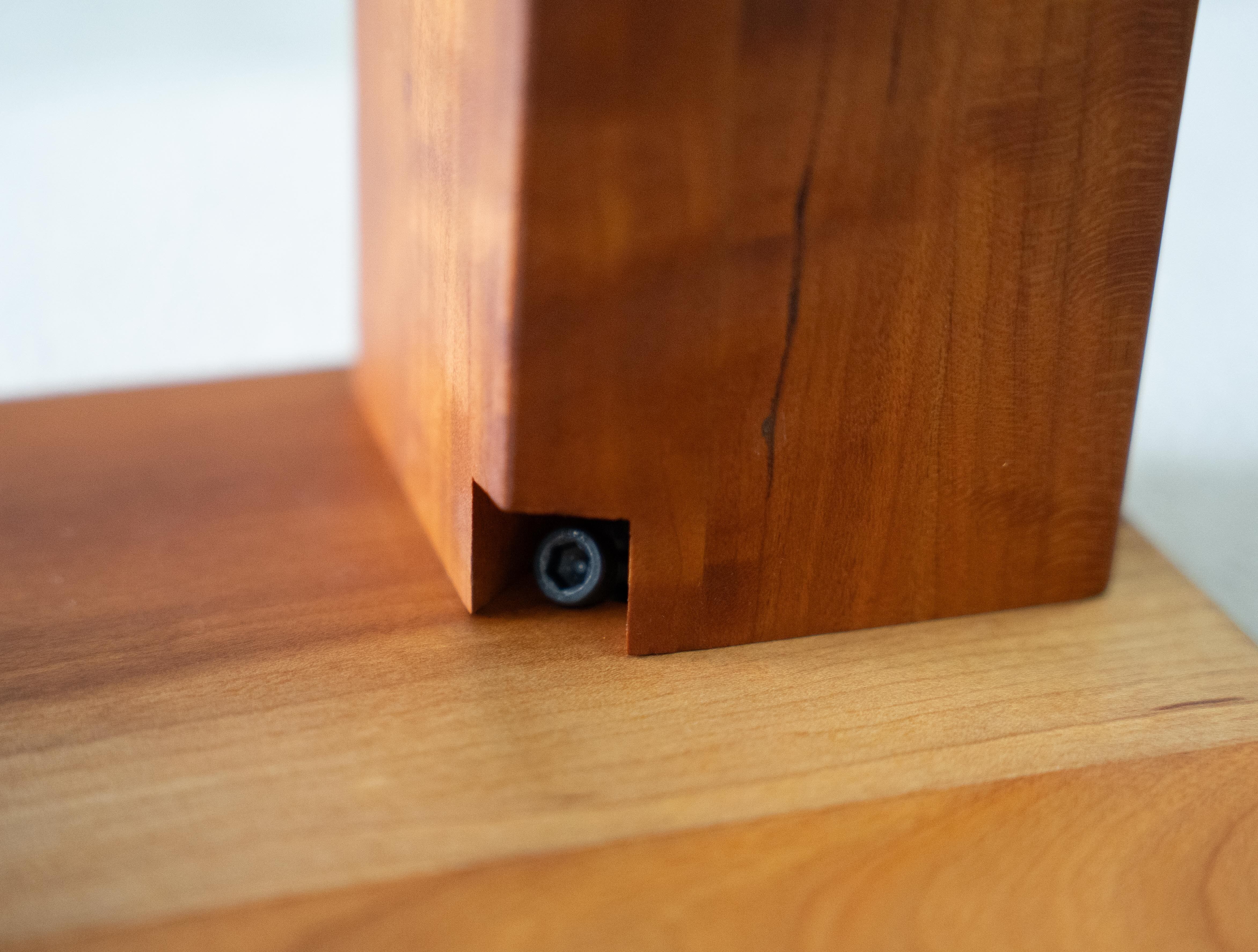 やわらかな曲線と、チェリー無垢材ならではの艶やかな木肌。時間とともに深みを増す赤みが、空間にあたたかさを添えます。