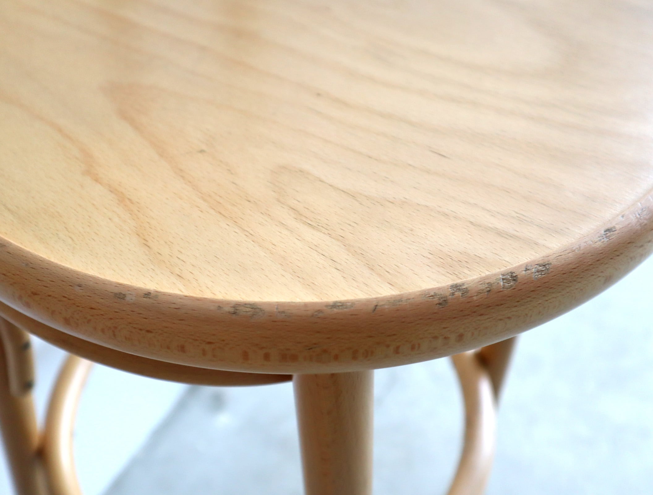4本脚を留める円形パーツ、脚を置く部分に若干の変色が見られるほか、座面の縁に傷が多くありますので画像でご確認ください。
